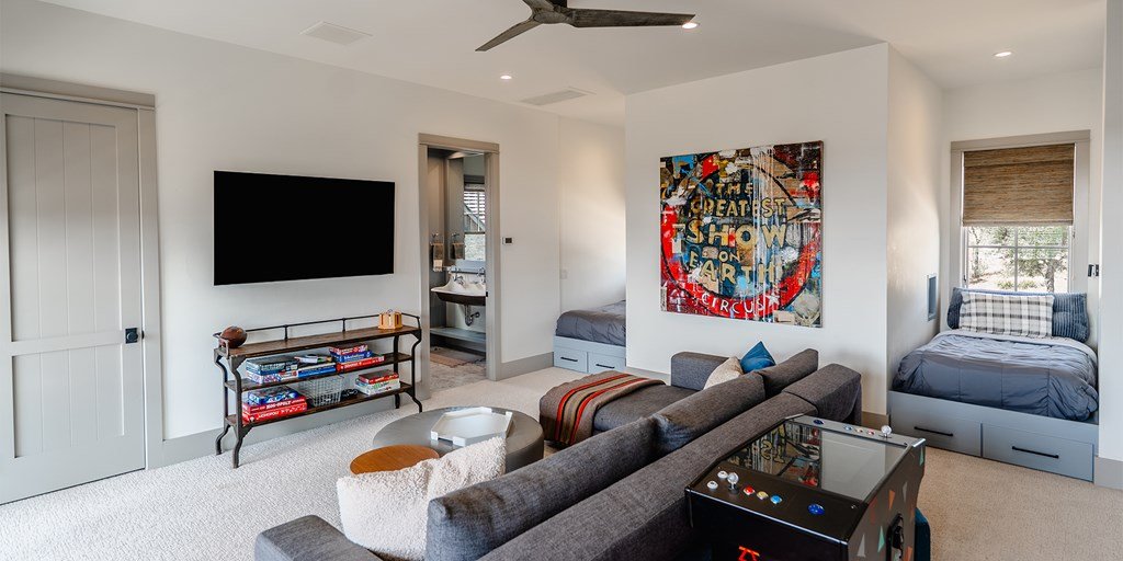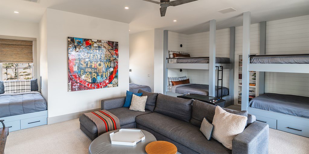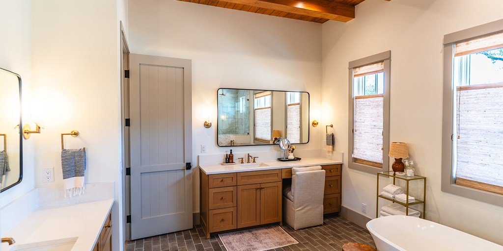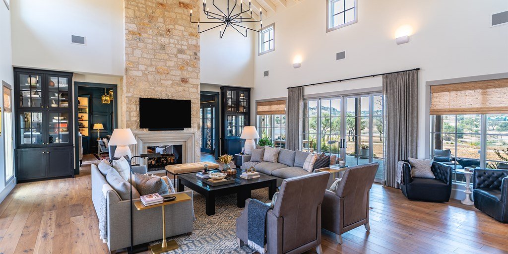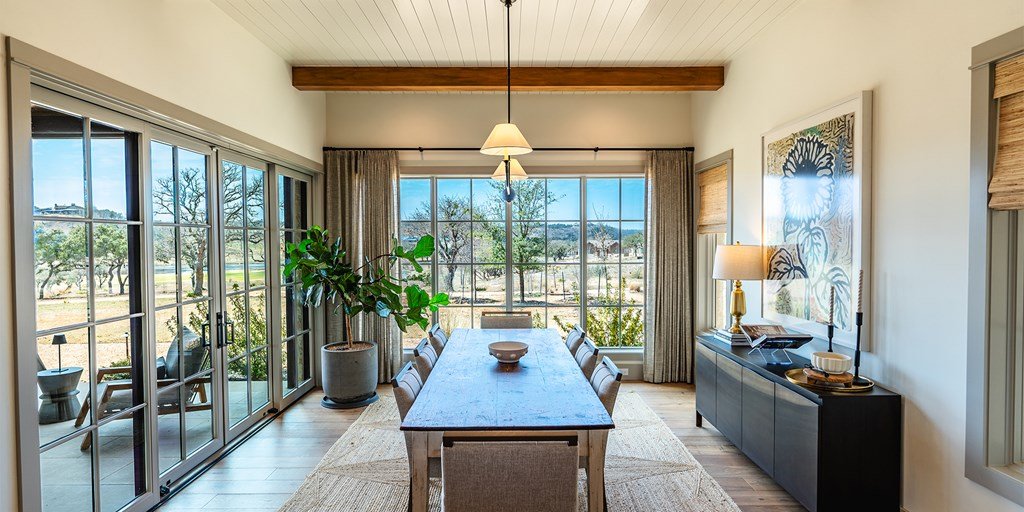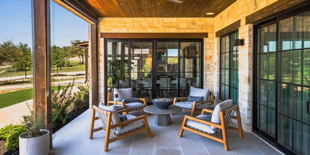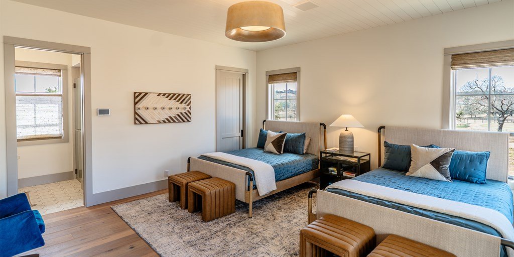 This large family compound sits on the Longhorn Trail system. From this amazing location, the Clubhouse, Pro Shop, Ranch Club, and FIT Club are just a few minutes away via golf cart. The views across Whitetail Lake and hole 12 are spectacular. This is truly an entertainer's dream to comfortably accommodate a solo couple or a dozen family and friends. On the first floor, the main house has an ample great room, incredible study, dining room, kitchen, laundry, butler's pantry, and the primary suite. The outdoor kitchen space expands right off the living room with a deep-covered porch with a built-in grill. The second floor of the garage, accessed by an outdoor stairway from the courtyard, has a massive bunk room with 6 built-in beds and a bathroom. A wonderful full-length covered porch accentuates the massive gathering space and can accommodate indoor and outdoor fun. The detached garage accommodates three cars and a golf cart. The property boasts two detached guest accommodations. Don't miss your opportunity to become part of Boot Ranch, the finest private club community in Texas.