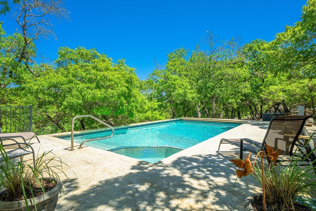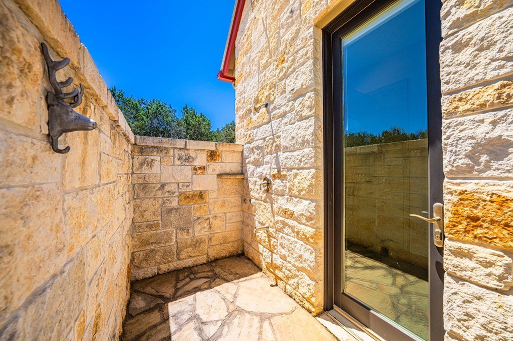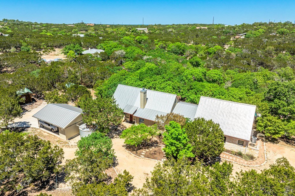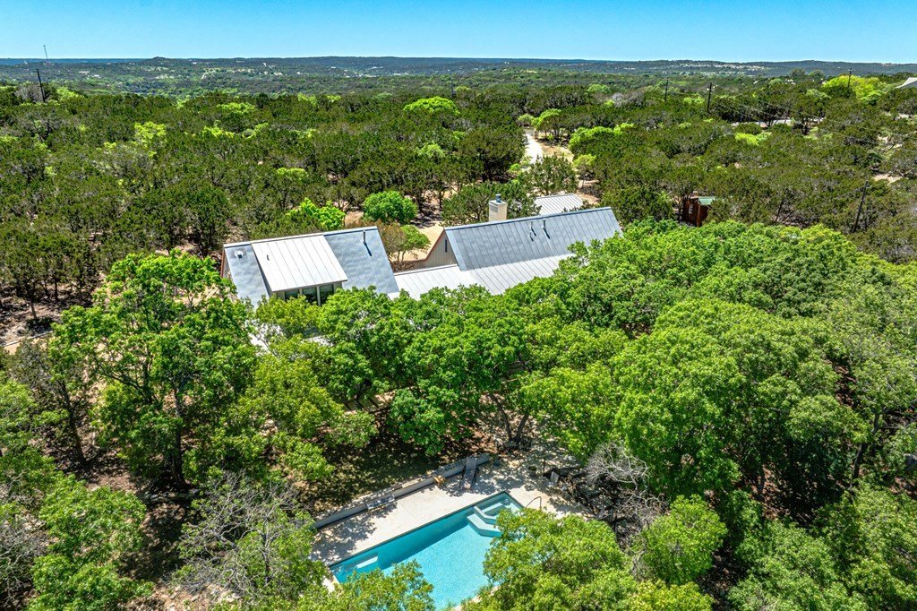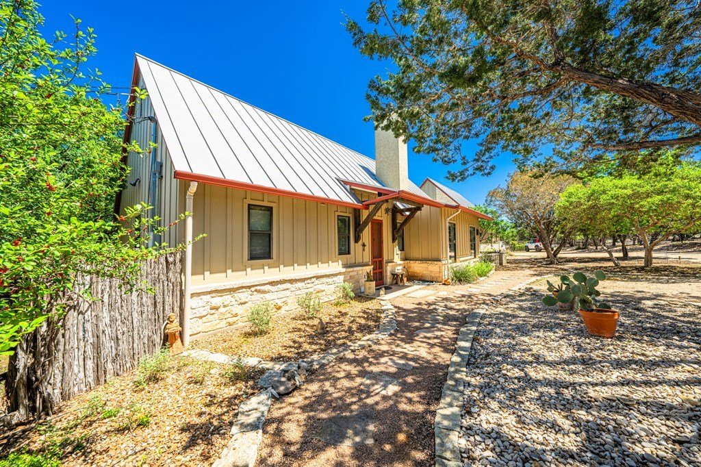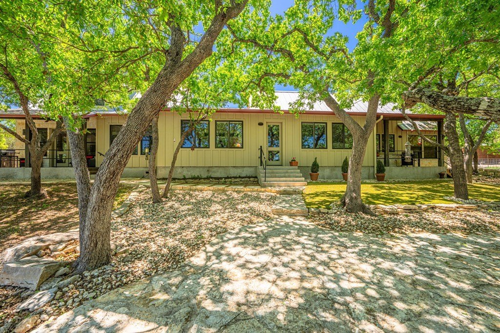 Nestled in the heart of the picturesque Texas Hill Country in Hunt, Texas is this stunning home which offers unparalleled beauty and tranquility. Set on almost 6 acres, this home blends rustic charm with modern elegance. Featuring an open-concept design, the interior boasts high ceilings, large windows that flood the space with natural light, and top-of-the-line finishes throughout. The gourmet kitchen, equipped with state-of-the-art appliances and granite countertops, opens seamlessly to the spacious living and dining areas, perfect for entertaining. The primary suite boasts double closets, expansive vanities and a zero lip shower. There is also an outdoor shower. One guest room & bath as well as another bedroom/office are also on the main level and one bedroom and bath upstairs. Outside, enjoy serene evenings on the patio with a fireplace, cooking porch and a beautiful pool, ideal for taking in the breathtaking sunsets. HOA River Park on the Guadalupe River for swimming, fishing or kayaking plus 90+ acre wilderness park with trails for hiking or biking.