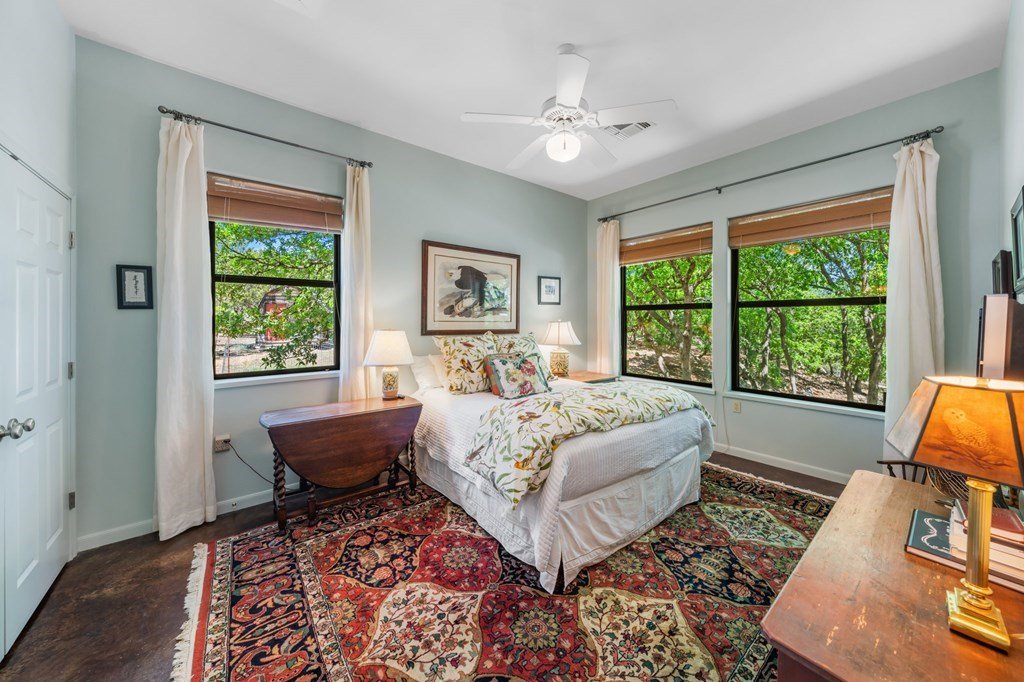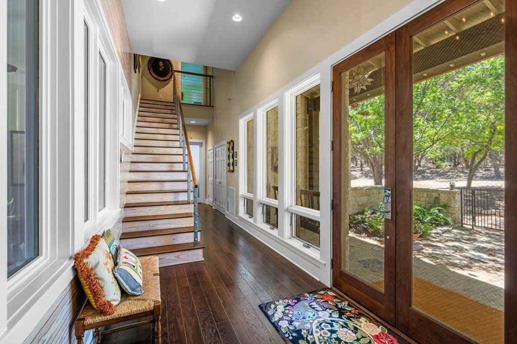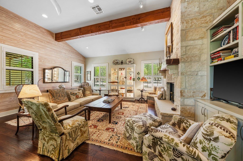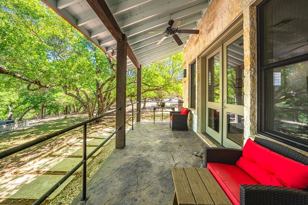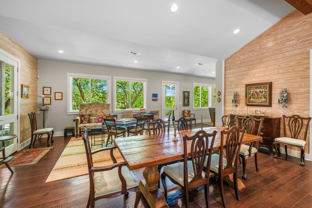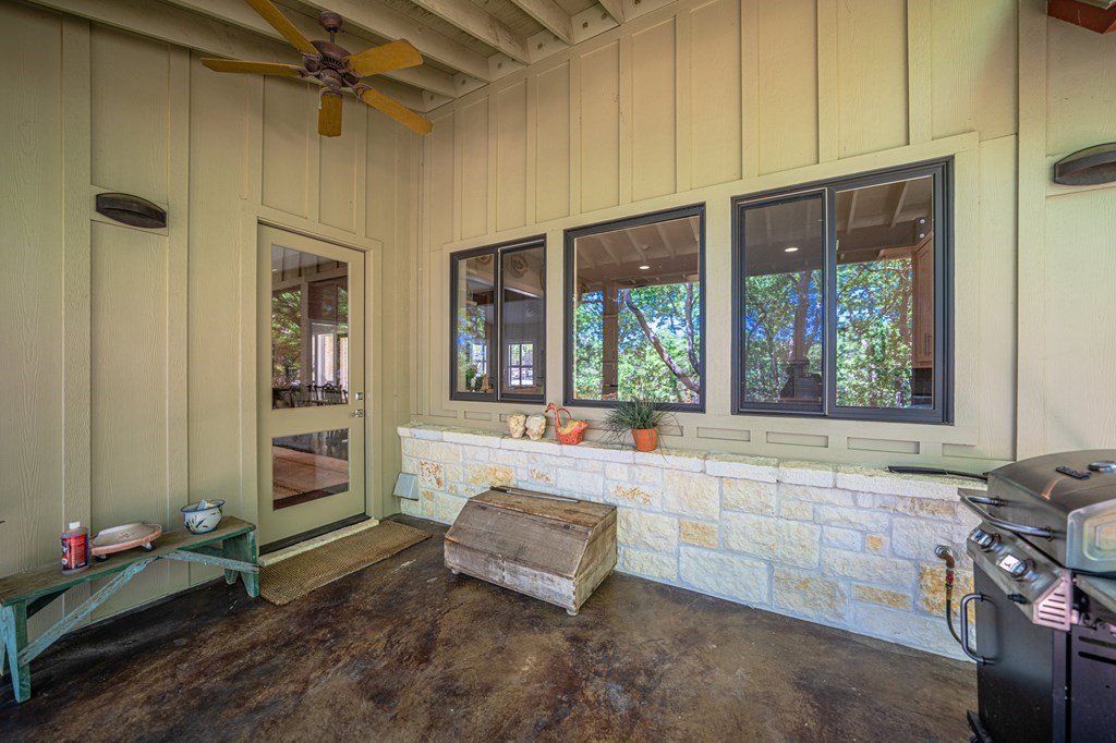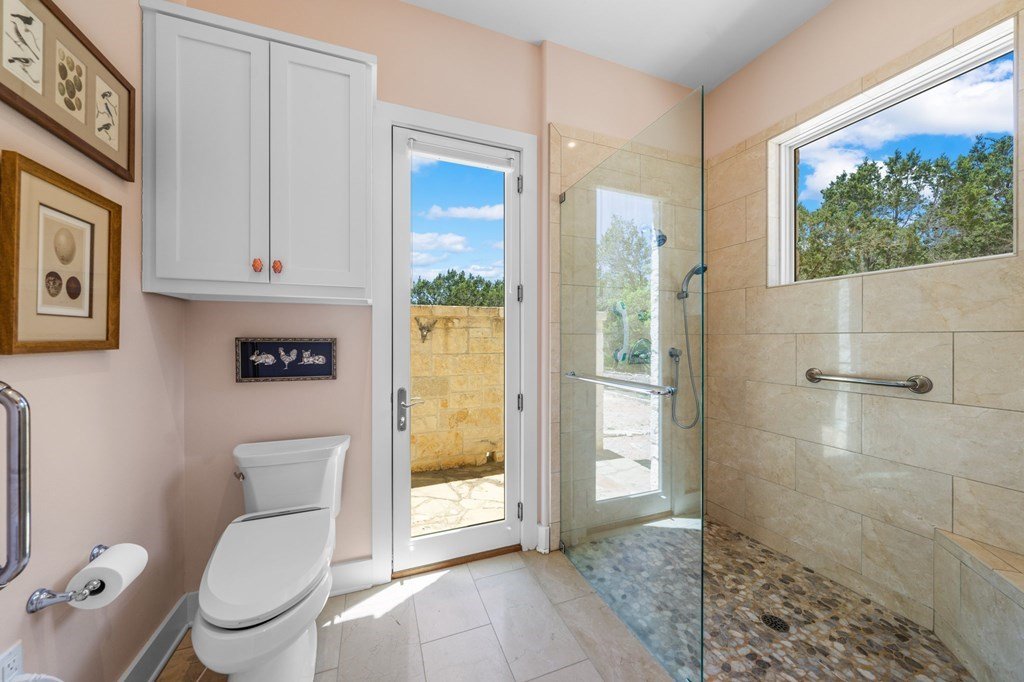 Nestled in the heart of the picturesque Texas Hill Country in Hunt, Texas is this stunning home which offers unparalleled beauty and tranquility. Set on almost 6 acres, this home blends rustic charm with modern elegance. Featuring an open-concept design, the interior boasts high ceilings, large windows that flood the space with natural light, and top-of-the-line finishes throughout. The gourmet kitchen, equipped with state-of-the-art appliances and granite countertops, opens seamlessly to the spacious living and dining areas, perfect for entertaining. The primary suite boasts double closets, expansive vanities and a zero lip shower. There is also an outdoor shower. One guest room & bath as well as another bedroom/office are also on the main level and one bedroom and bath upstairs. Outside, enjoy serene evenings on the patio with a fireplace, cooking porch and a beautiful pool, ideal for taking in the breathtaking sunsets. HOA River Park on the Guadalupe River for swimming, fishing or kayaking plus 90+ acre wilderness park with trails for hiking or biking.