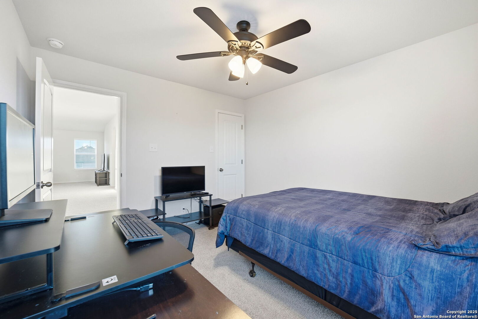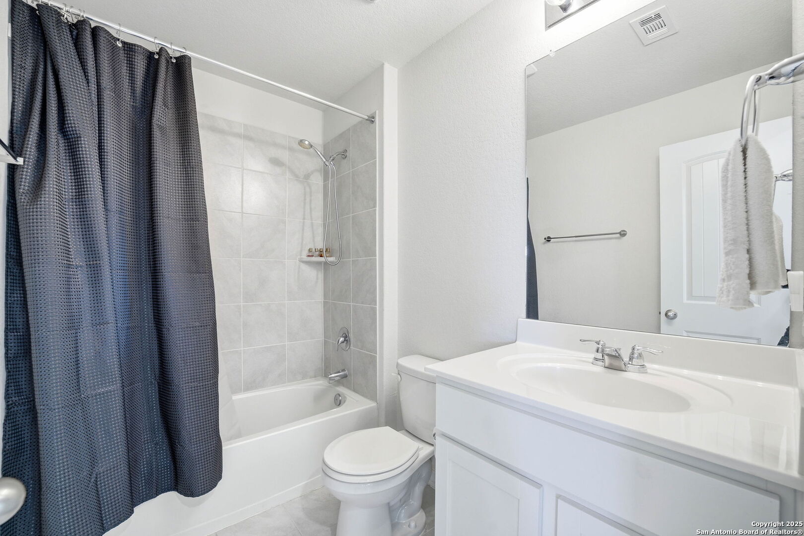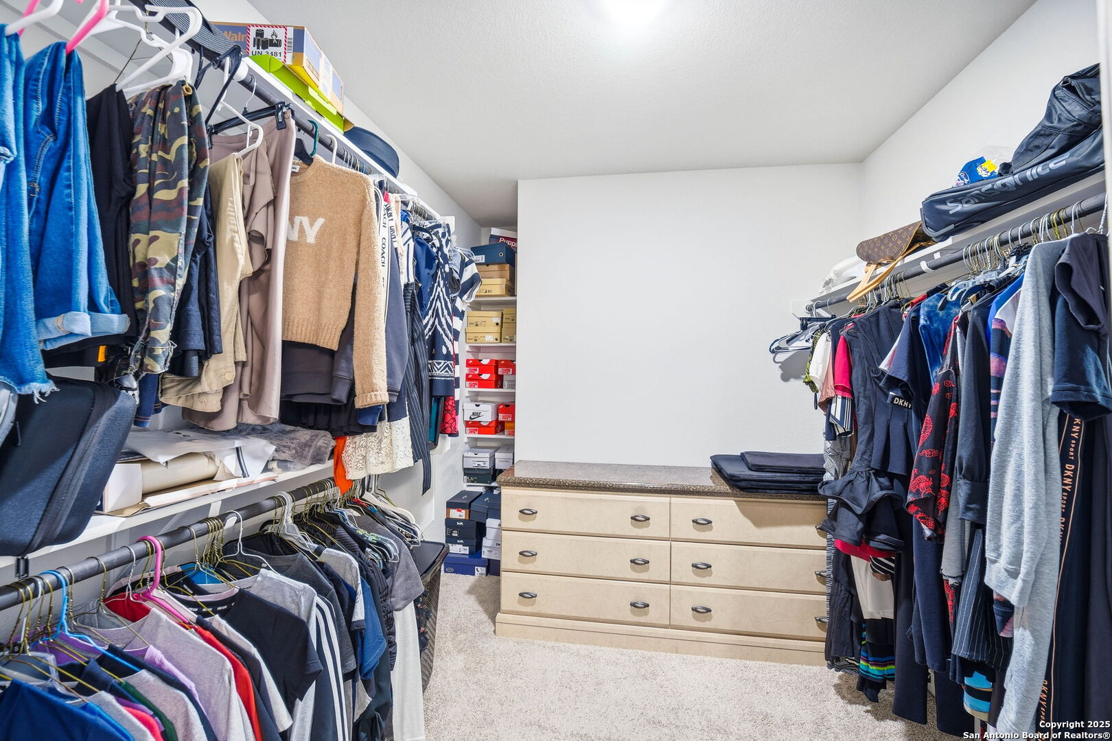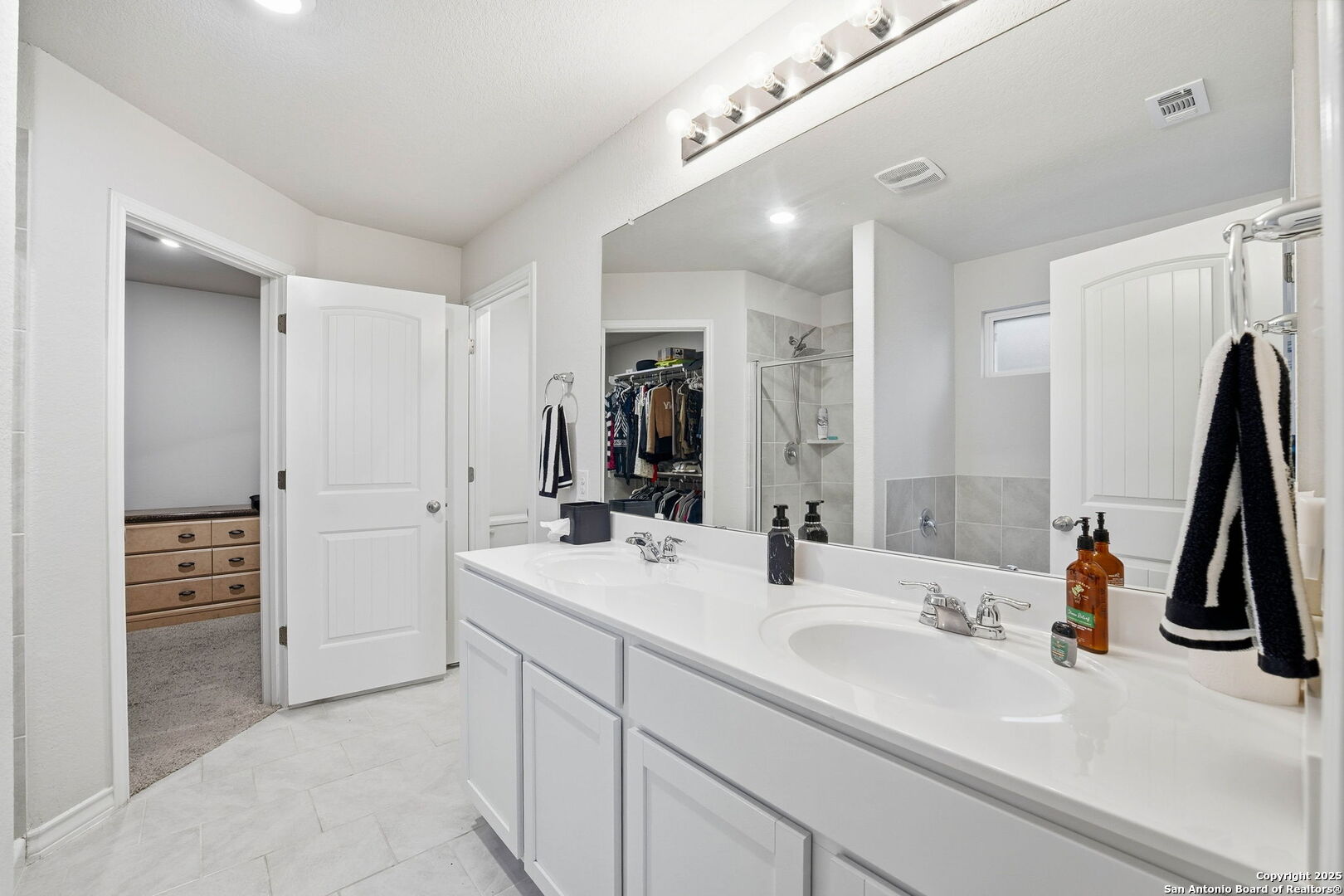 Welcome to this beautifully maintained 5-bedroom, 3.5-bath, 2,667 sq ft brick home located in the highly desirable Langdon community within an award-winning ISD. Designed for comfort and functionality, the open-concept layout offers a warm, inviting feel with excellent natural light and a seamless flow between the living area and kitchen. The kitchen includes a large center island with breakfast bar seating, abundant cabinetry, and generous counter space. The formal dining room provides an ideal setting for family gatherings and holiday meals. The primary suite on the main level offers a private ensuite with double sinks, a soaking tub, and a separate shower. Upstairs are four spacious bedrooms, two full baths, and a versatile loft-perfect for a game room, home office, or media space. Step outside to a fully fenced backyard with a covered patio, ideal for outdoor entertaining or relaxation. Enjoy world-class community amenities at Langdon, including a resort-style pool, fitness center, clubhouse, splash pad, sports courts, dog park, and playground. Conveniently located near Loop 1604, Hwy 281, and Evans Rd, you'll have quick access to some of San Antonio's best dining, shopping, and entertainment. Don't miss your chance to call this incredible home yours-schedule a showing today!