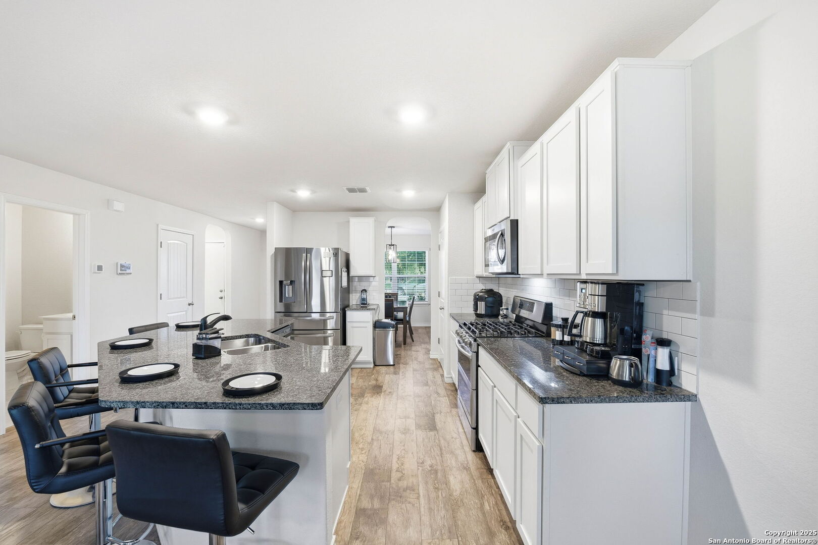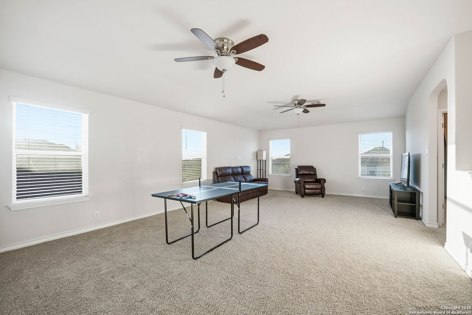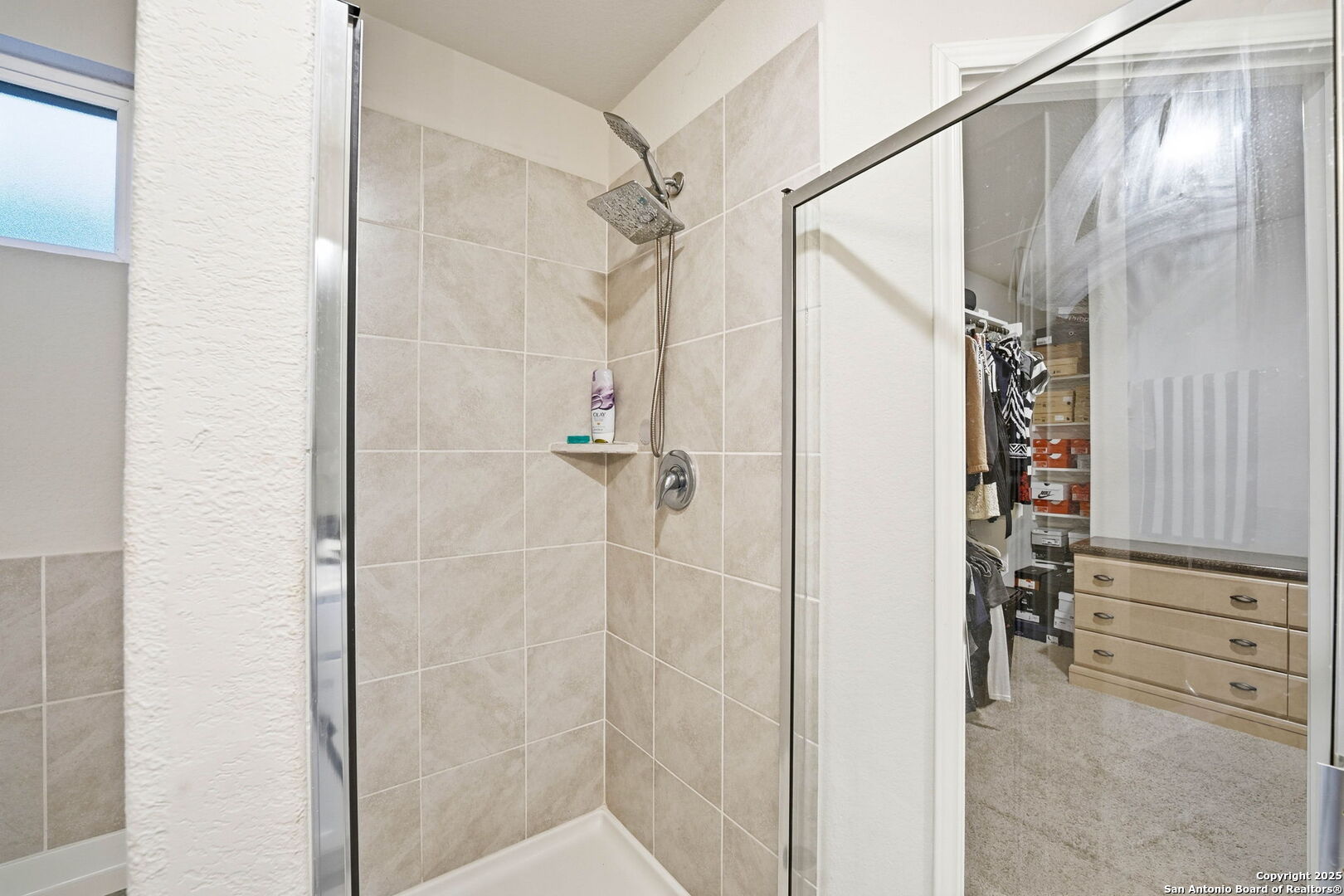 Welcome to this beautifully maintained 5-bedroom, 3.5-bath, 2,667 sq ft brick home located in the highly desirable Langdon community within an award-winning ISD. Designed for comfort and functionality, the open-concept layout offers a warm, inviting feel with excellent natural light and a seamless flow between the living area and kitchen. The kitchen includes a large center island with breakfast bar seating, abundant cabinetry, and generous counter space. The formal dining room provides an ideal setting for family gatherings and holiday meals. The primary suite on the main level offers a private ensuite with double sinks, a soaking tub, and a separate shower. Upstairs are four spacious bedrooms, two full baths, and a versatile loft-perfect for a game room, home office, or media space. Step outside to a fully fenced backyard with a covered patio, ideal for outdoor entertaining or relaxation. Enjoy world-class community amenities at Langdon, including a resort-style pool, fitness center, clubhouse, splash pad, sports courts, dog park, and playground. Conveniently located near Loop 1604, Hwy 281, and Evans Rd, you'll have quick access to some of San Antonio's best dining, shopping, and entertainment. Don't miss your chance to call this incredible home yours-schedule a showing today!