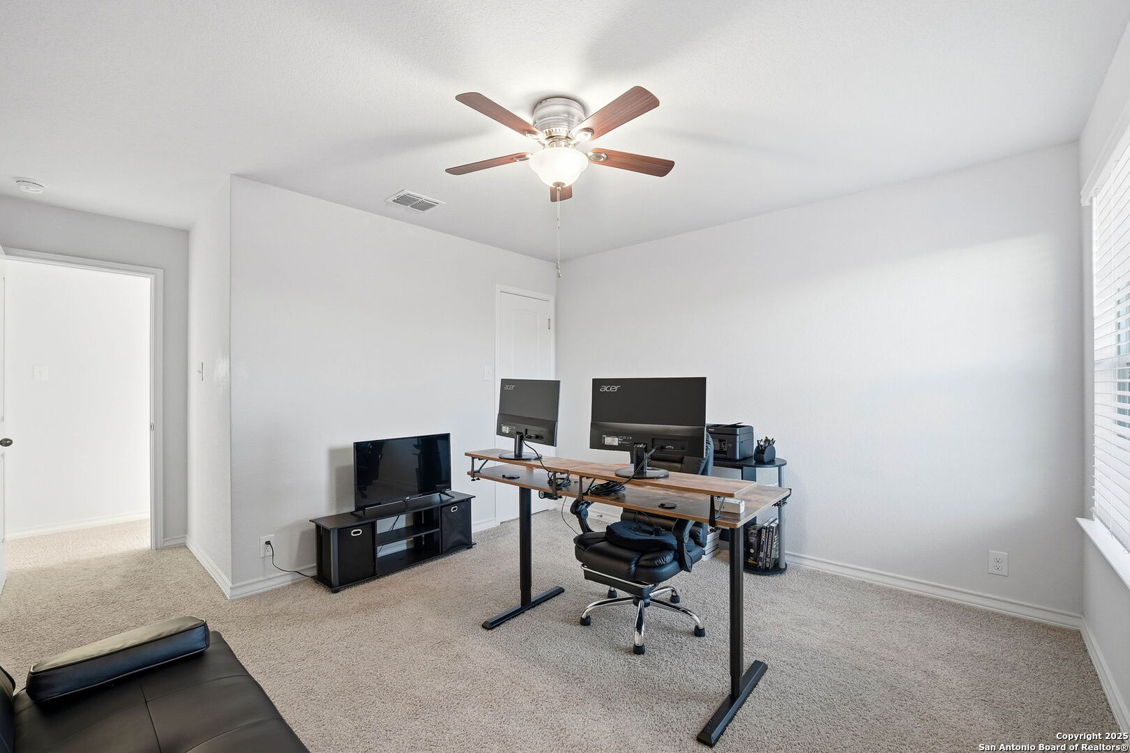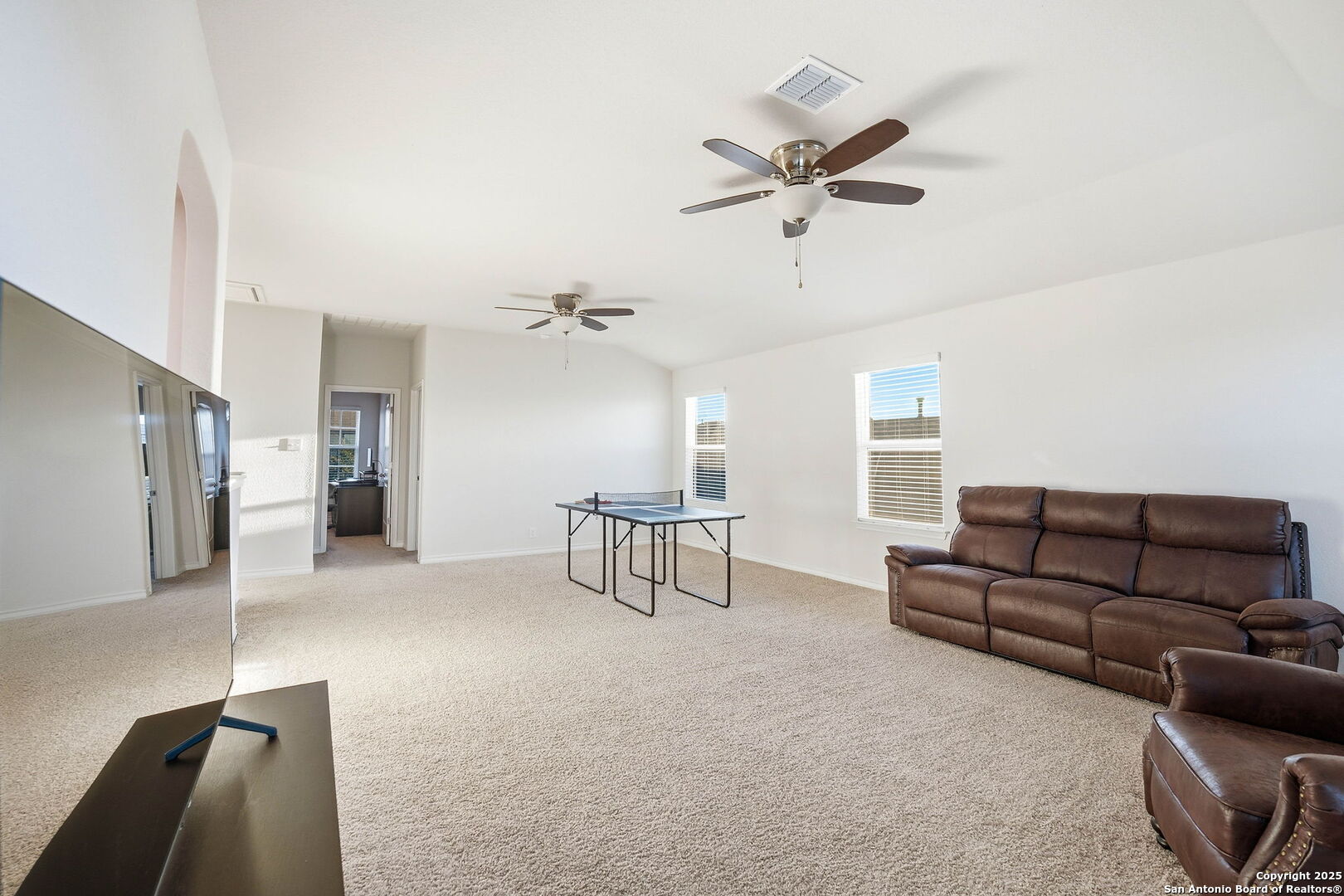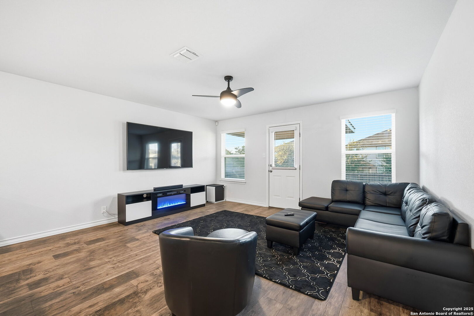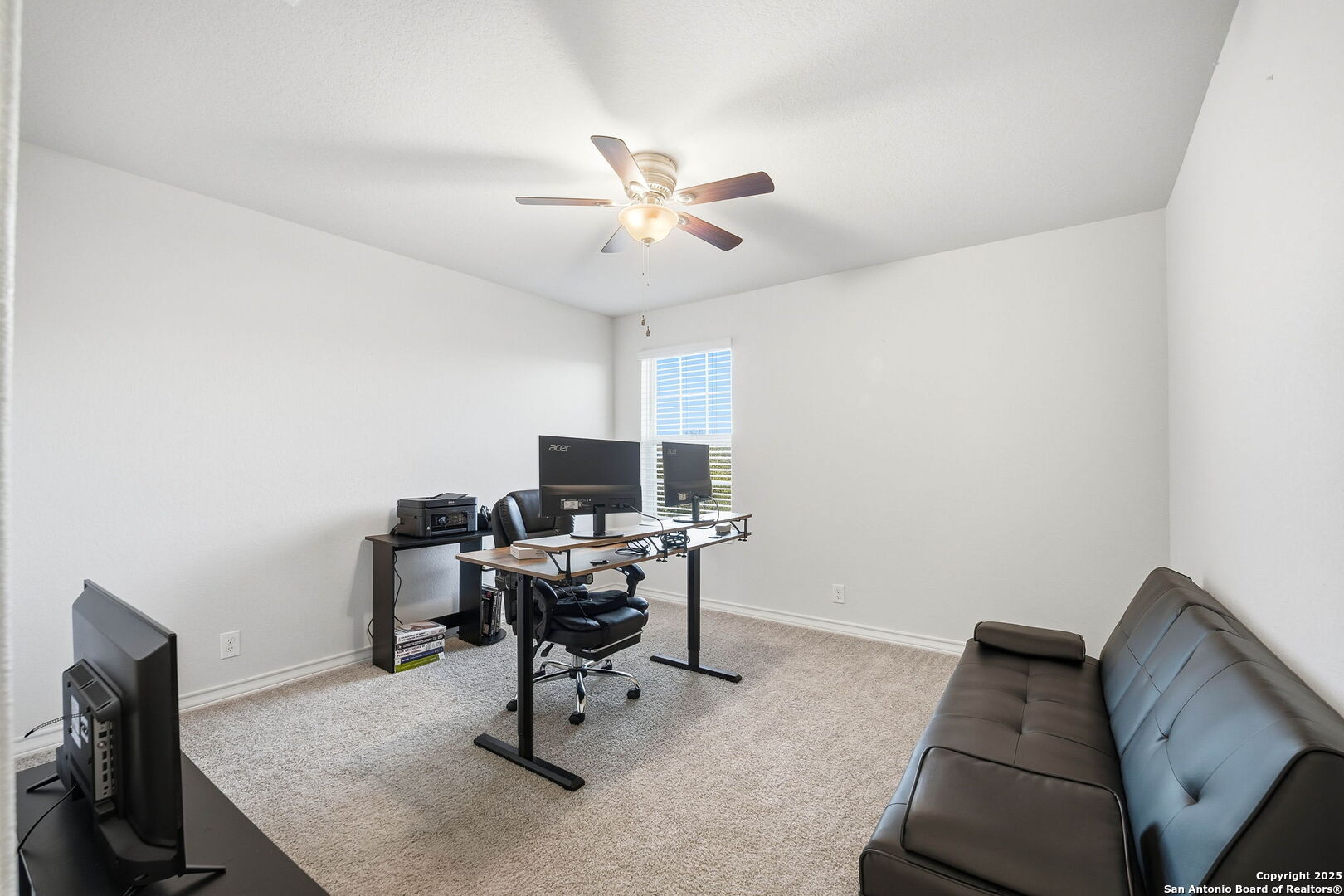 Welcome to this beautifully maintained 5-bedroom, 3.5-bath, 2,667 sq ft brick home located in the highly desirable Langdon community within an award-winning ISD. Designed for comfort and functionality, the open-concept layout offers a warm, inviting feel with excellent natural light and a seamless flow between the living area and kitchen. The kitchen includes a large center island with breakfast bar seating, abundant cabinetry, and generous counter space. The formal dining room provides an ideal setting for family gatherings and holiday meals. The primary suite on the main level offers a private ensuite with double sinks, a soaking tub, and a separate shower. Upstairs are four spacious bedrooms, two full baths, and a versatile loft-perfect for a game room, home office, or media space. Step outside to a fully fenced backyard with a covered patio, ideal for outdoor entertaining or relaxation. Enjoy world-class community amenities at Langdon, including a resort-style pool, fitness center, clubhouse, splash pad, sports courts, dog park, and playground. Conveniently located near Loop 1604, Hwy 281, and Evans Rd, you'll have quick access to some of San Antonio's best dining, shopping, and entertainment. Don't miss your chance to call this incredible home yours-schedule a showing today!