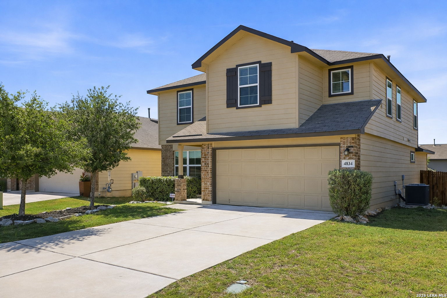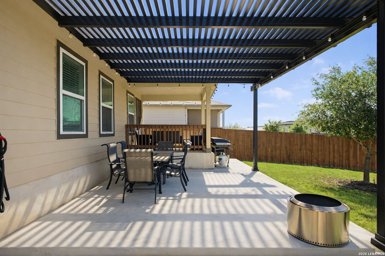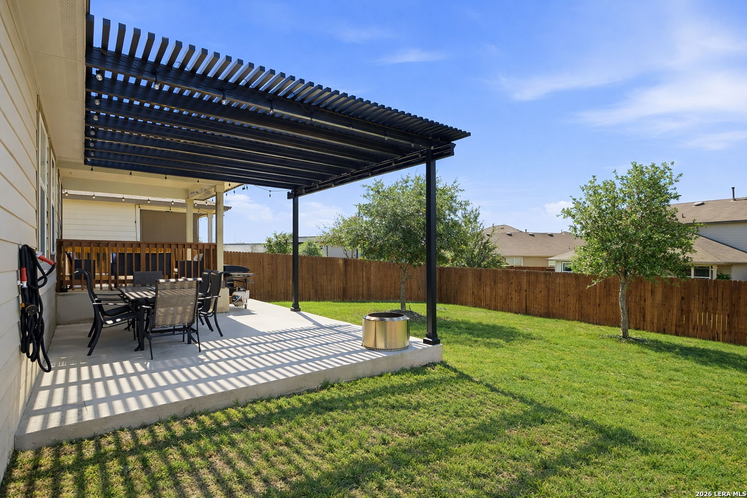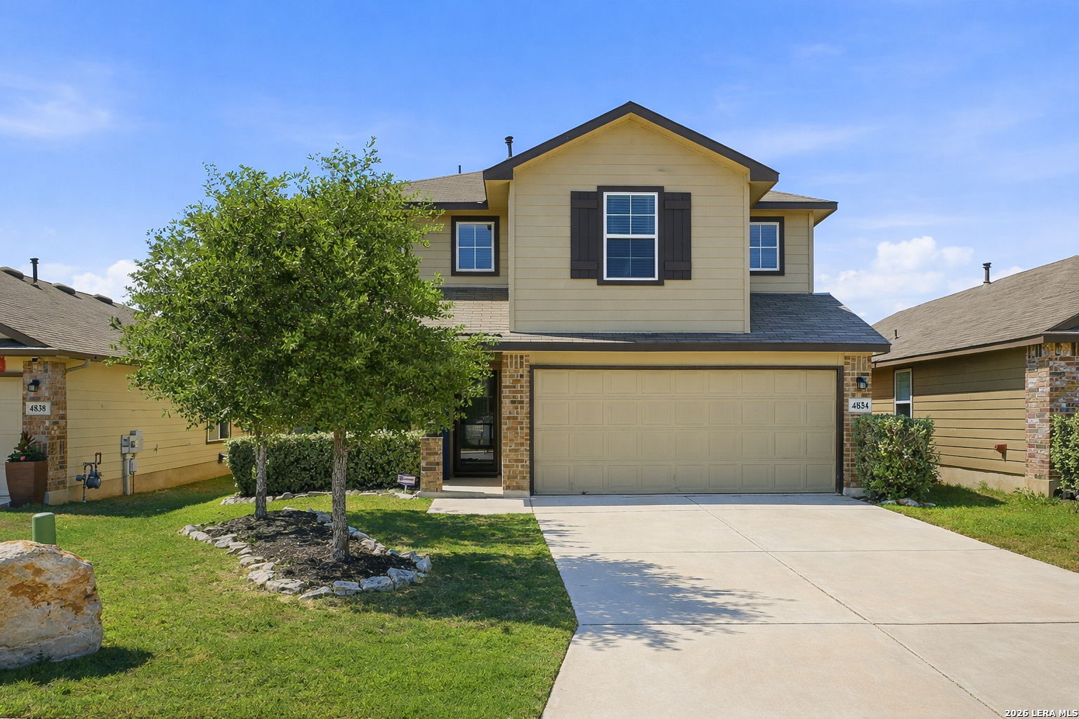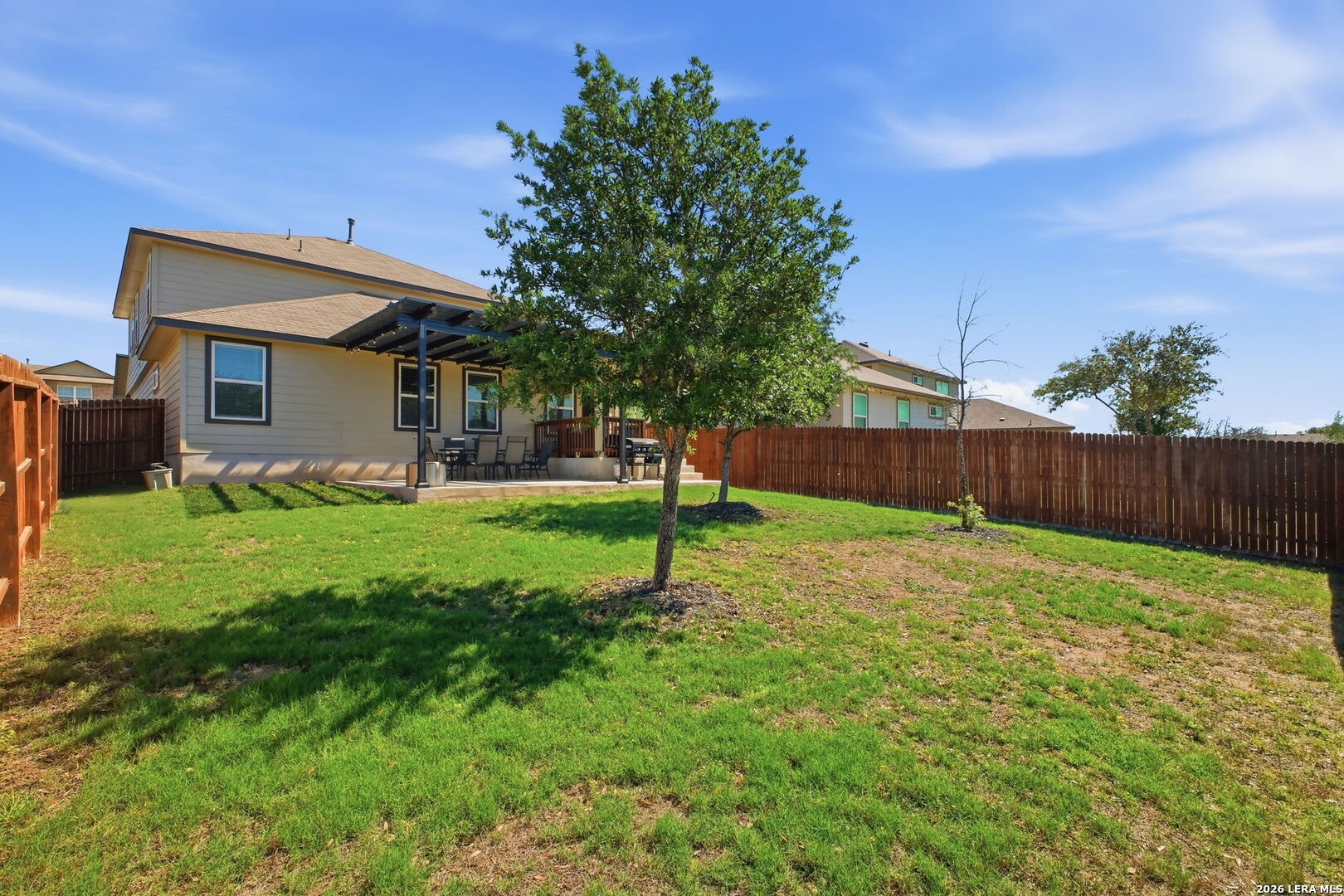 Step into comfort and style with this beautifully upgraded, move-in-ready home designed for both everyday living and effortless entertaining, offering features rarely found in nearby new construction. Featuring the sought-after 2539 floor plan, this home offers exceptional versatility with the option for a 5th bedroom or flex room, plus an oversized game/media room to fit your lifestyle. The heart of the home is a gourmet gas kitchen showcasing granite countertops, stainless steel appliances, and sleek modern finishes, all enhanced by updated lighting and ceiling fans that create a bright, polished feel throughout. The thoughtfully designed layout includes a private primary suite on the main level, while upstairs features four generously sized bedrooms, each with a walk-in closet, along with the expansive game/media room, ideal for relaxing, entertaining, or creating a dedicated workspace, gym, or play area. Outdoors, the home truly shines. Enjoy a fully finished 17x15 extended patio with pergola and separate, step-out covered patio, perfect for gatherings or peaceful evenings, alongside a professionally landscaped yard with a sprinkler system for easy maintenance. Additional upgrades include a water softener and smart-home features such as a Ring doorbell, programmable thermostat, and a security system with phone and Alexa connectivity. Residents enjoy resort-style amenities including a clubhouse, fitness center, pool, splash pad, park, basketball courts, and dog park, plus a full calendar of community events from yoga and Zumba to family-friendly gatherings. Zoned to Veterans Memorial High School, known for its outstanding athletic and education programs and strong community spirit, this home also offers convenient access to major highways, including Loop 1604 and Highway 281, making commuting throughout San Antonio quick and efficient. Located near Villages of Stone Oak and The Shops at La Cantera, everyday conveniences are just minutes away. Owner financing is available-don't miss this exceptional opportunity to own a home that truly has it all!