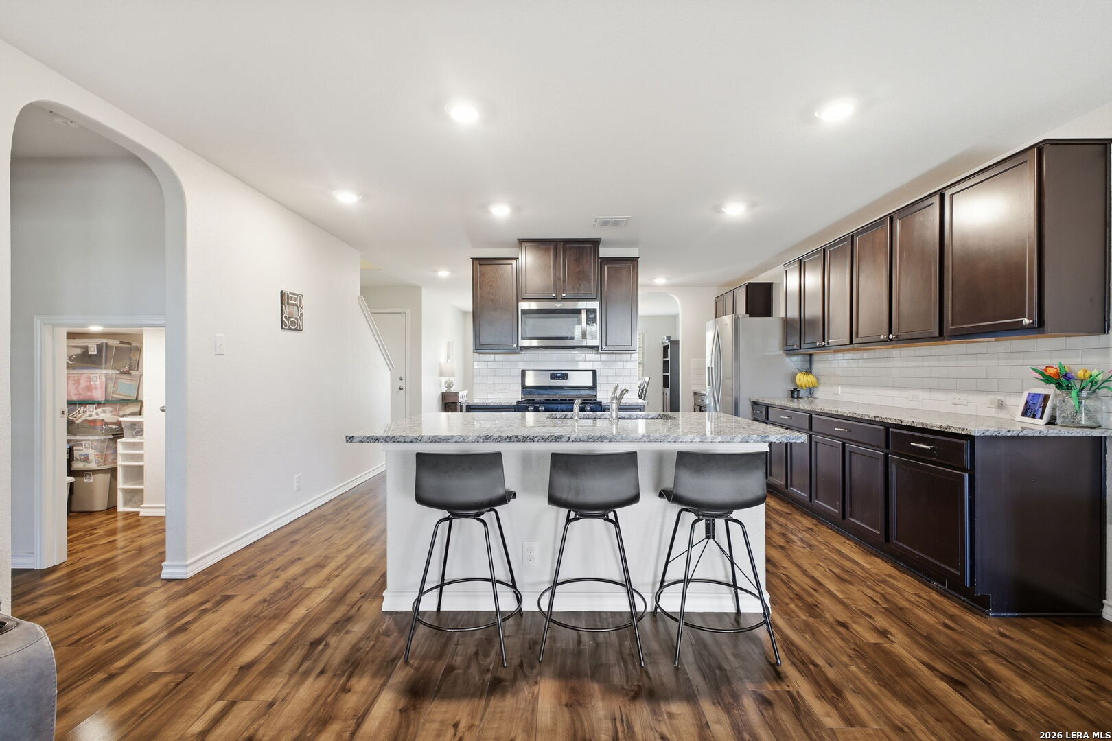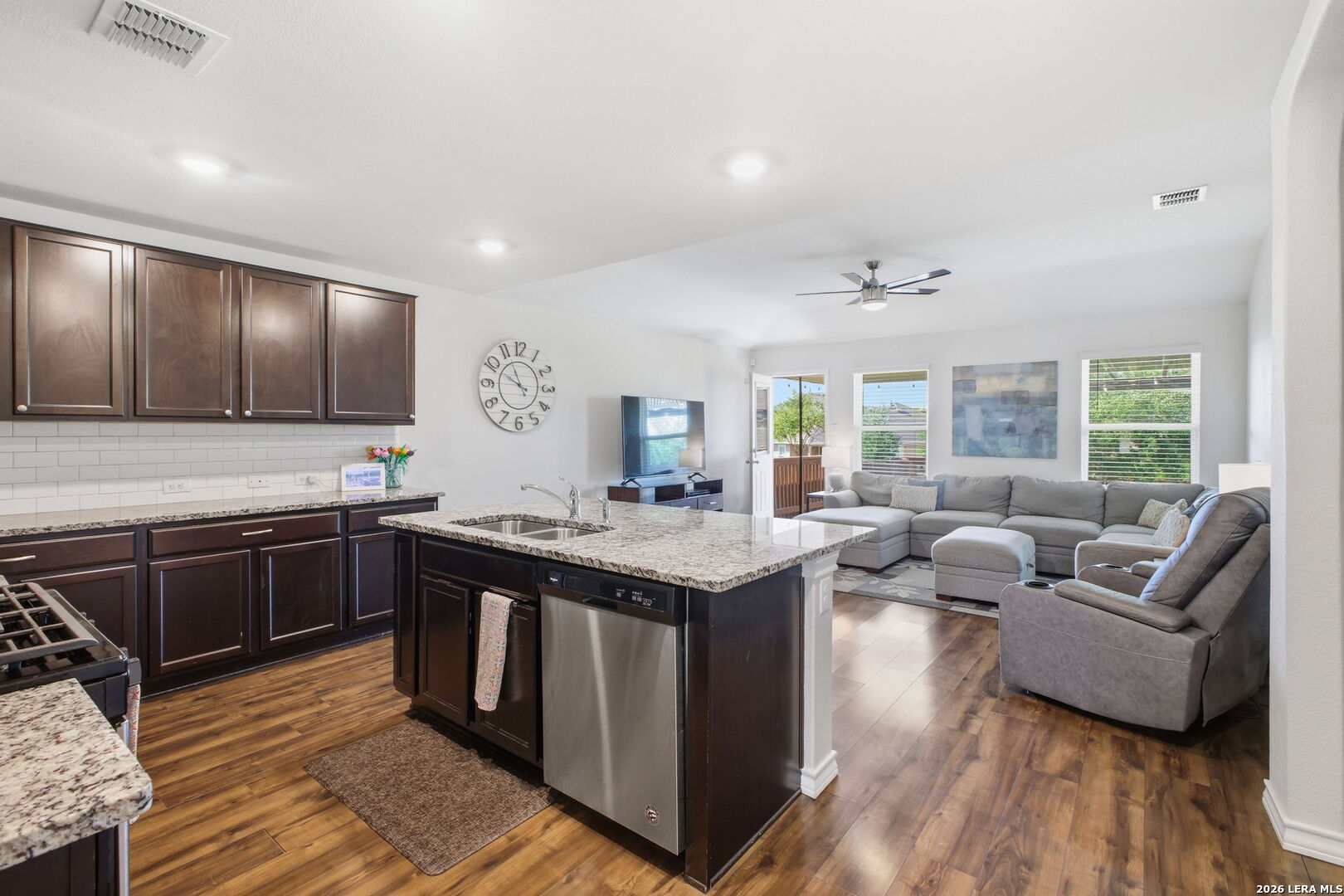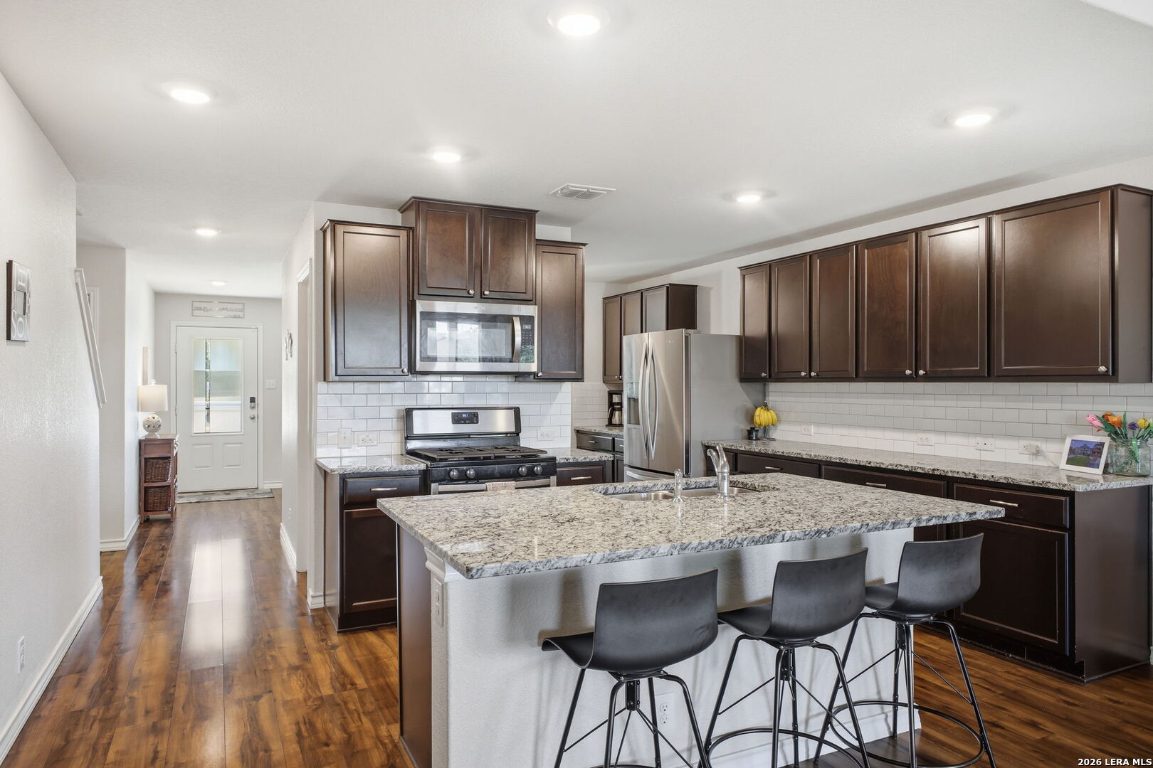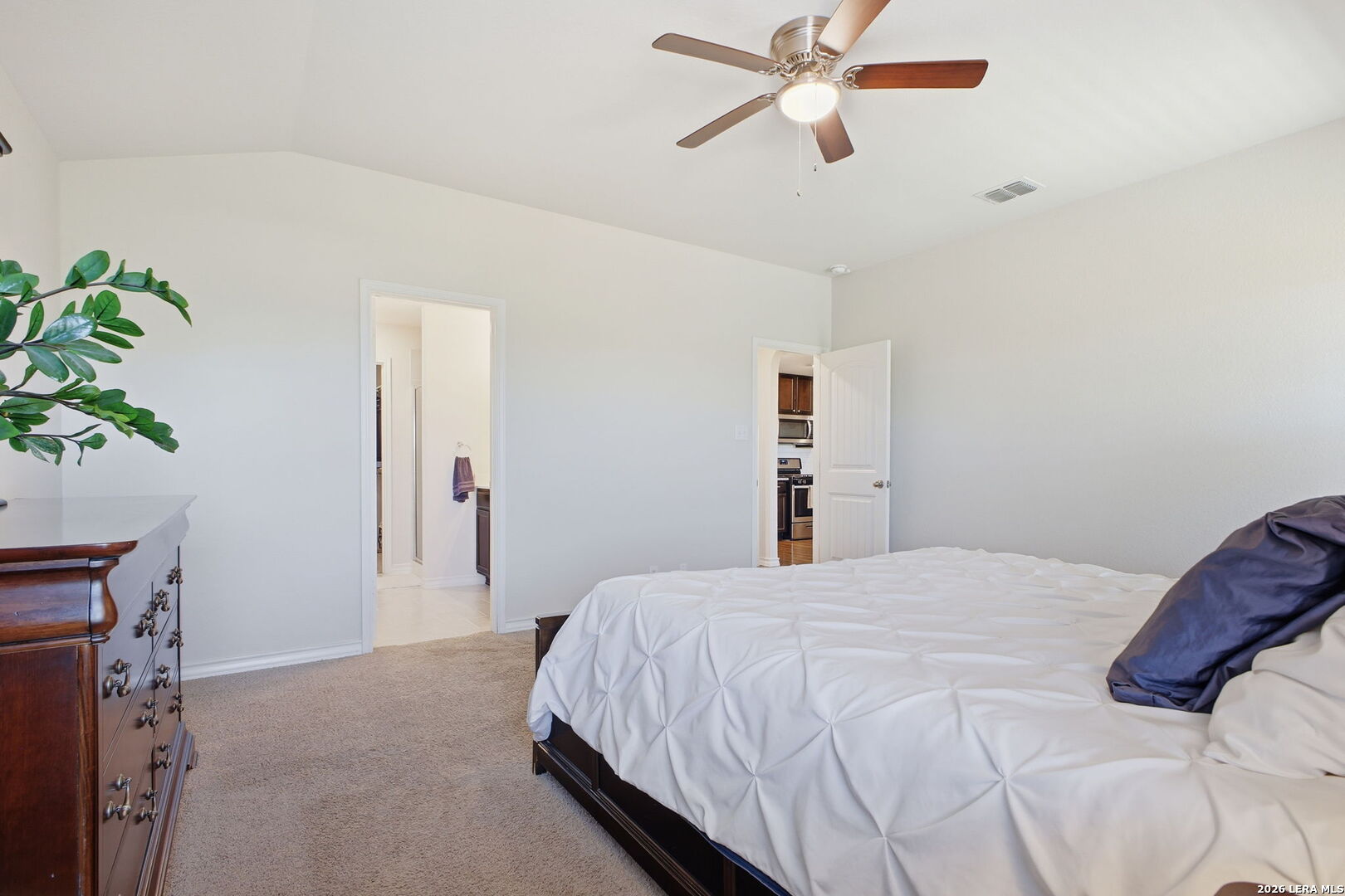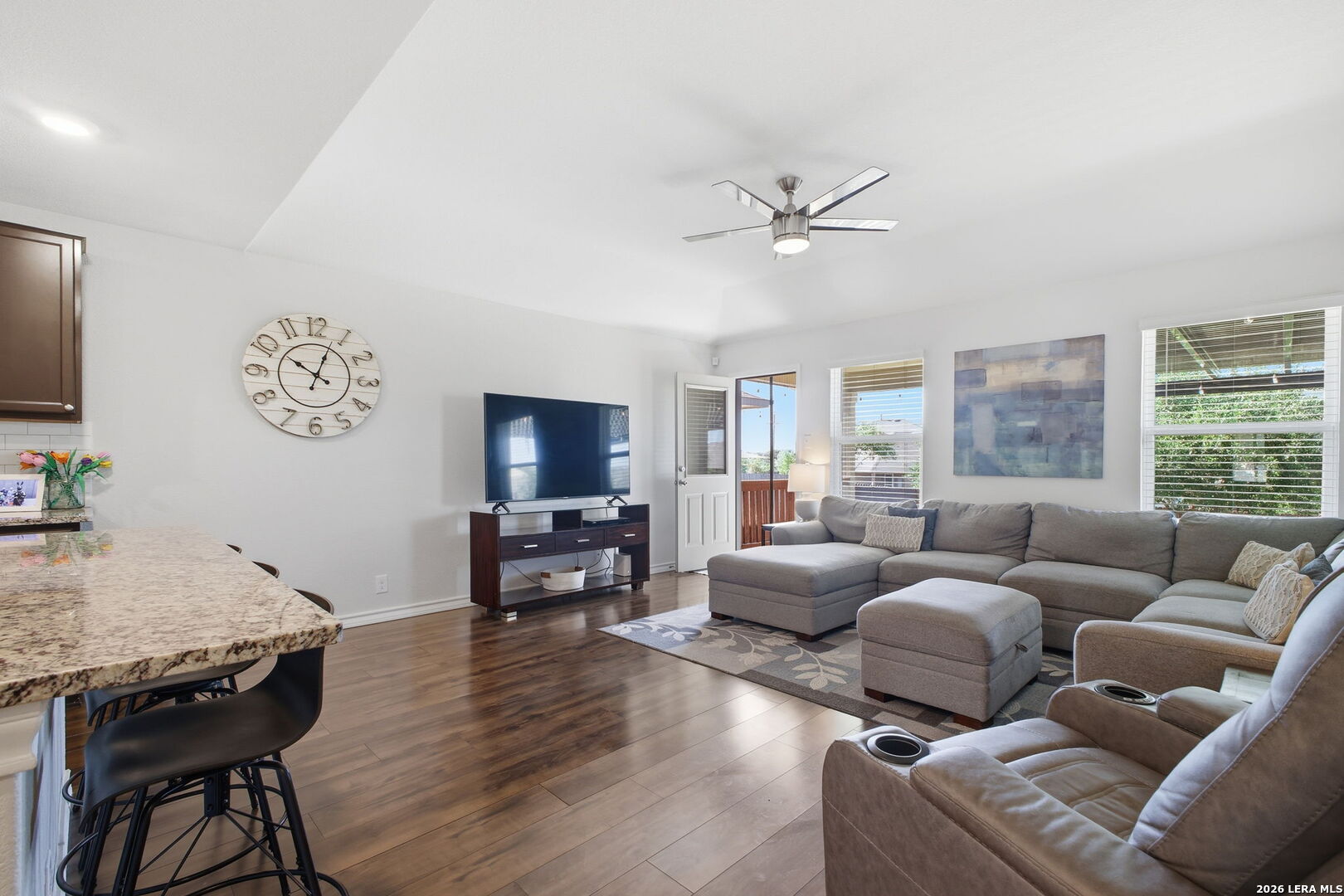 Step into comfort and style with this beautifully upgraded, move-in-ready home designed for both everyday living and effortless entertaining, offering features rarely found in nearby new construction. Featuring the sought-after 2539 floor plan, this home offers exceptional versatility with the option for a 5th bedroom or flex room, plus an oversized game/media room to fit your lifestyle. The heart of the home is a gourmet gas kitchen showcasing granite countertops, stainless steel appliances, and sleek modern finishes, all enhanced by updated lighting and ceiling fans that create a bright, polished feel throughout. The thoughtfully designed layout includes a private primary suite on the main level, while upstairs features four generously sized bedrooms, each with a walk-in closet, along with the expansive game/media room, ideal for relaxing, entertaining, or creating a dedicated workspace, gym, or play area. Outdoors, the home truly shines. Enjoy a fully finished 17x15 extended patio with pergola and separate, step-out covered patio, perfect for gatherings or peaceful evenings, alongside a professionally landscaped yard with a sprinkler system for easy maintenance. Additional upgrades include a water softener and smart-home features such as a Ring doorbell, programmable thermostat, and a security system with phone and Alexa connectivity. Residents enjoy resort-style amenities including a clubhouse, fitness center, pool, splash pad, park, basketball courts, and dog park, plus a full calendar of community events from yoga and Zumba to family-friendly gatherings. Zoned to Veterans Memorial High School, known for its outstanding athletic and education programs and strong community spirit, this home also offers convenient access to major highways, including Loop 1604 and Highway 281, making commuting throughout San Antonio quick and efficient. Located near Villages of Stone Oak and The Shops at La Cantera, everyday conveniences are just minutes away. Owner financing is available-don't miss this exceptional opportunity to own a home that truly has it all!