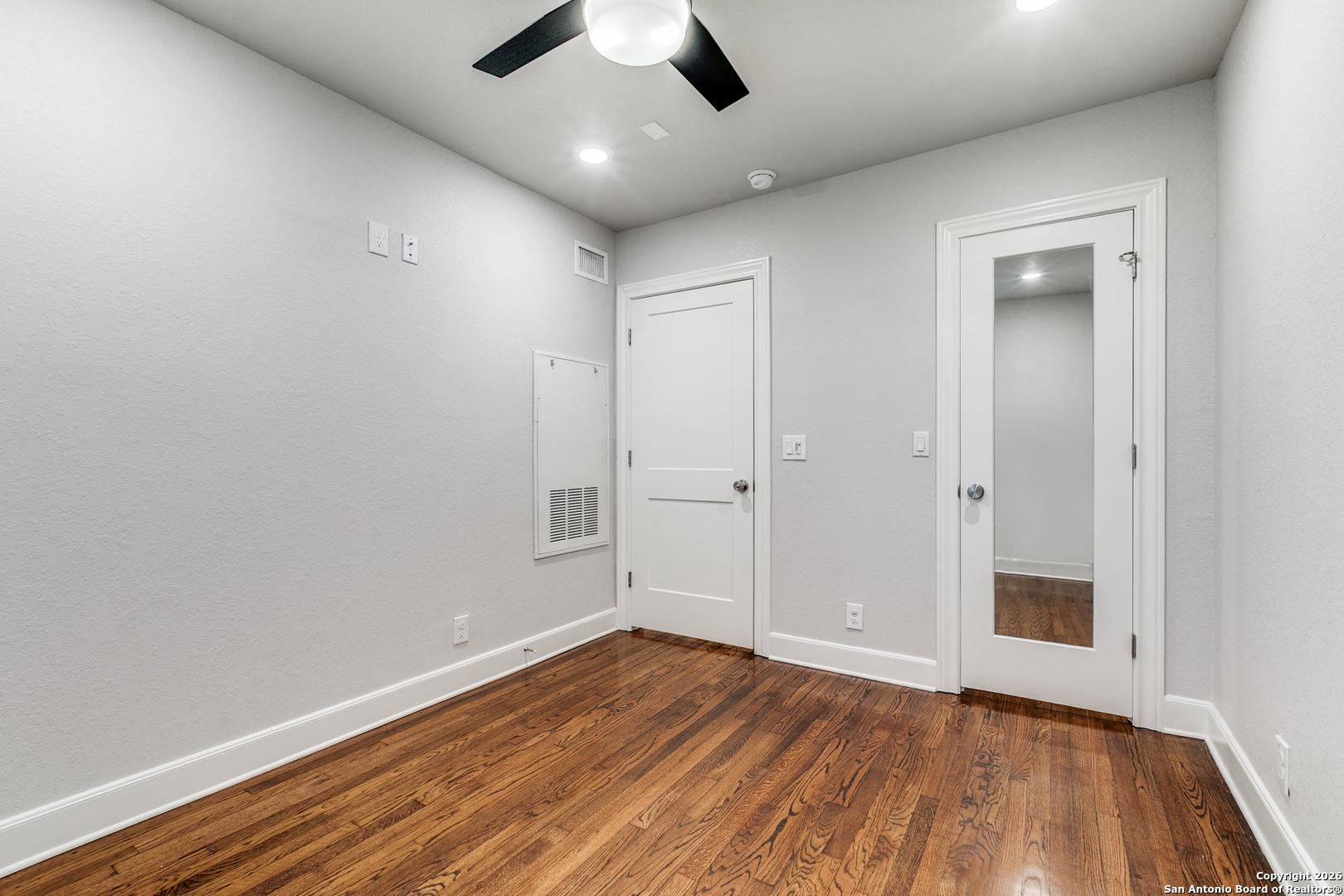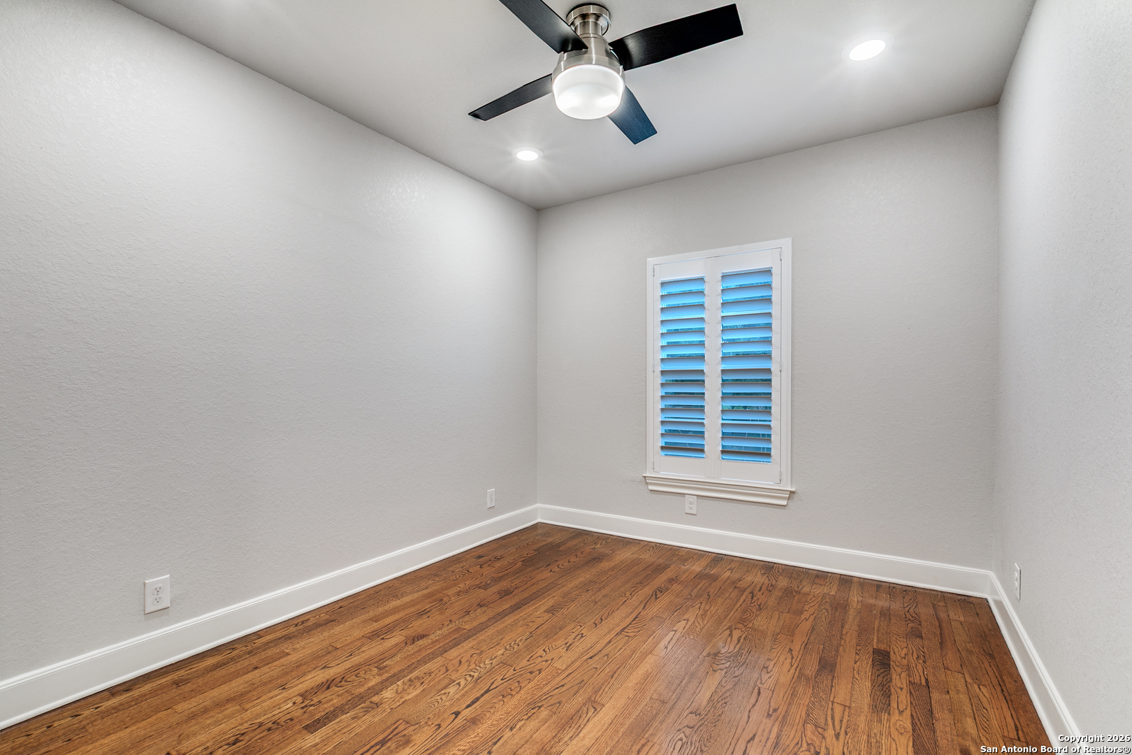 Beautiful 3-Bedroom, 1.5-Bathroom Triplex Unit in Fantastic Olmos Park Location. Walking Distance to Shopping & Restaurants at Olmos Park Circle, Minutes from Downtown, Airport, The Pearl, & More. Extensively Remodeled in 2020, Interior & Exterior, Handsome Curb Appeal & Unbeatable Location. Front Entry Opens to Spacious Living/Dining Space with Rich, Refinished Hardwood Flooring, Recessed Lighting, Plantation Shutters, & Neutral Paint Colors. Gorgeous Island Kitchen with Stainless Steel Appliances, New Cabinetry, & Granite Countertops. Stacked Washer/Dryer in Laundry Closet. Nicely-Sized Bedrooms with Hardwood Flooring & Ceiling Fans. Renovated Bathroom with Tub/Shower, Granite Vanity, & Designer Finishes. Rear Exit in Kitchen to Sidewalk Leading to Carport & Patio. Fenced/Gated Yard. Assigned Covered Carport Parking with Additional Storage Unit & Patio Area. No Pets Allowed. Alamo Heights ISD.