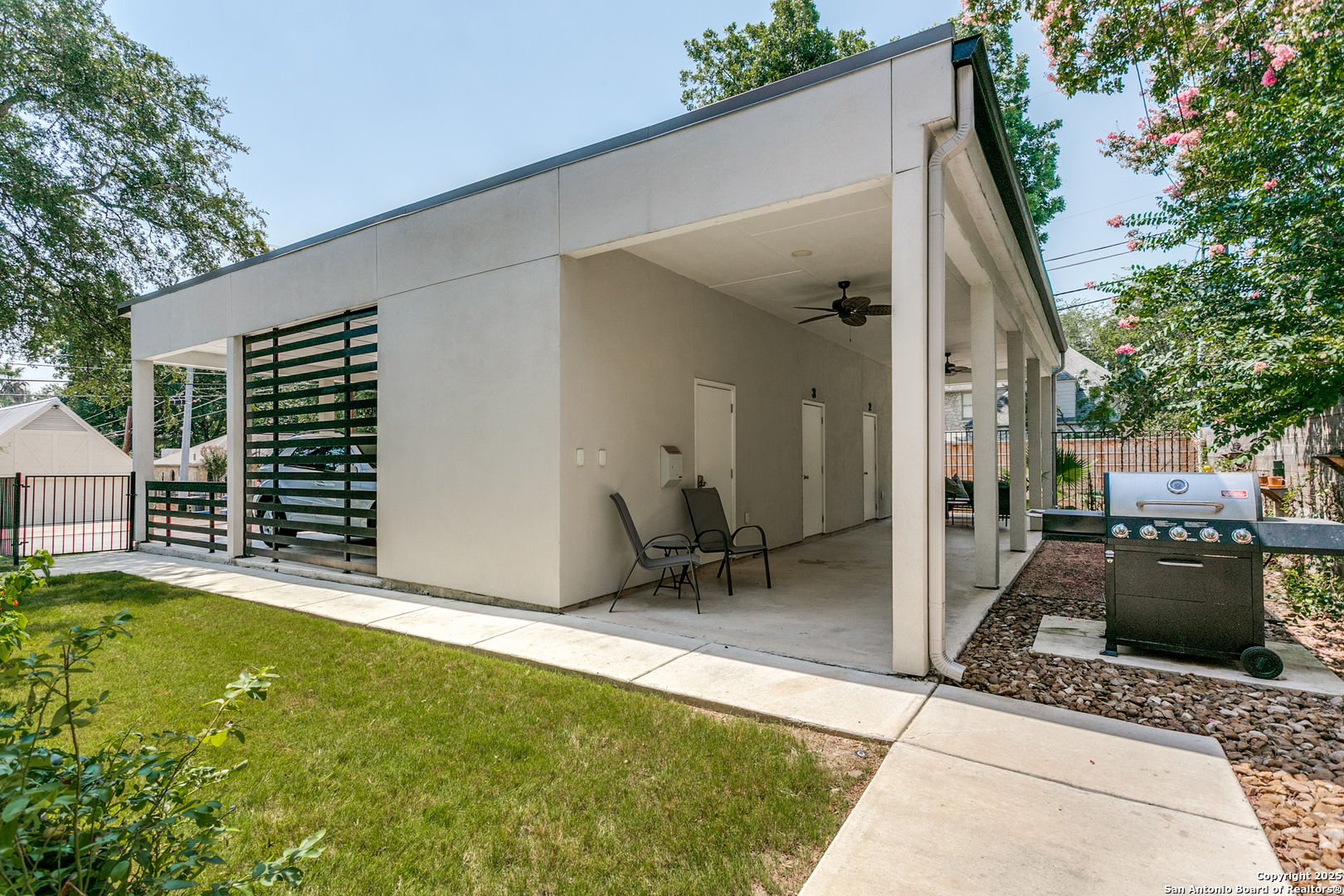 Beautiful 2-Bedroom, 1-Bathroom Upstairs Triplex Unit in Fantastic Olmos Park Location. Walking Distance to Shopping & Restaurants at Olmos Park Circle, Minutes from Downtown, Airport, The Pearl, & More. Extensively Remodeled in 2020, Interior & Exterior, Handsome Curb Appeal & Unbeatable Location. Front Entry Leads Upstairs to Spacious Living Area with Rich, Refinished Hardwood Flooring, Recessed Lighting, Plantation Shutters, & Neutral Paint Colors. Gorgeous Island Kitchen with Stainless Steel Appliances, New Cabinetry, & Granite Countertops. Stacked Washer/Dryer in Laundry Closet. Nicely-Sized Bedrooms with Hardwood Flooring & Ceiling Fans. Renovated Bathroom with Tub/Shower, Granite Vanity, & Designer Finishes. Rear Exit in Kitchen to Sidewalk Leading to Carport & Patio. Fenced/Gated Yard. Assigned Covered Carport Parking with Additional Storage Unit & Patio Area. No Pets Allowed. Alamo Heights ISD.
