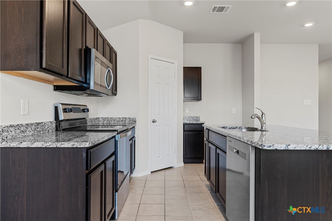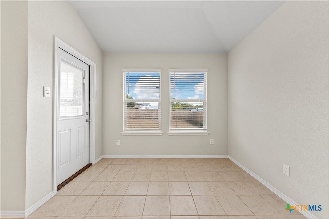 Welcome to Mesa Verde Estates in Killeen, Texas! This charming 3-bedroom, 2-bathroom home spans 1,335 square feet and is designed for comfort and functionality. The kitchen features a central island with an eat-in option and flows seamlessly into the open dining and living areas, making it perfect for entertaining or casual family gatherings. The primary bedroom is privately located just off the living room, while the secondary bedrooms are situated at the front of the house, creating a desirable split layout. A convenient laundry room is located just off the garage entrance, close to the primary bedroom and living area. Step out from the living room into a private, level backyard—ideal for relaxation or outdoor activities. This home also comes equipped with a security system and a sprinkler system for easy maintenance. Ideally situated, you’re just minutes from local eateries, HEB, and SH 195. Enjoy the convenience of being 15 minutes from Fort Cavazos, shopping, dining, and multiple hospital systems. This home is move-in ready and waiting for its new owners!