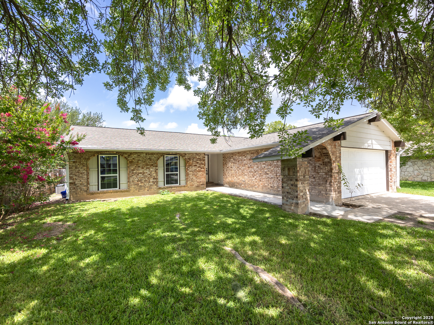Welcome to this inviting 3-bedroom, 2-bath home designed for comfort and functionality. The open-concept layout features soaring ceilings and a bright, spacious feel throughout. A separate office provides the ideal space for working from home, studying, or pursuing hobbies. The kitchen is equipped with upgraded appliances, while both bathrooms showcase clean, modern finishes. Step outside to an oversized patio-perfect for entertaining, weekend barbecues, or unwinding at the end of the day. Situated in the highly regarded Schertz-Cibolo-Universal City ISD and located within a community that offers its own golf course, this home delivers the perfect balance of style, convenience, and lifestyle.