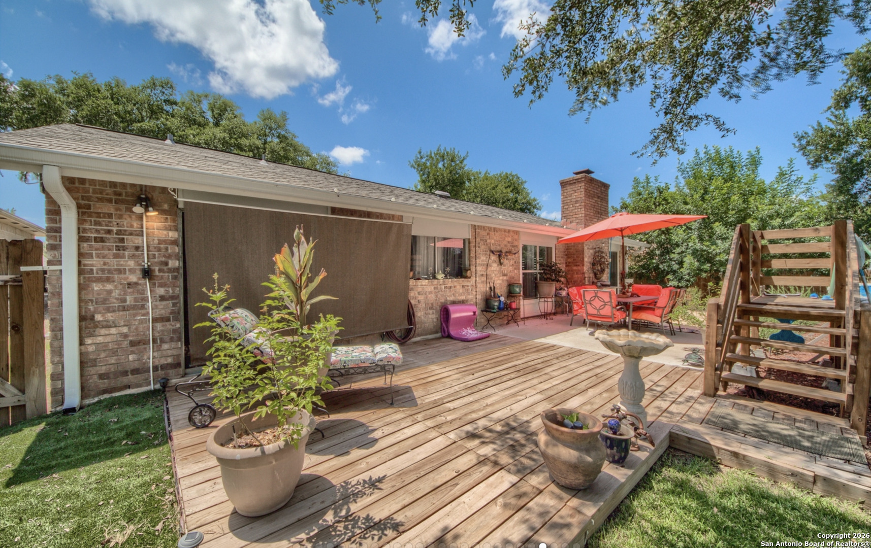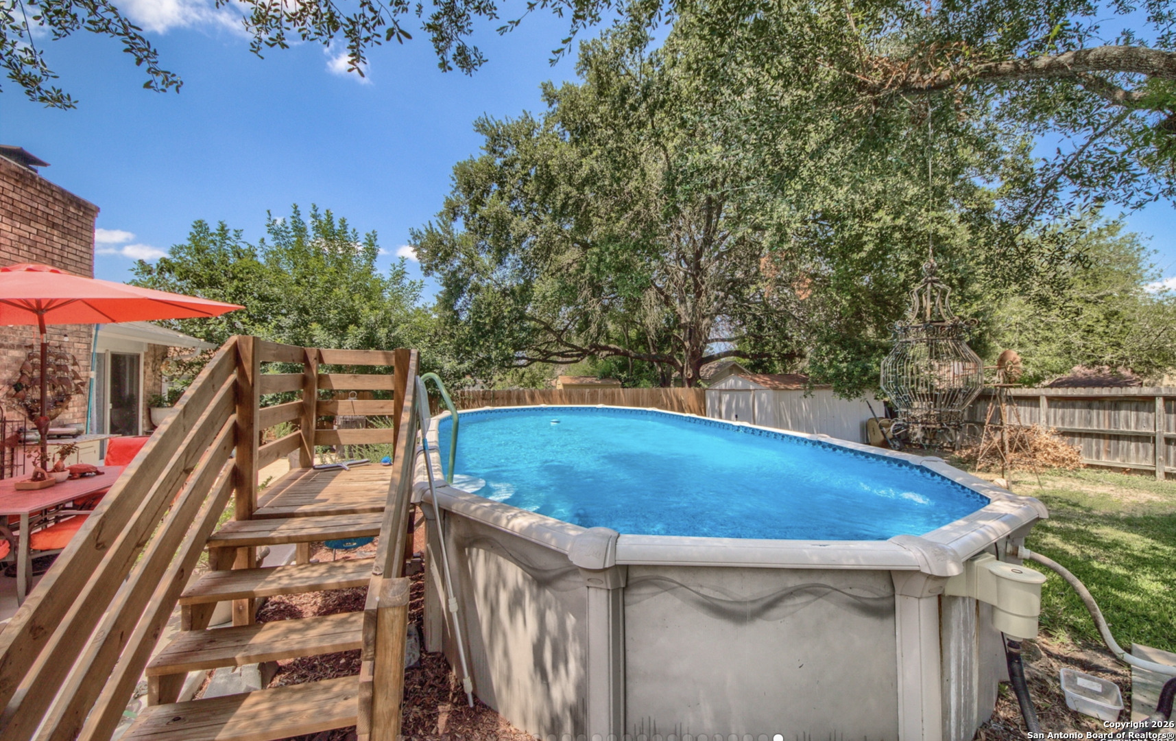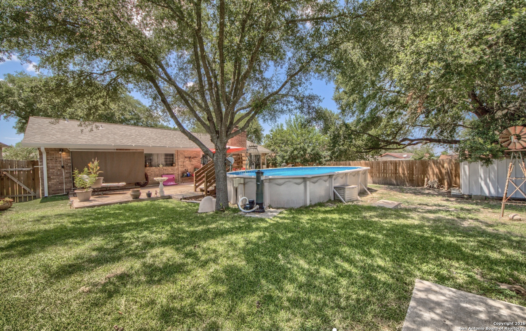 This ideal single-story home features 3 bedrooms, 2 bathrooms, and a 2-car garage, offering a functional layout ideal for homeowners or investors alike. The kitchen is equipped with matte-finish granite countertops and appliances, providing a modern and durable workspace. The home offers laminated wood flooring throughout and a spacious primary suite with direct access to the backyard, creating a private retreat. The roof and gutters were replaced approximately six years ago, adding peace of mind for future ownership. Step outside to a large backyard complete with an above-ground pool, perfect for outdoor enjoyment, entertaining, or tenant appeal. Conveniently located with quick access to the Air Force base, nearby shopping centers, grocery stores, and IH-35, this property is well positioned for strong rental demand and long-term value. Previously operated as a long-term rental, this home presents a great investment opportunity. The property is being sold as-is and is priced competitively for a quick sale, making it an excellent option for investors or owner-occupants ready to add value.