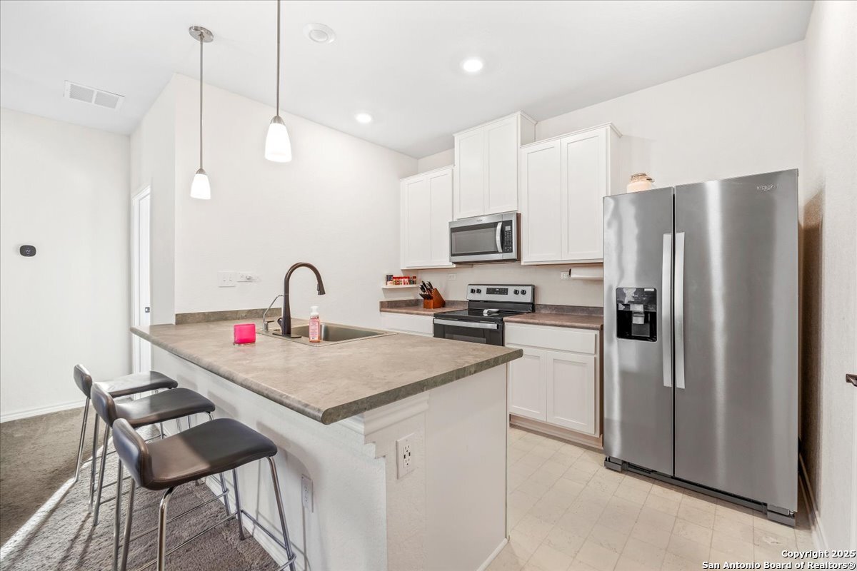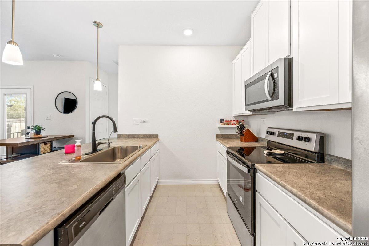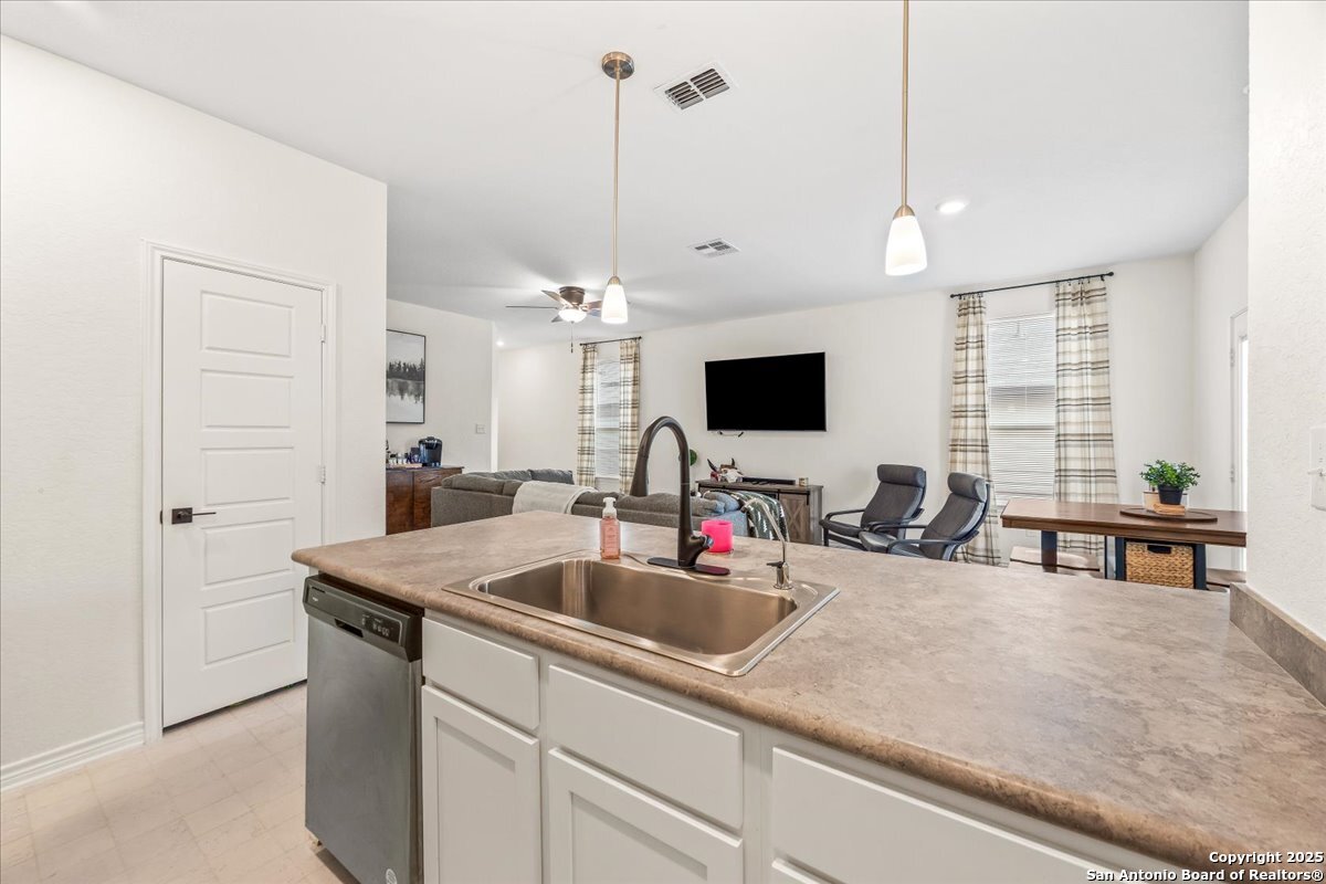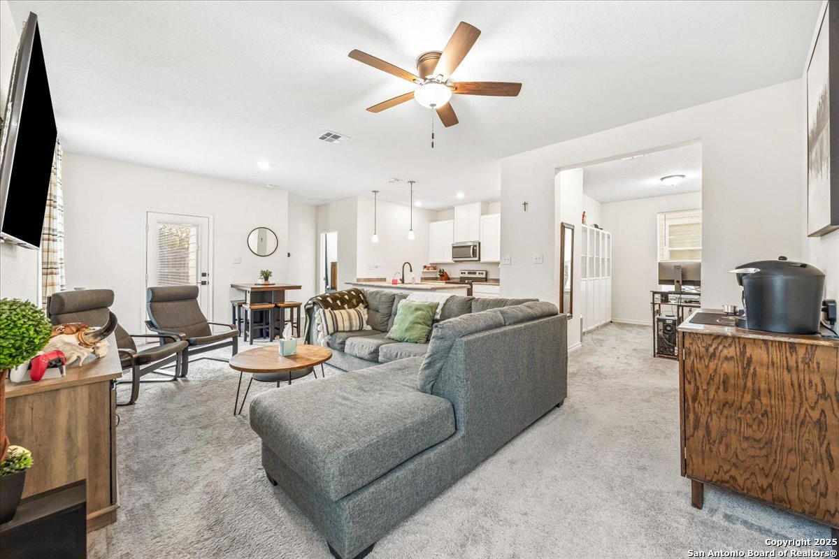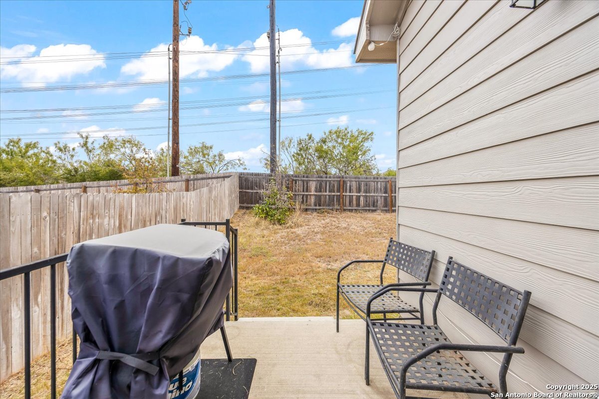 Welcome to a beautifully maintained 3-bedroom, 2-bath home nestled in the peaceful Escondido Creek neighborhood. This inviting single-story home offers an open floor plan filled with natural light, perfect for both relaxation and entertaining. Enjoy cooking in the spacious kitchen featuring modern appliances, plenty of counter space, and a breakfast bar that opens to the dining and living areas. The primary suite includes a walk-in closet and a private bathroom with dual sinks and a soaking tub. Step outside to a large fenced backyard - perfect for gatherings, pets, or enjoying the Texas evenings. The home also features a two-car garage, laundry connections, and access to community amenities like a playground and walking trails. Conveniently located near Randolph AFB, schools, shopping, and major highways, this home combines comfort, convenience, and charm. BRAND NEW HARDWOOD FLOORING WILL BE INSTALLED REPLACING THE CARPET!