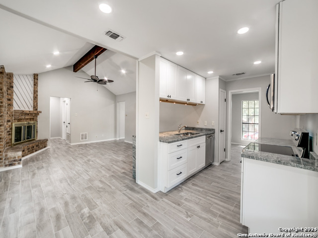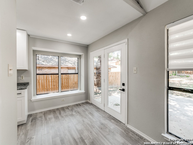 One story cozy house in the established quite neighborhood. 3 Bed, 2 Bath. Two Living areas with a fireplace and high ceiling. House features all new recessed lighting. New cabinets, stainless double sink, granite countertops over looking a large patio. Mature trees!. Beautiful gray porcelain plank floors in Living and Kitchen area. New Carpets in all the bedrooms, new doors with new hardware. The baths have new large porcelain tile on walls. Master Bedroom features trey ceiling. No pets allowed! Only Assis