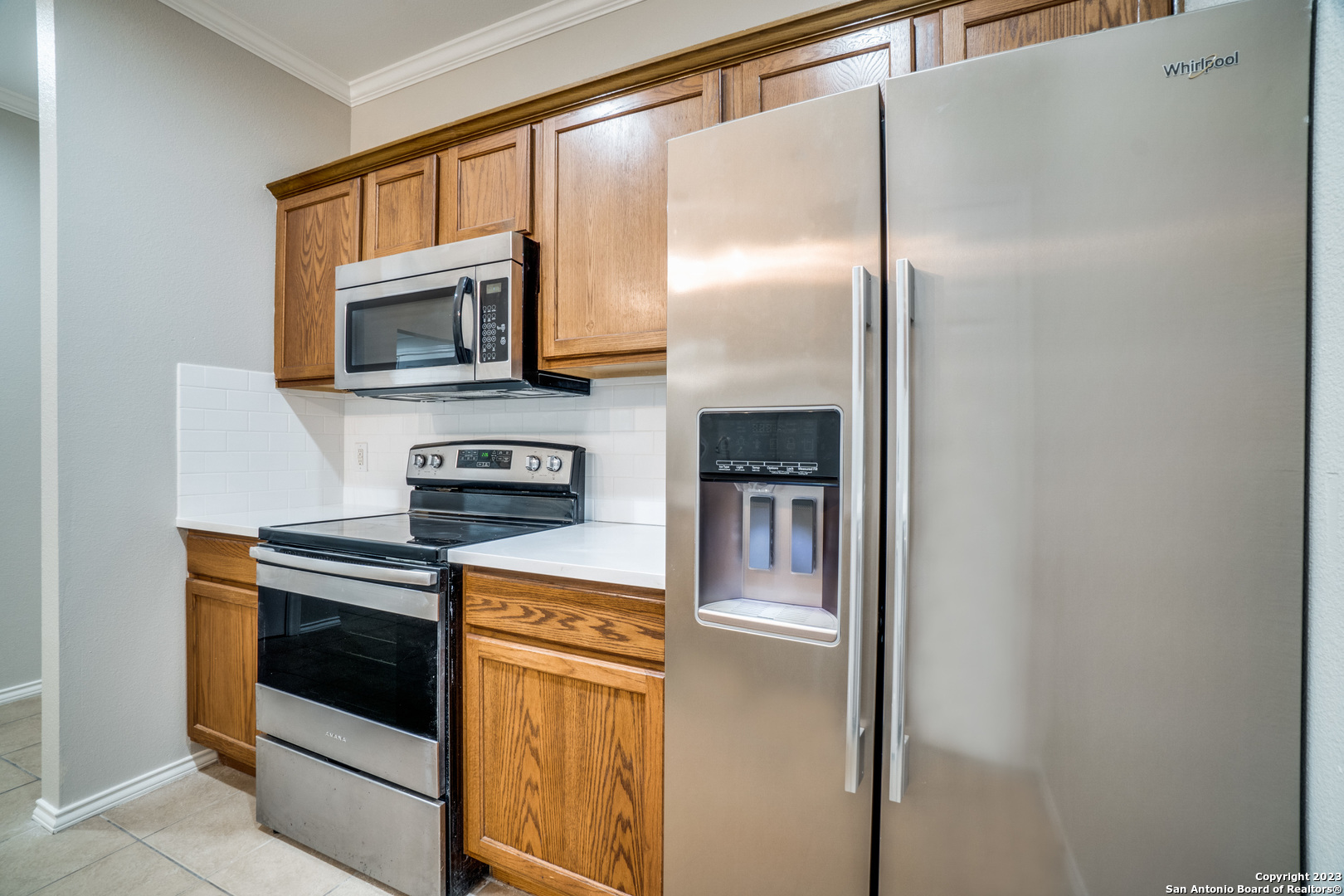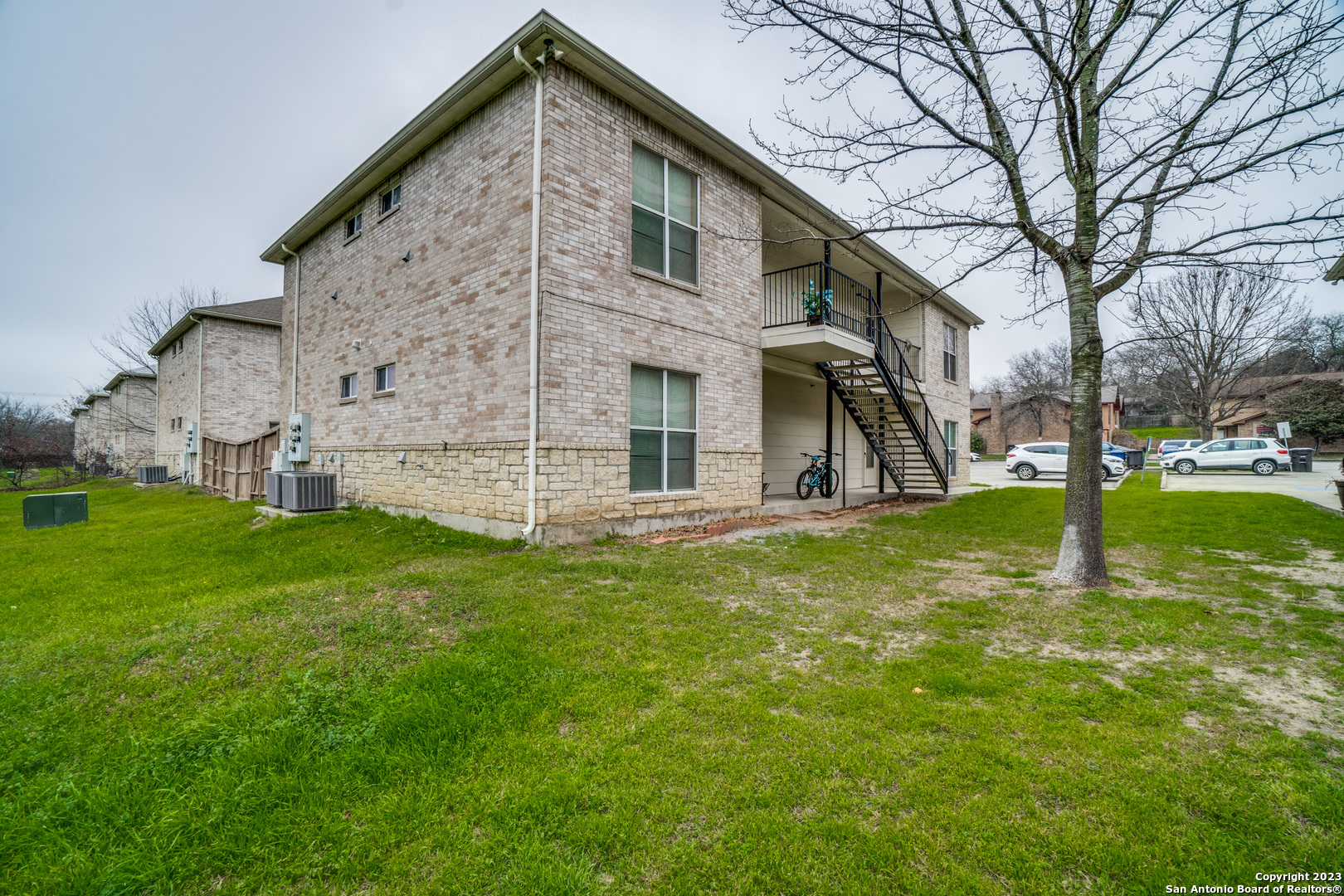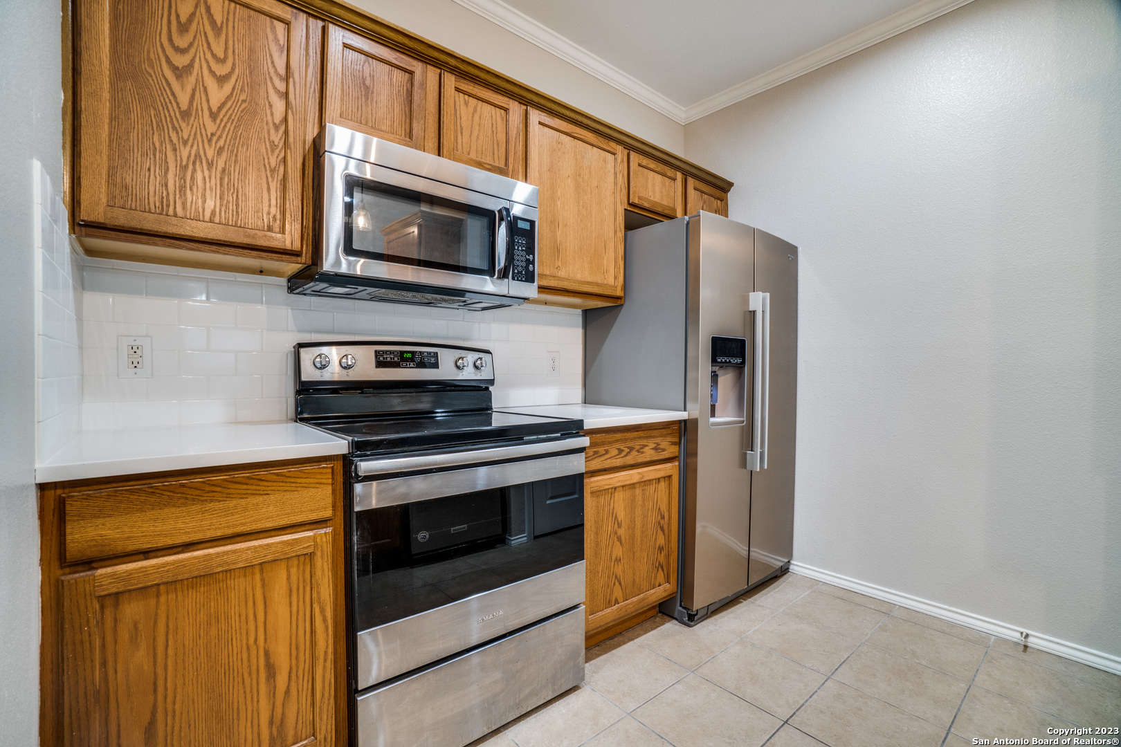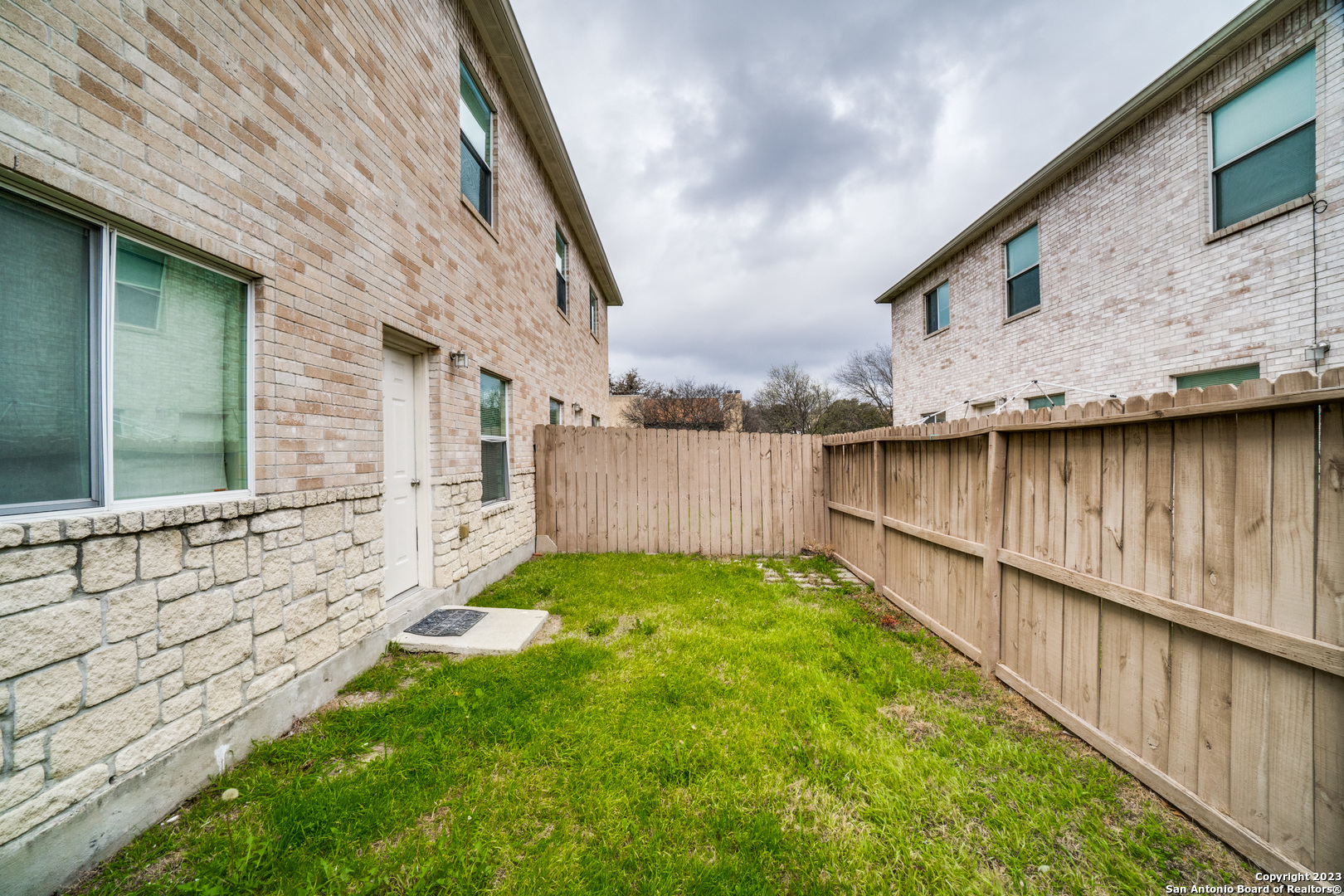 Charming 2-bedroom, 2-bathroom downstairs unit boasting 1,100 sq ft of comfortable living space. Freshly painted throughout, this home features high ceilings and stylish tile/vinyl wood-look flooring (no carpet) for a sleek, modern feel. The contemporary kitchen shines with quartz countertops and brand-new stainless steel refrigerator, dishwasher, and range. Enjoy a welcoming living area with ceiling fans and a convenient washer/dryer hookup. A small yard adds outdoor enjoyment, while ample parking provides ease for residents and guests. Ideal location moments from SA Medical Center, USAA, UTSA, and nearby shopping, with quick access to IH-10 and Loop 410. Move-in ready in a fantastic area-don't miss this bright, inviting home.
