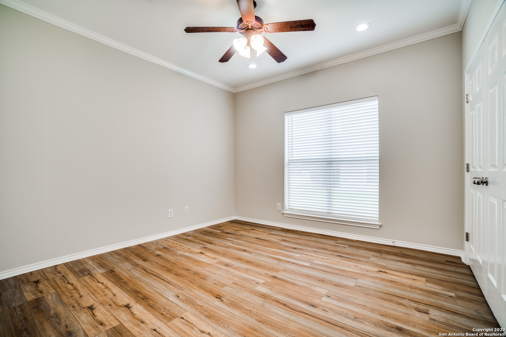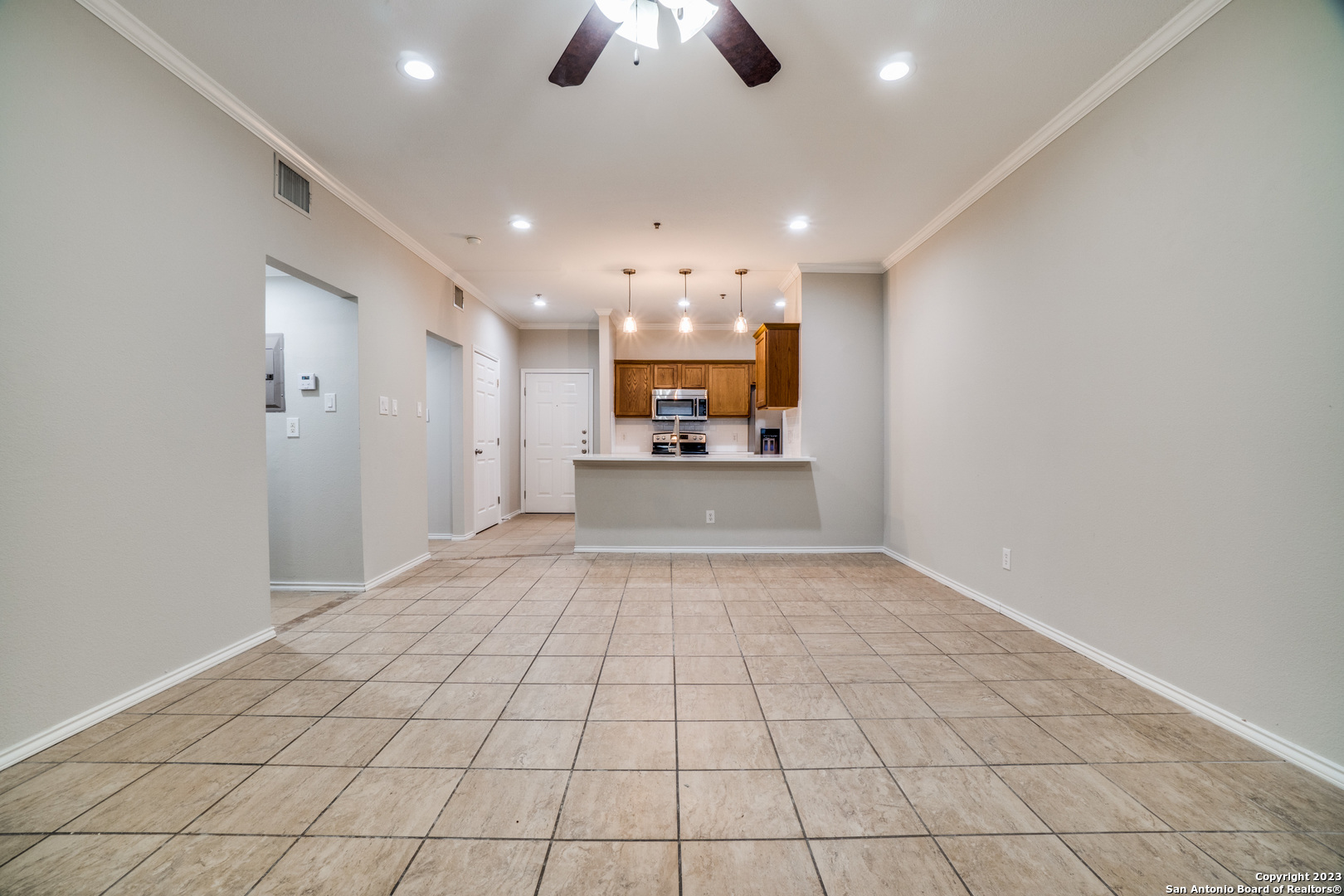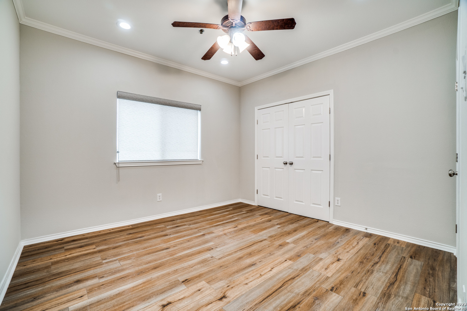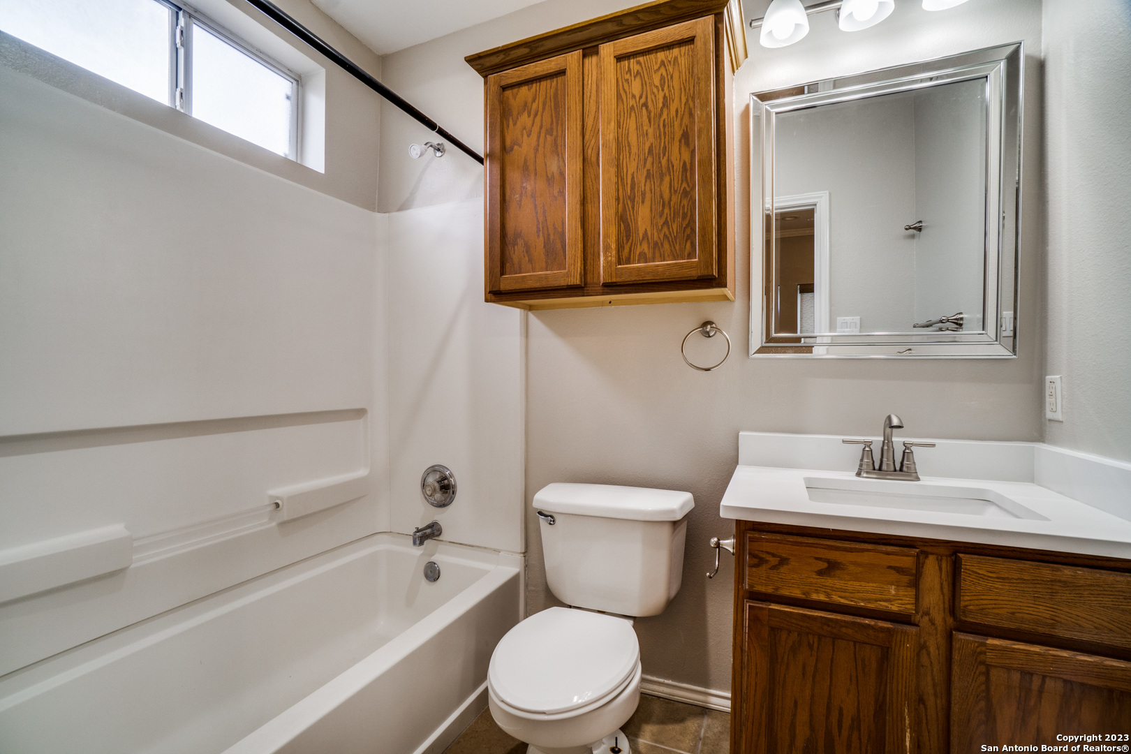 Charming 2-bedroom, 2-bathroom downstairs unit boasting 1,100 sq ft of comfortable living space. Freshly painted throughout, this home features high ceilings and stylish tile/vinyl wood-look flooring (no carpet) for a sleek, modern feel. The contemporary kitchen shines with quartz countertops and brand-new stainless steel refrigerator, dishwasher, and range. Enjoy a welcoming living area with ceiling fans and a convenient washer/dryer hookup. A small yard adds outdoor enjoyment, while ample parking provides ease for residents and guests. Ideal location moments from SA Medical Center, USAA, UTSA, and nearby shopping, with quick access to IH-10 and Loop 410. Move-in ready in a fantastic area-don't miss this bright, inviting home.