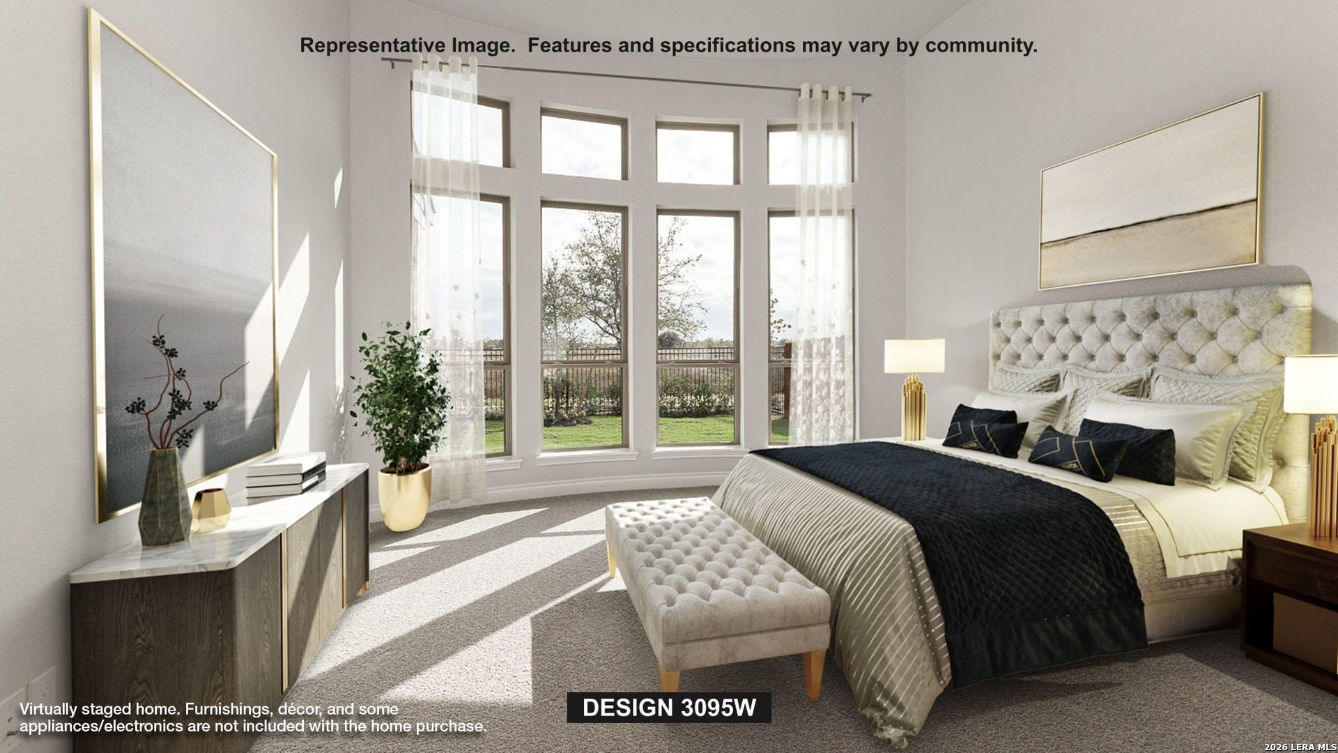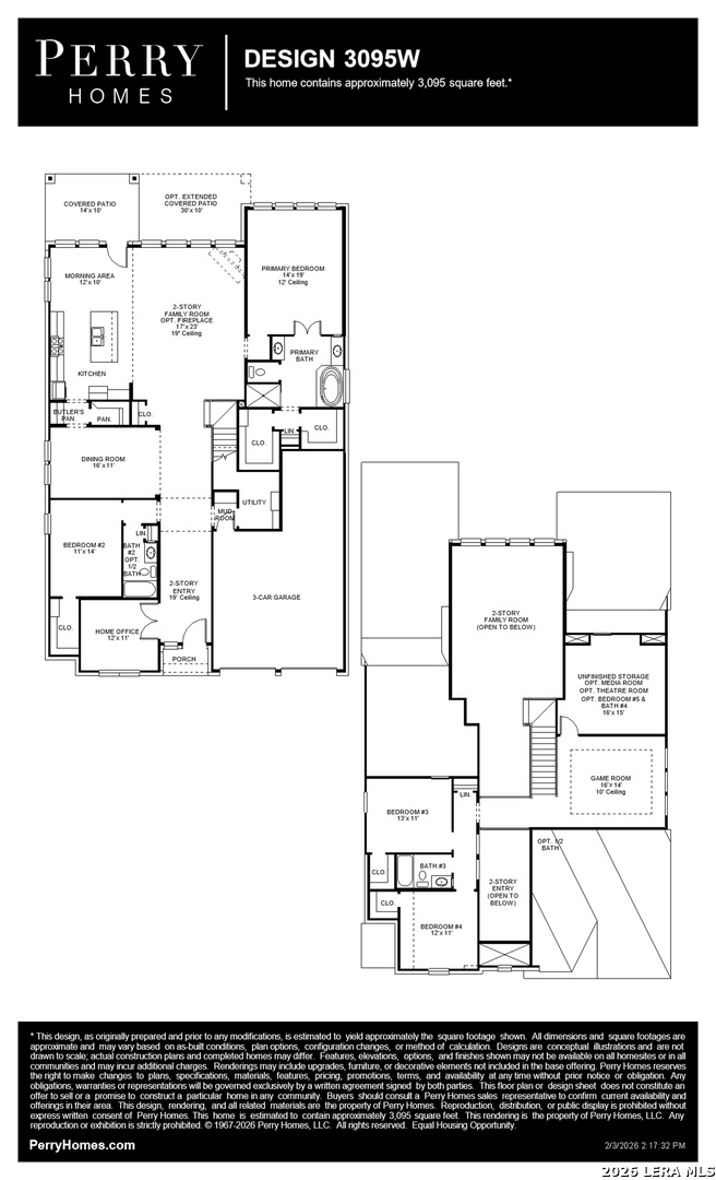 Home office with French doors set at two-story entry. Formal dining room across from staircase. Two-story family room opens to kitchen and morning area. Family room features wall of windows and a wood mantel fireplace. Kitchen features deep walk-in pantry, a 5-burner gas cooktop, butler's pantry and large island with built-in seating space. First-floor primary suite includes bedroom with wall of windows. Double doors lead to primary bath with dual vanities, a freestanding tub, separate glass-enclosed shower and two walk-in closets. An additional bedroom is downstairs. A game room, media room, and secondary bedrooms are upstairs. Extended covered backyard patio. Mud room off three-car garage.