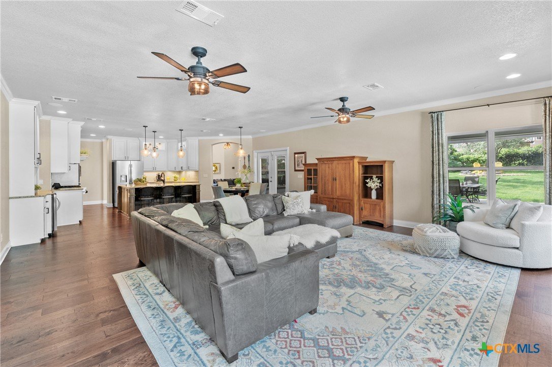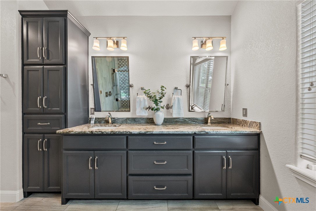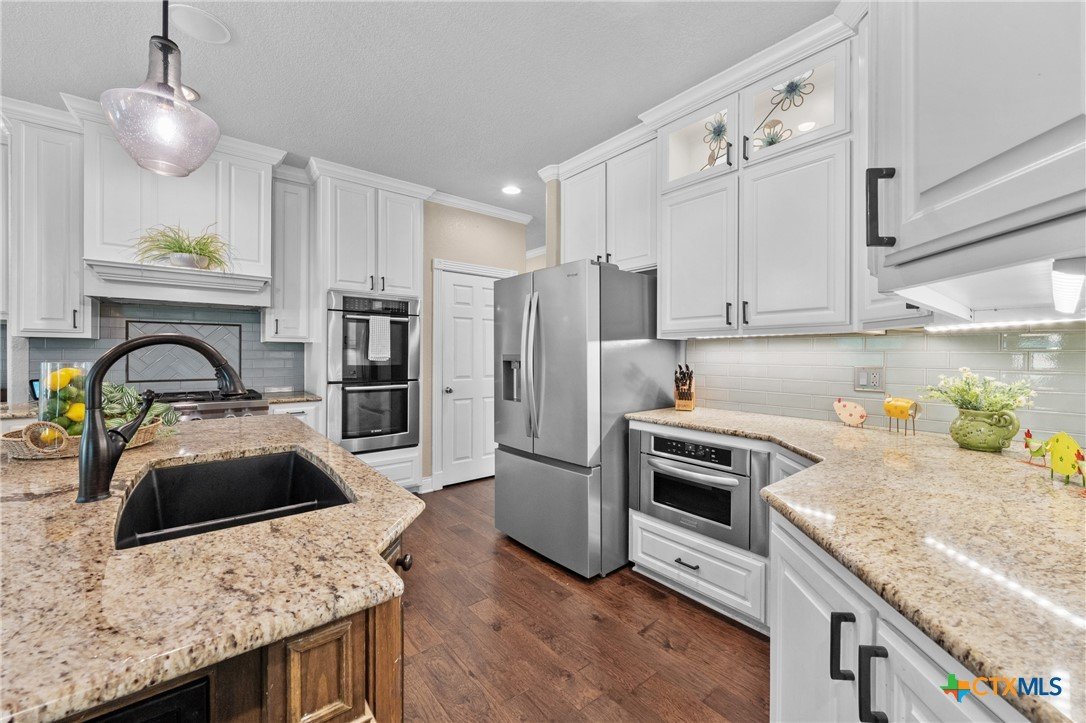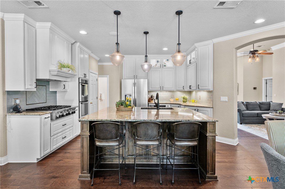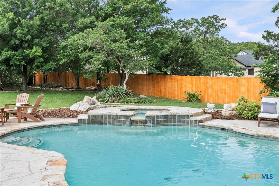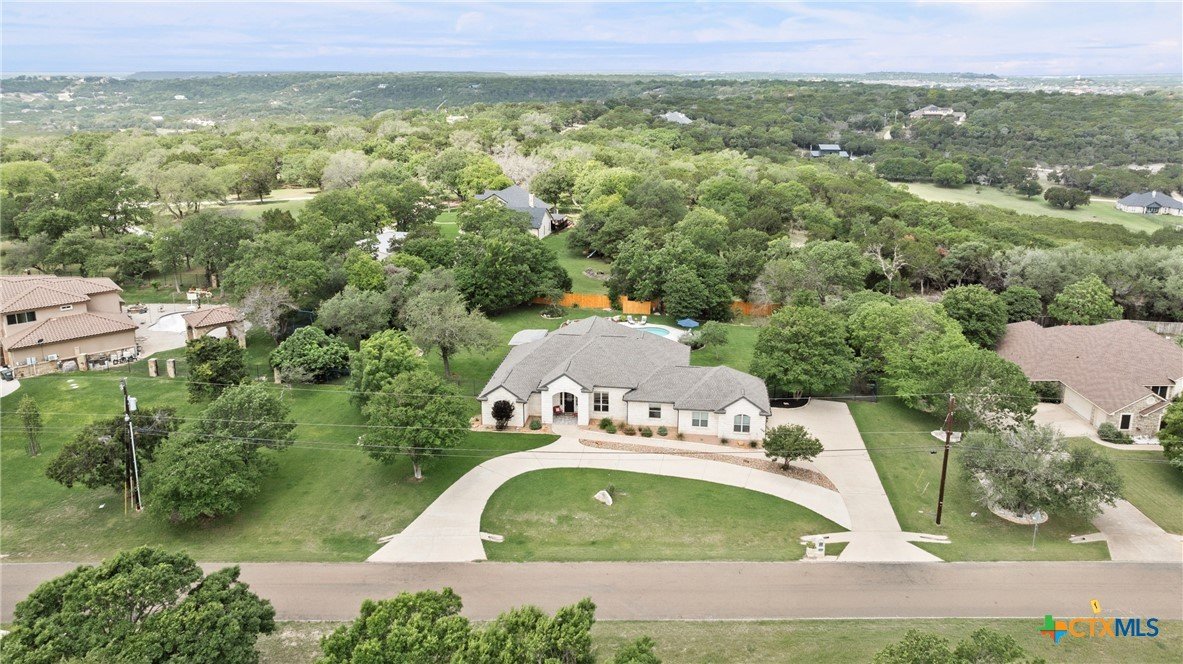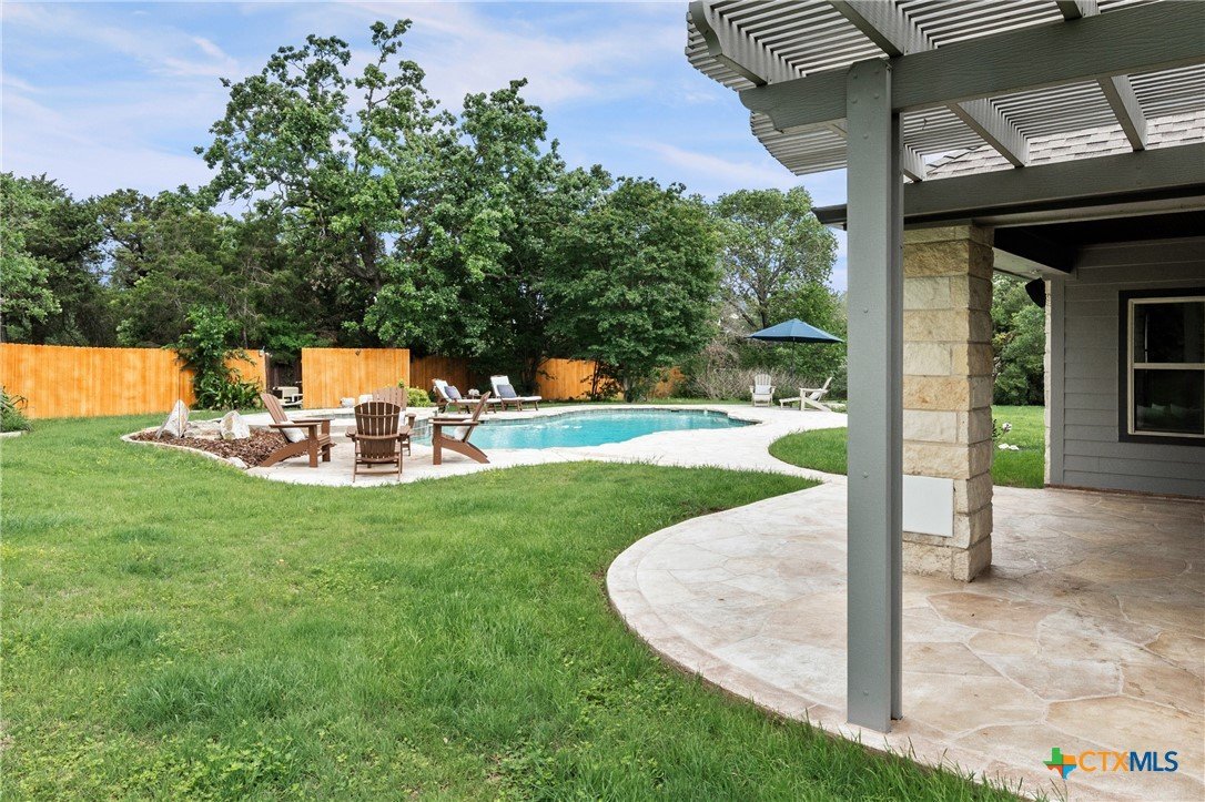 Experience refined living in this luxury 4 bedroom, 3 bathroom estate with over 2,600 square feet in one of the most desirable areas near Stillhouse Hollow Lake. From the moment you arrive, the exceptional curb appeal sets the tone featuring a fully landscaped, lush yard with mature trees and stunning natural stone construction perfectly positioned to capture spectacular lake views right from the front porch. Step inside to a thoughtfully designed open floorplan with two spacious living areas and two dining spaces, ideal for both everyday living and upscale entertaining. A formal dining room provides a sophisticated setting for gatherings. The family room is a true showpiece complete with a gas log fireplace including designer herringbone tile surround overlooking a private backyard oasis. The modern kitchen is loaded with high end upgrades, including a powered island with breakfast bar, granite countertops, double built-in ovens, gas cooktop, and custom lighted cabinetry. Designed for privacy, the split floorplan features a luxurious primary suite with a private sitting area, direct access to the covered patio, and dual walk-in closets. The spa inspired en suite bathroom boasts a walk-in double shower with bench seat, granite topped soaking tub, and dual vanities, creating a true retreat. Three additional generously sized guest bedrooms and two full baths provide comfort and flexibility for family or guests. Step outside to your backyard resort-style escape featuring an extended covered patio, a cozy firepit, and a sparkling pool with spa, perfect for relaxing or entertaining year round. Ideally located just minutes from Dana Peak Park, enjoy easy access to boating, camping, hiking and biking trails, and a family friendly beach area. Plus, a convenient commute to Fort Hood makes this home as practical as it is luxurious. This is more than a home. It’s a lifestyle property offering space, upgrades, lake views, and high end finishes in a prime Central Texas location.