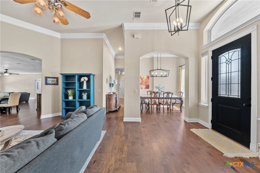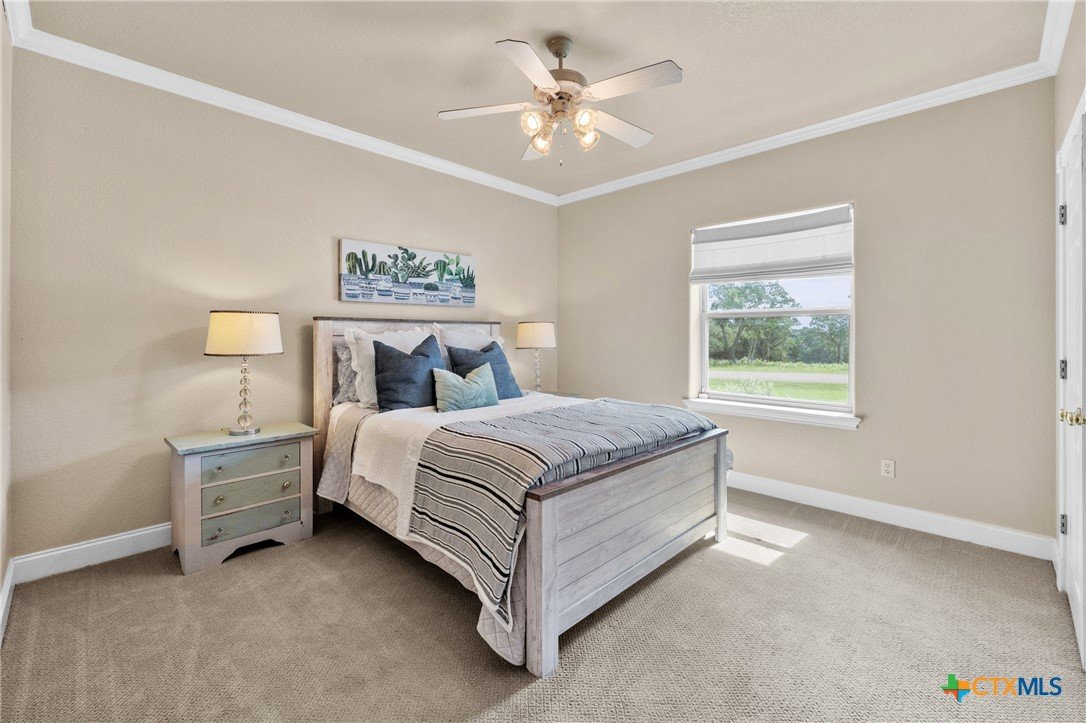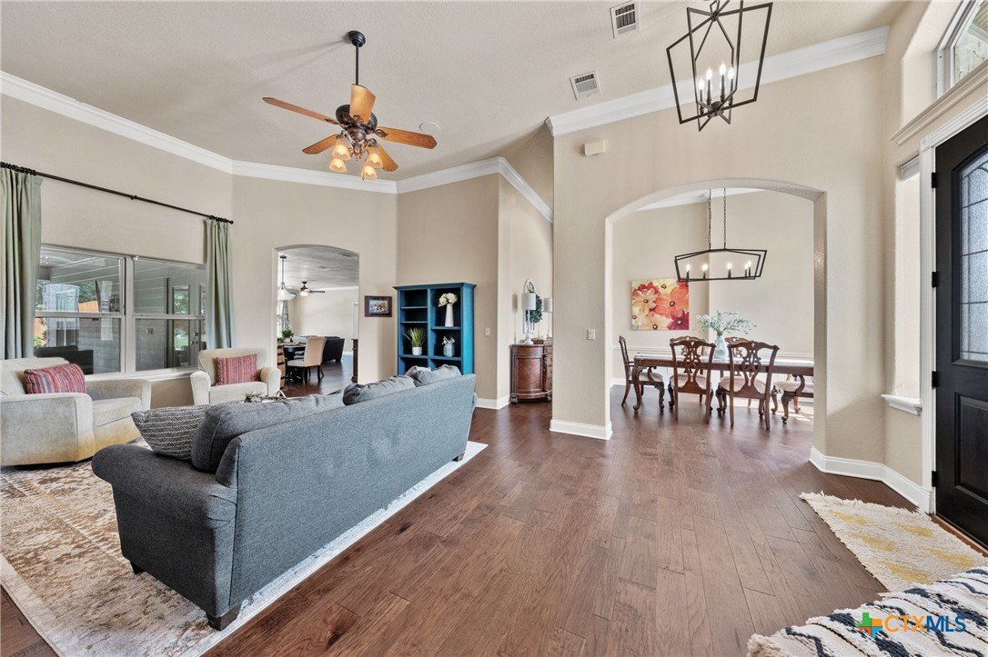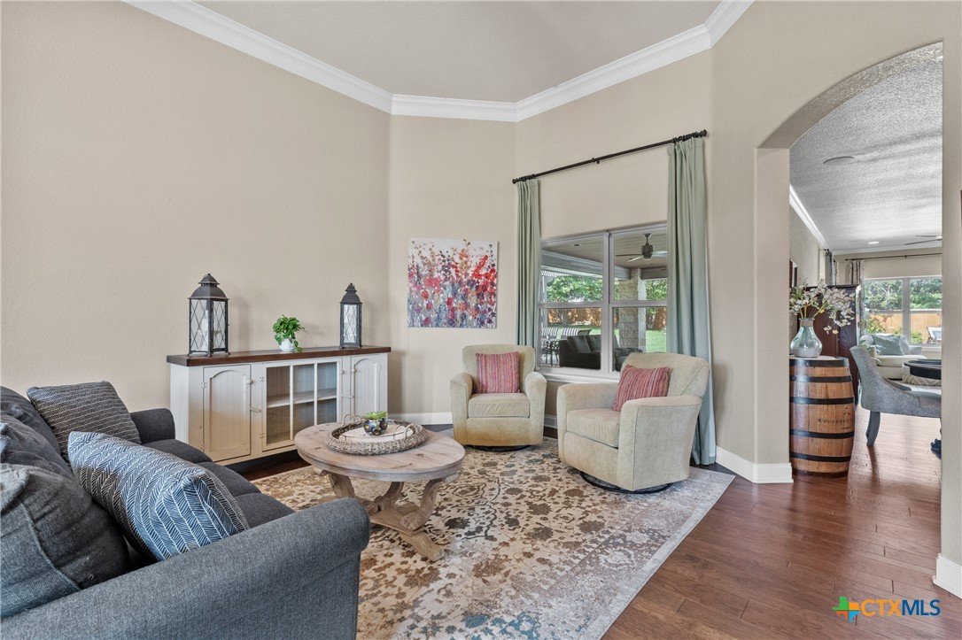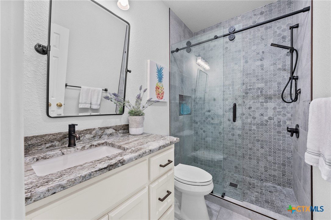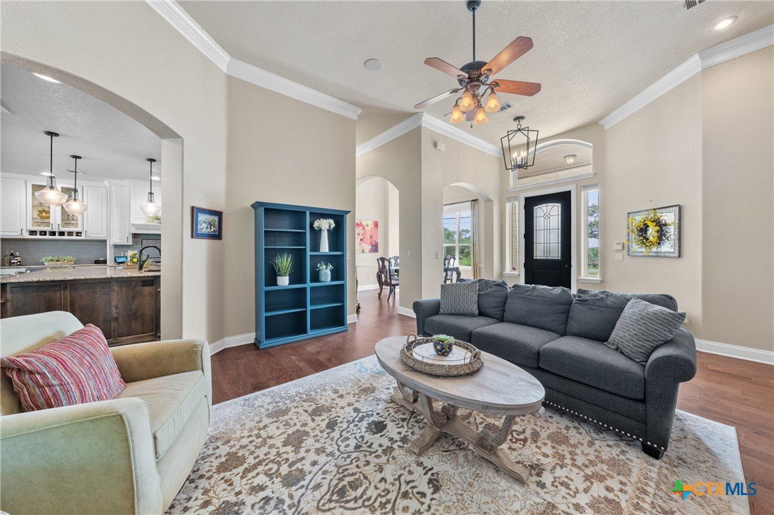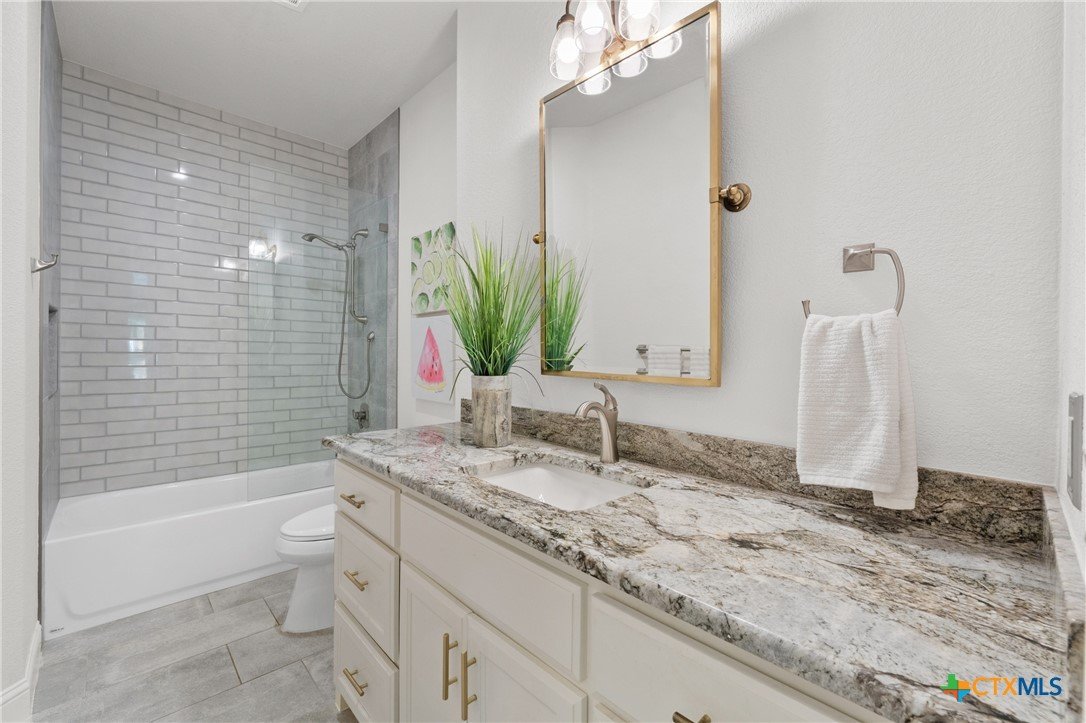Experience refined living in this luxury 4 bedroom, 3 bathroom estate with over 2,600 square feet in one of the most desirable areas near Stillhouse Hollow Lake. From the moment you arrive, the exceptional curb appeal sets the tone featuring a fully landscaped, lush yard with mature trees and stunning natural stone construction perfectly positioned to capture spectacular lake views right from the front porch. Step inside to a thoughtfully designed open floorplan with two spacious living areas and two dining spaces, ideal for both everyday living and upscale entertaining. A formal dining room provides a sophisticated setting for gatherings. The family room is a true showpiece complete with a gas log fireplace including designer herringbone tile surround overlooking a private backyard oasis. The modern kitchen is loaded with high end upgrades, including a powered island with breakfast bar, granite countertops, double built-in ovens, gas cooktop, and custom lighted cabinetry. Designed for privacy, the split floorplan features a luxurious primary suite with a private sitting area, direct access to the covered patio, and dual walk-in closets. The spa inspired en suite bathroom boasts a walk-in double shower with bench seat, granite topped soaking tub, and dual vanities, creating a true retreat. Three additional generously sized guest bedrooms and two full baths provide comfort and flexibility for family or guests. Step outside to your backyard resort-style escape featuring an extended covered patio, a cozy firepit, and a sparkling pool with spa, perfect for relaxing or entertaining year round. Ideally located just minutes from Dana Peak Park, enjoy easy access to boating, camping, hiking and biking trails, and a family friendly beach area. Plus, a convenient commute to Fort Hood makes this home as practical as it is luxurious. This is more than a home. It’s a lifestyle property offering space, upgrades, lake views, and high end finishes in a prime Central Texas location.