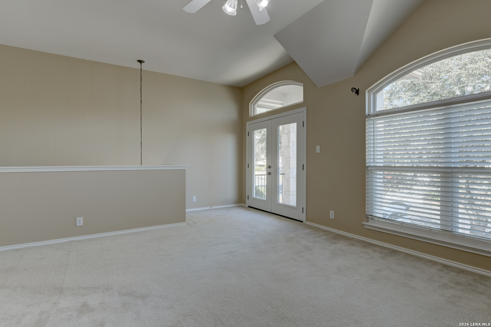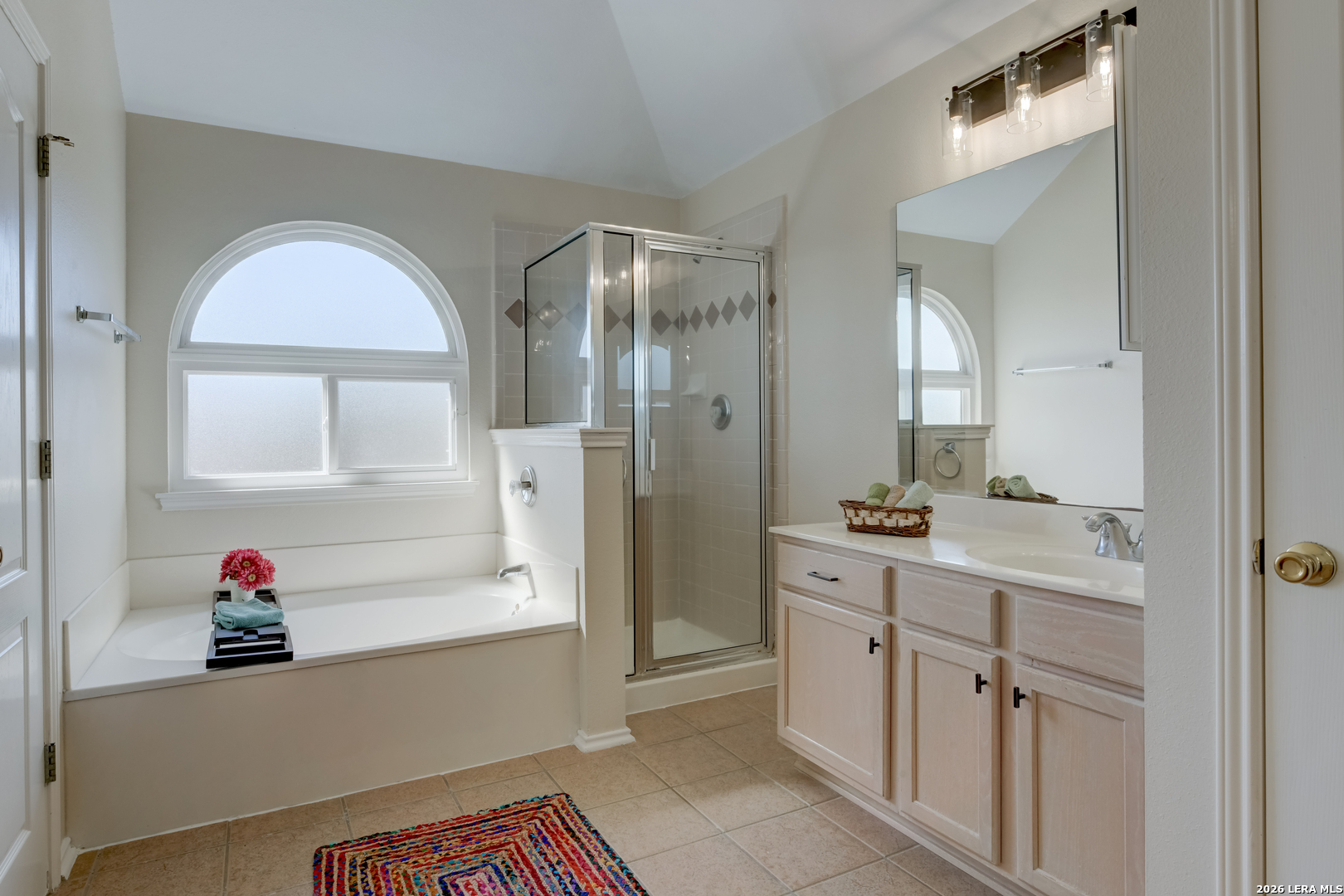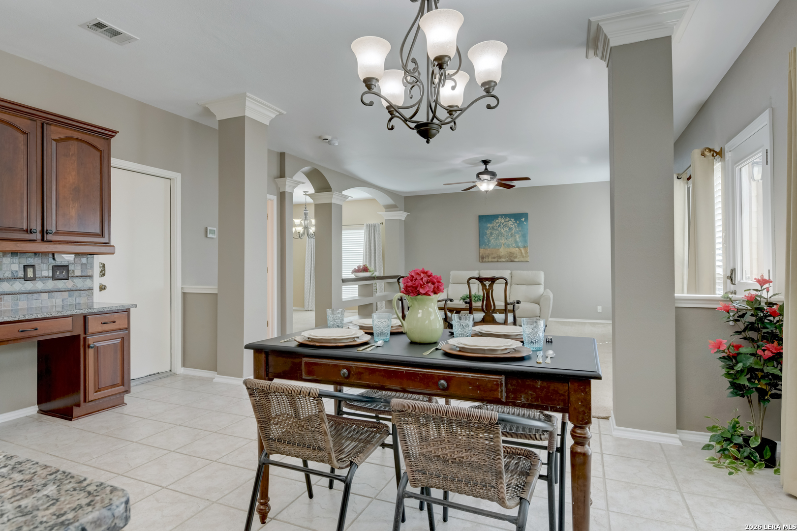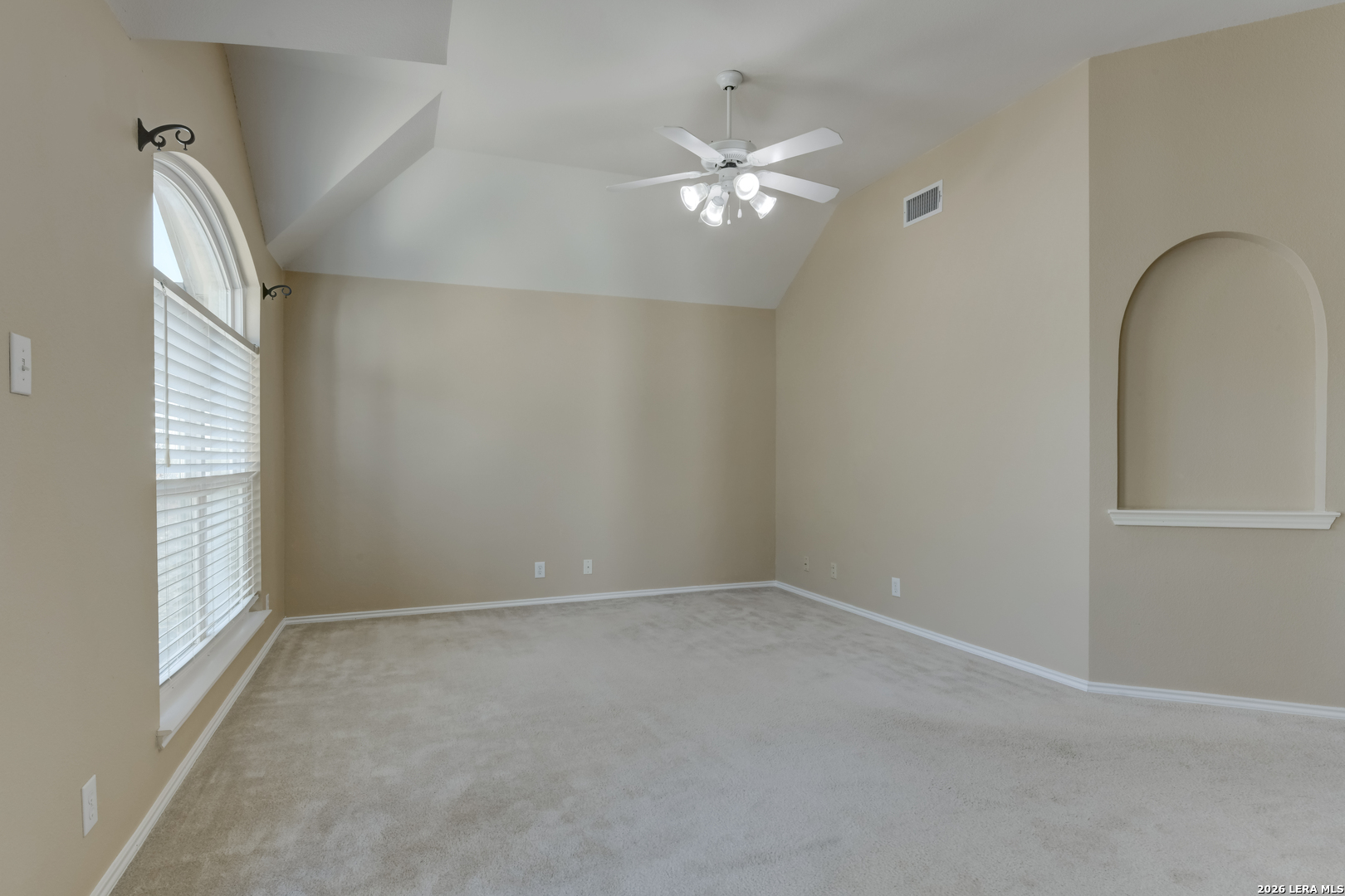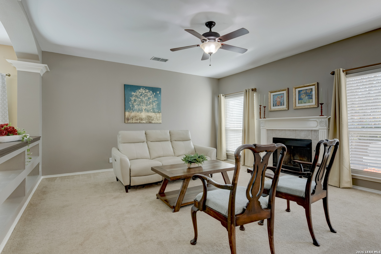 This beautiful, move-in-ready home is located in the gated community of Rosewood Gardens in the highly desired Churchill area in N. E. San Antonio. This well-built 3-bedroom, 2.5-bath home features an airy and open layout with two living areas, elevated ceilings, fresh paint, and a spacious upstairs loft and huge 18 by 20 ft. owners suite with a Juliet balcony-perfect for an office or game room or just a place to relax. The kitchen offers granite counters, a large island, reverse osmosis system, and all new appliances, plus the refrigerator, washer, and dryer convey. This house is move in ready! Enjoy a cul-de-sac lot with extended driveway and a spacious two car garage. Behind the home is a metal covered patio ideal for relaxing, grilling and entertaining. Private gated access to the elementary school is just a short walk away, with shopping and dining nearby. Perfect for military families or anyone seeking a secure, low-maintenance lifestyle in a prime NE San Antonio location. Priced to move and impress -schedule your showing today!