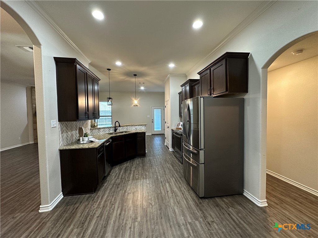 MAJOR PRICE REDUCTION. MOTIVATED SELLER FOR SURE. Step into elegance with this stunning 4 bedroom, 2 bathroom home featuring 10 foot ceilings, crown molding throughout, and a show stopping floor to ceiling stone fireplace. The spacious layout includes two dining areas and a huge master suite with a luxurious master shower boasting three shower heads and an oversized walk in closet. The kitchen is a true highlight, showcasing a herringbone backsplash, brand new range, and all GE appliances and a view that opens beautifully into the living area for family time. This property will convey the beautiful stainless steel Samsung french door refrigerator. Extras include an oversized 2 car garage and partially decked attic for storage and blown insulation with ductwork suspended, sprinkler system, solar screens, fully landscaped yard, and brick and stone exterior that enhances its curb appeal. This property is packed with thoughtful upgrades and stylish finishes- don’t miss your chance to Own this magnificent home in Troy Texas. Come See It Today.Call me now to schedule. THIS HOME IS A MUST SEE.