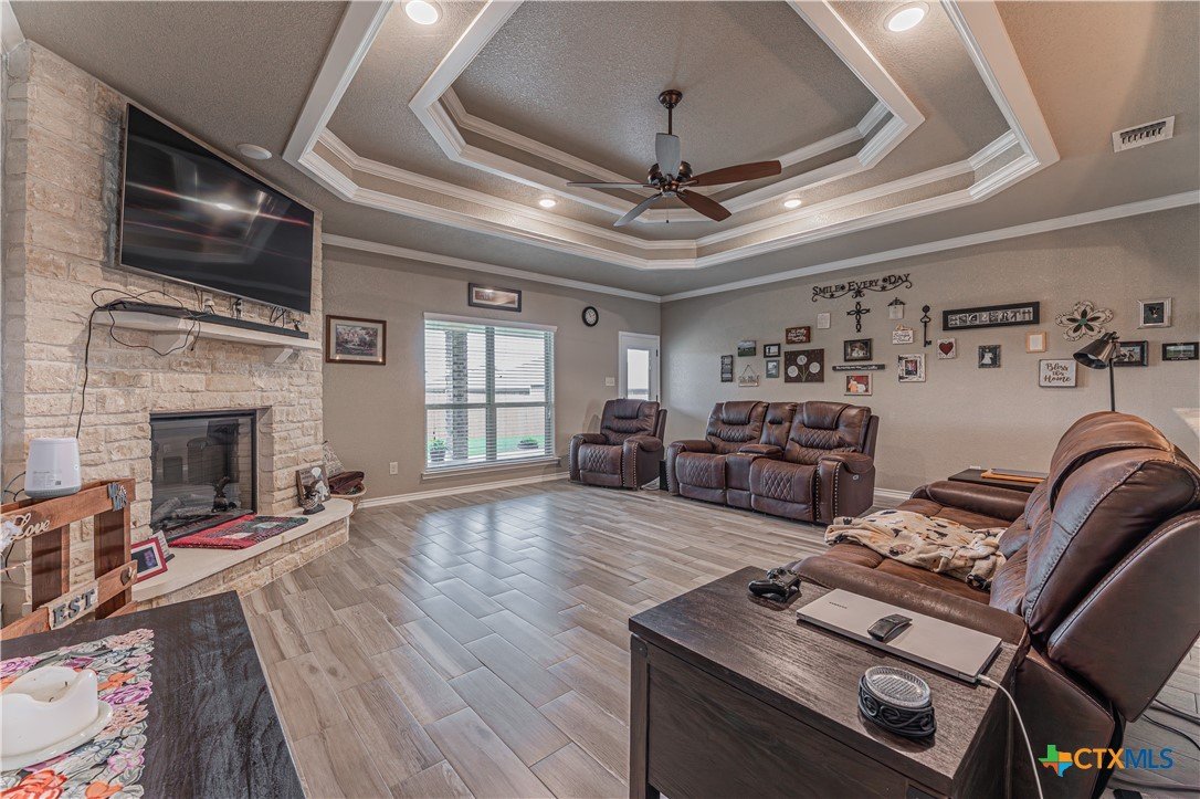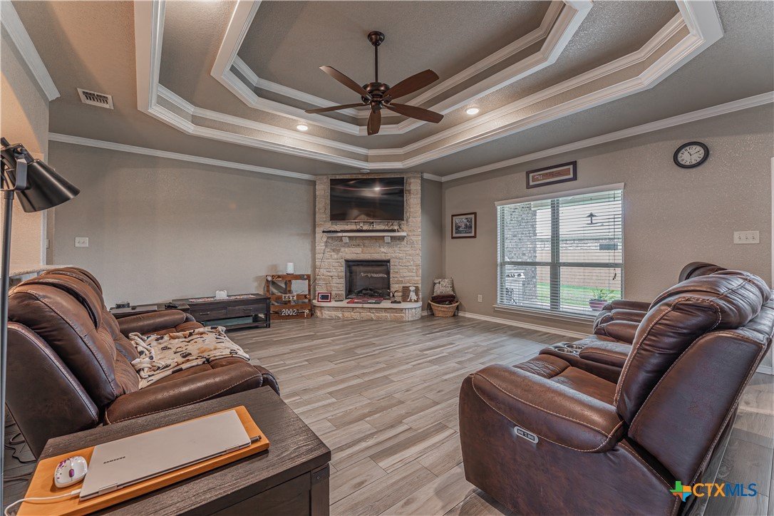 Are you looking for a 2344 sq foot, Semi Custom 4 Bedroom, 2.5 Bath Home. If so, sechedule an appointment today to see this beautifully maintained all-brick home offering a perfect blend of style and functionality. The spacious kitchen features custom cabinets, a center island, and stainless steel appliances, seamlessly flowing into the formal dining area—ideal for entertaining. The primary suite boasts a custom bathroom with a jetted tub, open shower, and a walk-in closet, while the second bathroom includes a convenient shower/tub combo. Relax by the cozy fireplace in the inviting living space, or enjoy outdoor living under the covered patio in your private, fenced backyard with lush landscaping and colorful flower beds. Additional highlights include a 3-car garage, half bath, epoxy coating on garage, driveway and patio floors, and ample storage throughout. Experience comfort, elegance, and thoughtful upgrades in this move-in-ready home!