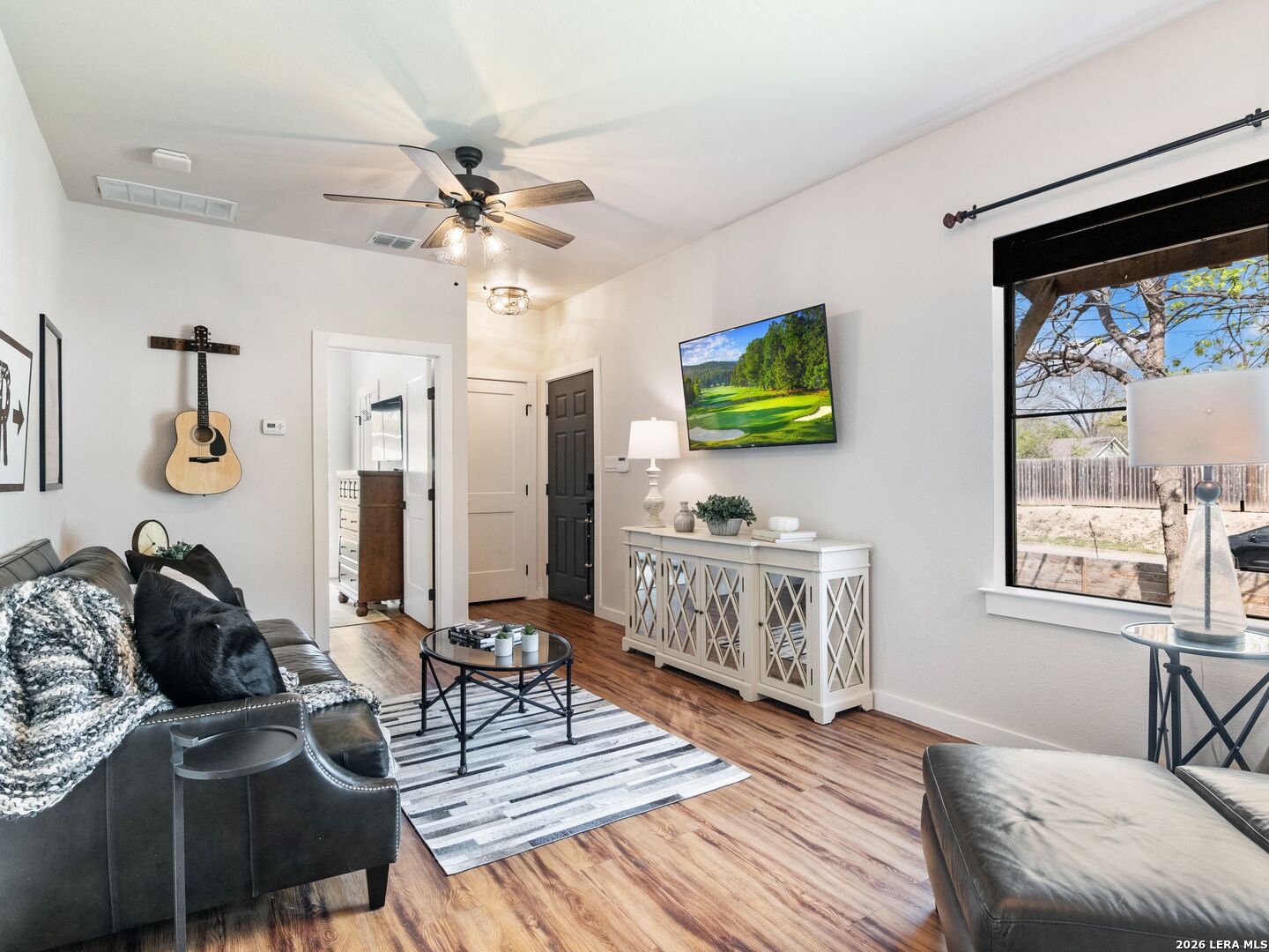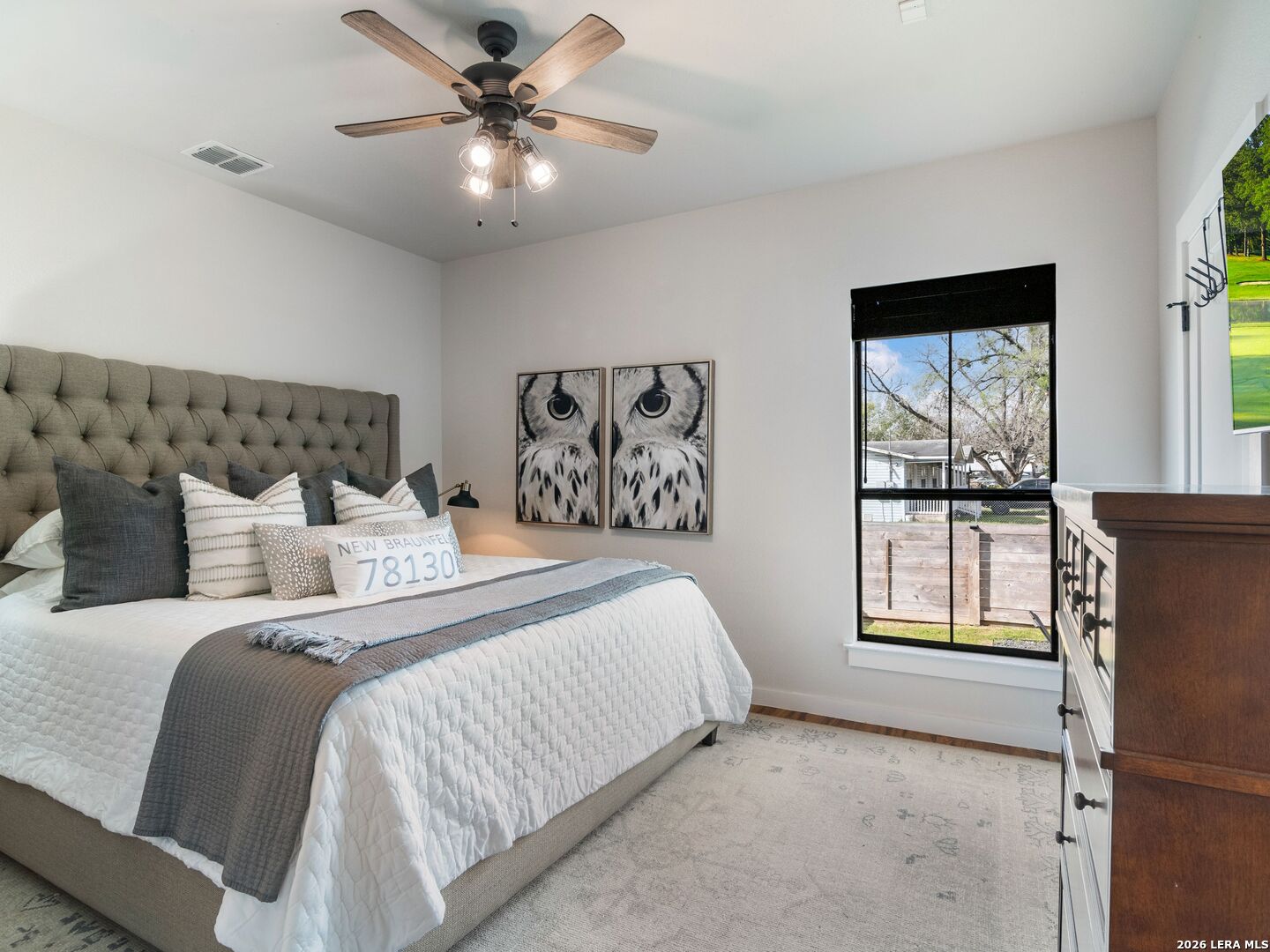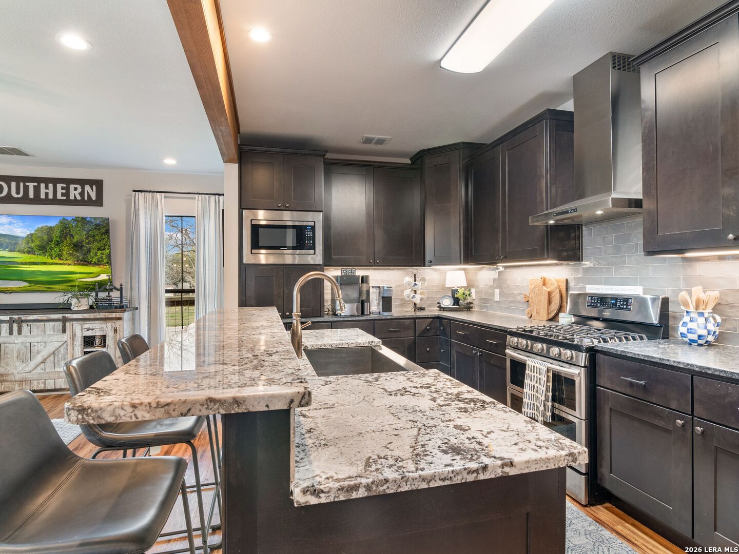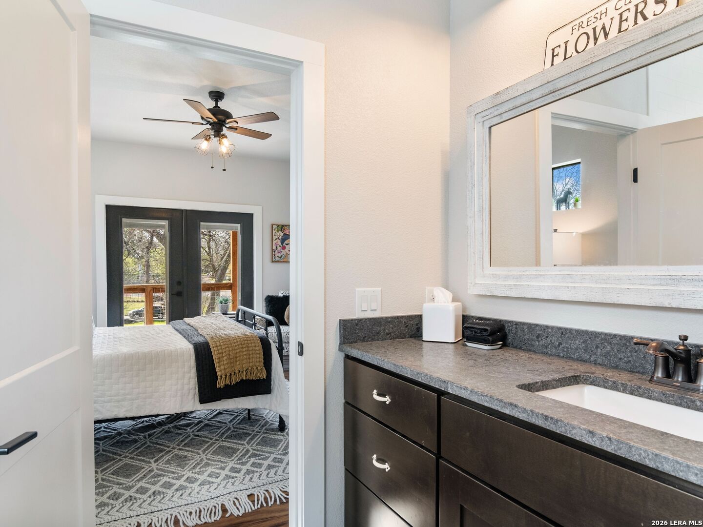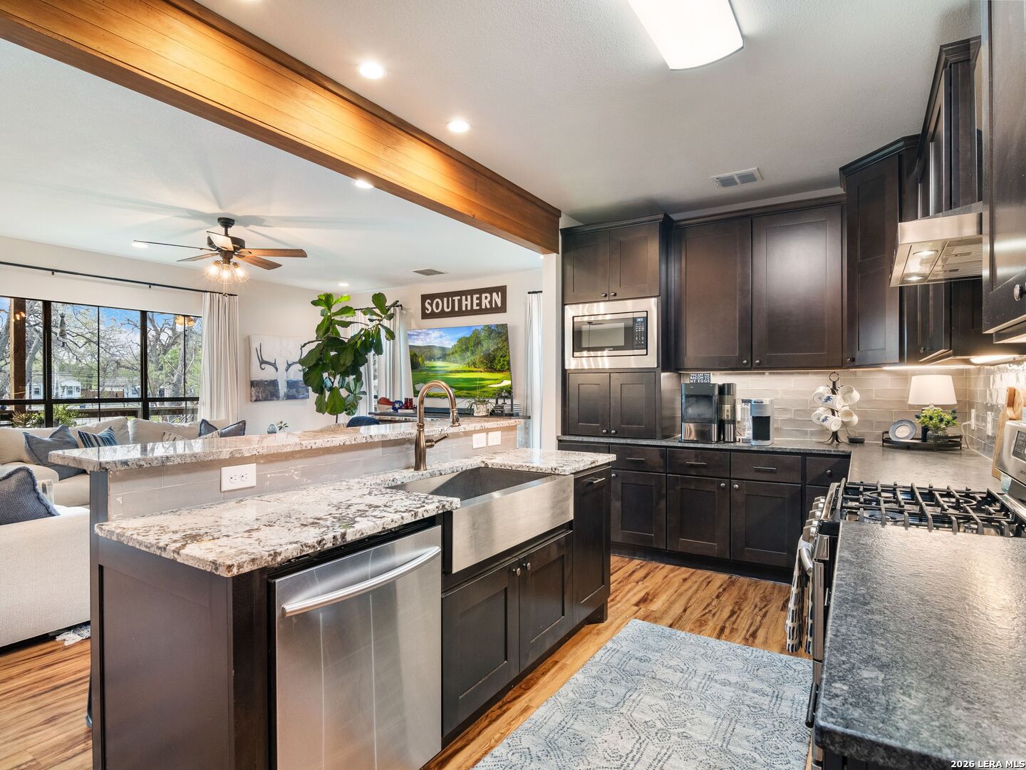 Live, Work & Entertain in Style - Downtown New Braunfels. Experience elevated downtown living in this modern luxury home, just minutes from the heart of New Braunfels. Walk, bike, or take a quick golf cart ride to the river, local hotspots, restaurants, bars, and the vibrant town square-perfect for an active, social lifestyle. Designed with both comfort and functionality in mind, this home features high-end finishes throughout and multiple indoor-outdoor living spaces, including two covered patios-ideal for hosting friends or unwinding after work. There is even a sprinkler system! The chef-inspired kitchen is the centerpiece of the home, complete with gas cooking, granite countertops, custom soft-close cabinetry, a farmhouse sink, double ovens, beverage fridge, spacious pantry, and a breakfast bar-perfect for casual mornings or entertaining nights in. Need space to work from home or generate extra income? This property offers a rare, fully equipped guest suite/apartment with its own private entrance, fenced yard, kitchen, bathroom, bedroom, and in-unit laundry. Connected by a breezeway that doubles as an ideal home office or creative studio, it's perfect for remote professionals, rental income, or hosting guests. Upstairs, you'll find two private bedrooms, each with its own en-suite bathroom, including a spacious primary retreat with its own covered patio-your personal escape. Additional highlights include an Open-concept living and oversized dining area for entertaining. Dedicated laundry room + half bath on main floor. One-car garage + additional driveway parking. Whether you're hosting, working remotely, or enjoying everything downtown has to offer, this home delivers the perfect blend of luxury, flexibility, and lifestyle.