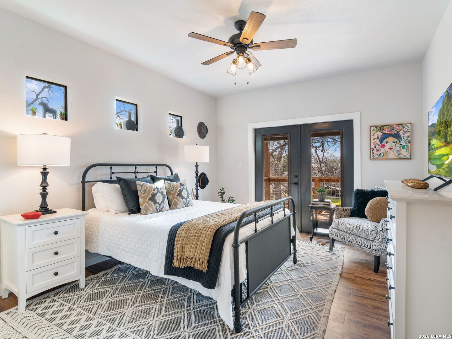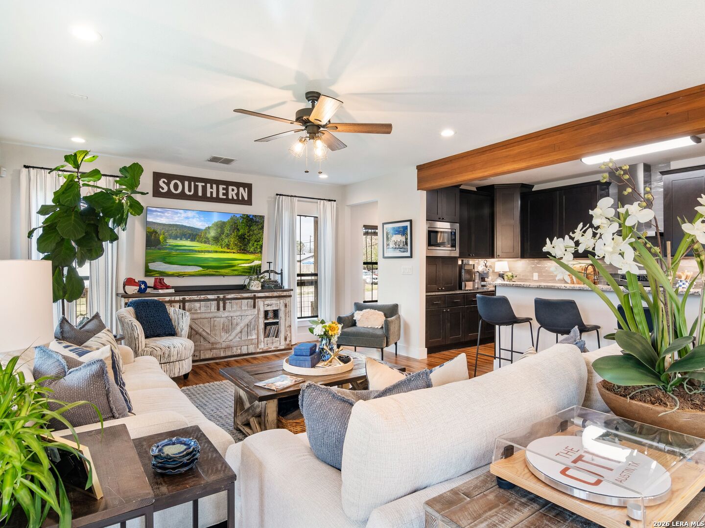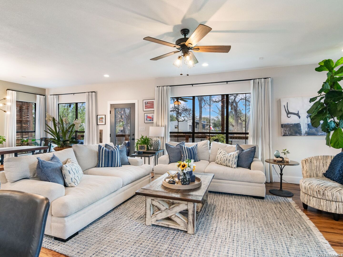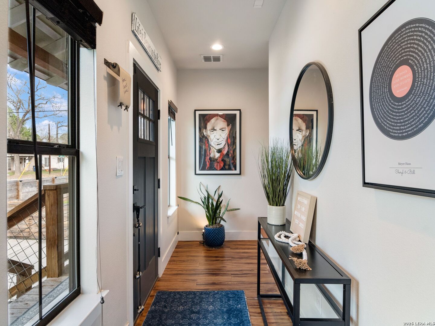 Live, Work & Entertain in Style - Downtown New Braunfels. Experience elevated downtown living in this modern luxury home, just minutes from the heart of New Braunfels. Walk, bike, or take a quick golf cart ride to the river, local hotspots, restaurants, bars, and the vibrant town square-perfect for an active, social lifestyle. Designed with both comfort and functionality in mind, this home features high-end finishes throughout and multiple indoor-outdoor living spaces, including two covered patios-ideal for hosting friends or unwinding after work. There is even a sprinkler system! The chef-inspired kitchen is the centerpiece of the home, complete with gas cooking, granite countertops, custom soft-close cabinetry, a farmhouse sink, double ovens, beverage fridge, spacious pantry, and a breakfast bar-perfect for casual mornings or entertaining nights in. Need space to work from home or generate extra income? This property offers a rare, fully equipped guest suite/apartment with its own private entrance, fenced yard, kitchen, bathroom, bedroom, and in-unit laundry. Connected by a breezeway that doubles as an ideal home office or creative studio, it's perfect for remote professionals, rental income, or hosting guests. Upstairs, you'll find two private bedrooms, each with its own en-suite bathroom, including a spacious primary retreat with its own covered patio-your personal escape. Additional highlights include an Open-concept living and oversized dining area for entertaining. Dedicated laundry room + half bath on main floor. One-car garage + additional driveway parking. Whether you're hosting, working remotely, or enjoying everything downtown has to offer, this home delivers the perfect blend of luxury, flexibility, and lifestyle.