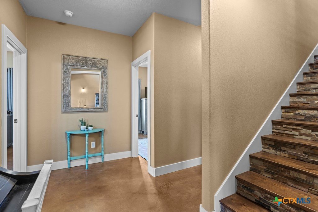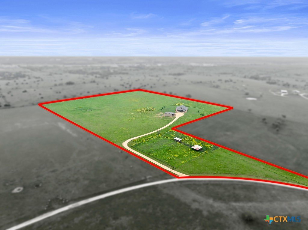 This stunning 5-bedroom, 4.5-bathroom home offers an open-concept floor plan that seamlessly connects the kitchen, dining, and living areas. Highlights include soaring cathedral ceilings, an expansive walk-in shower, open loft spaces, a built-in safe room, and beautiful ponderosa pine flooring upstairs. Ample storage is available throughout with multiple large closets and additional attic decking. Enjoy the outdoors from the spacious wraparound covered porch, or take advantage of the 21+/- acres perfectly suited for livestock and horses. The well-designed livestock barn is spray-foam insulated and features hot water, a built-in sink with cabinetry, and convenient roll-up doors. With 25x30 and 40x15 rooms make it ideal for ag projects of all kinds. The front of the property is cross-fenced with loafing sheds, making it an excellent setup for horses. Conveniently located to IH35 and Salado ISD.