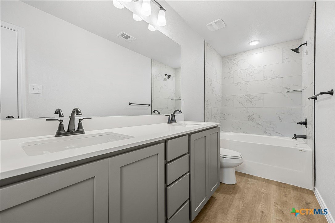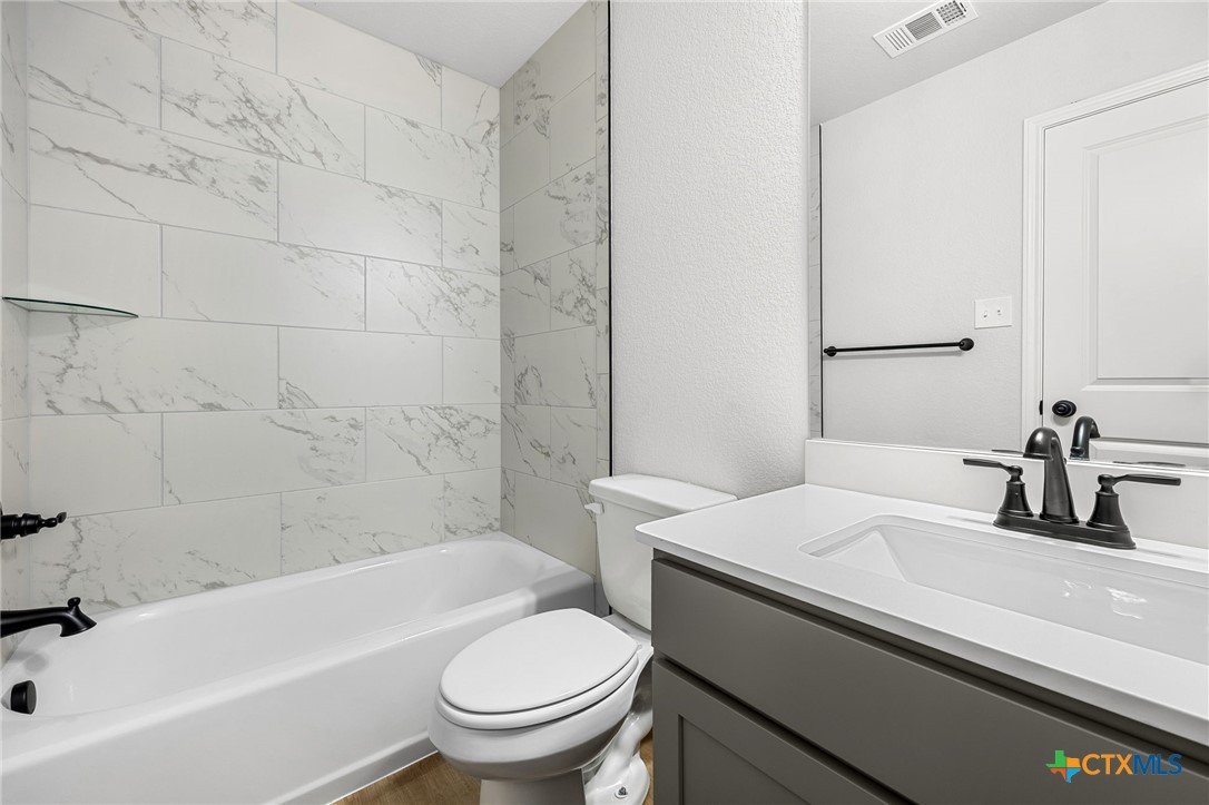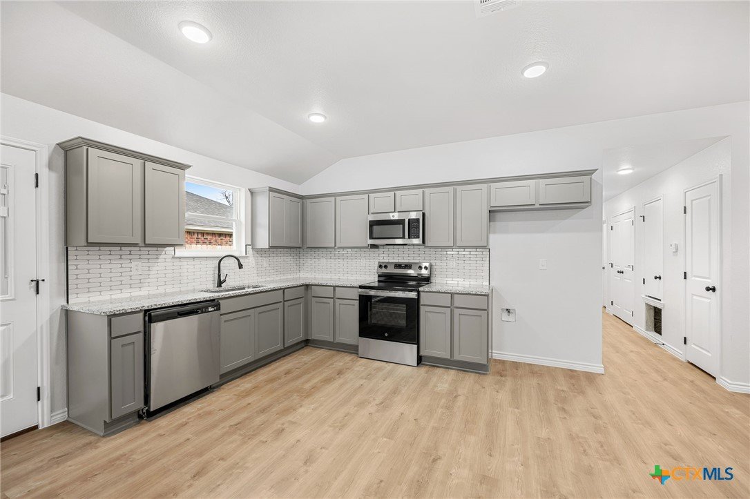 Welcome to this stunning brand-new duplex offering 3 spacious bedrooms, 2 full baths, and a 1-car garage, all thoughtfully designed across an impressive 2,746 square feet. This home showcases beautiful LVP flooring throughout and granite countertops that elevate the modern aesthetic. The kitchen features stylish shaker-style soft-close cabinetry, stainless steel appliances including a refrigerator, tile backsplash, and sleek LED lighting. Both bathrooms are finished with tiled showers, providing a clean and contemporary feel. The primary suite is complete with a walk-in closet and a large custom built-in closet for exceptional storage and organization. With quality finishes, modern design, and energy-efficient lighting throughout, this duplex offers the perfect blend of functionality and comfortability. Ideal for homeowners or investors seeking new construction with premium features.Close to Fort Hood, shopping and restaurants amenities as well as I-14. Preferred lender could get you interest rates as low as 4%.