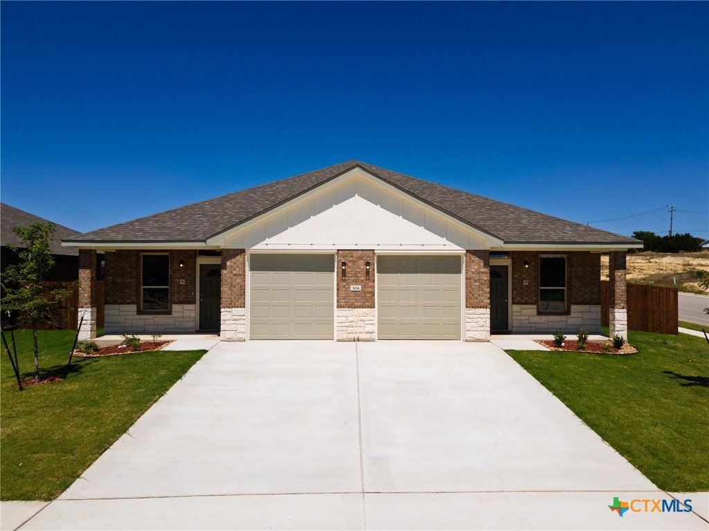 Luxury duplexes have quickly become the most affordable way of living. These are not your basic duplexes, these have all the best features/upgrades to make it feel more like home. Perfect for yourself or your tenants. Rent both side or one and let it pay for itself. This lifestyle allows you to be a home owner with less maintenance and generate income. This brand new subdivision in Copperas Cove is far enough away to enjoy peace and quiet but still close to everything you need to Include Fort Cavasas! The exterior of this home will feature brick, stone, Full yard sod, wood privacy fence and sprinklers. Inside you will find high ceiling, trendy paint colors, top of the line fixtures & finishes , vinyl plank flooring through-out (no carpet), Wood faux Blinds, Granite in the kitchens and both bathroom, tile backsplash, stainless steel stove, microwave and dishwasher. Each side has three great size bedrooms, the main bedroom has it own bathroom, with a large walk in shower & walk in closet. Don’t miss out on these great investments.