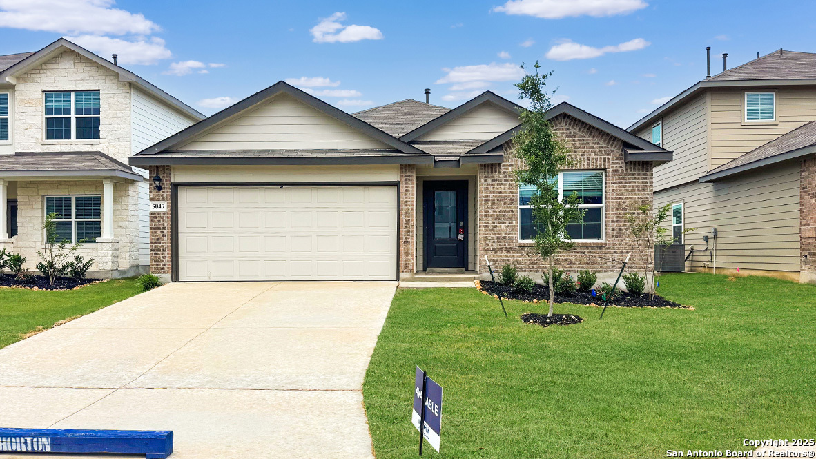 The Bryant is a single-story, 1703 square foot, 4-bedroom, 2 bathroom, layout designed to provide you with spacious, open concept living. Welcome guests as they walk through the elongated foyer with decorative nook to the spacious eat-in kitchen. Facing the family room area, the kitchen includes an oversized island, corner pantry with shelving, plenty of cabinet storage, granite countertops, stylish subway tile backsplash, stainless steel appliances, and electric cooking range. The private main bedroom is located at the back of the house and features a relaxing ensuite complete with double vanities, separate tub and walk-in shower, water closet, and spacious walk-in closet. One secondary bedroom is located off the entry and is ideal for an office space. The remaining secondary bedrooms and second full bath are centrally located off the kitchen, and a spacious utility room is conveniently located adjacent to the family room. Additional features include tall 9-foot ceilings, 2-inch faux wood blinds throughout the home, luxury vinyl plank flooring in the entry, family room, kitchen, and dining area, ceramic tile in the bathrooms and utility room, and pre-plumb for water softener loop. You'll enjoy added security in your new home with our Home is Connected features. Using one central hub that talks to all the devices in your home, you can control the lights, thermostat and locks, all from your cellular device. Relax outside on a covered patio (per plan) located off the family room and enjoy full yard landscaping and full yard irrigation.