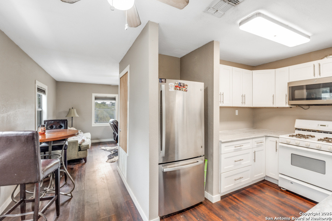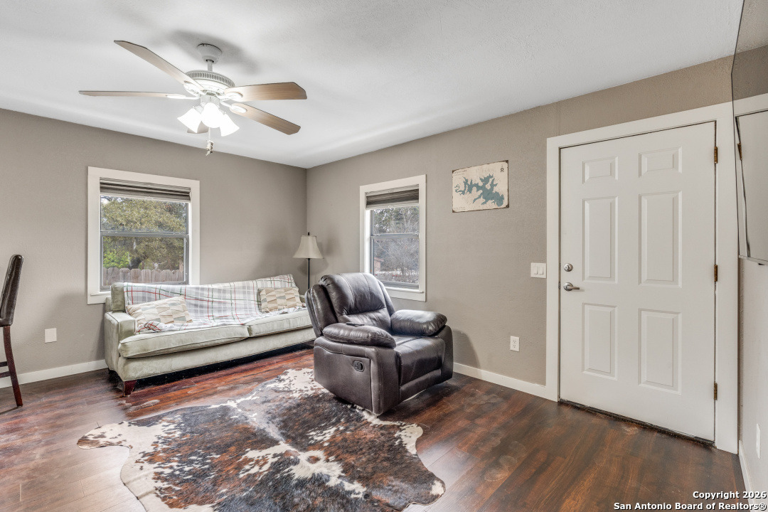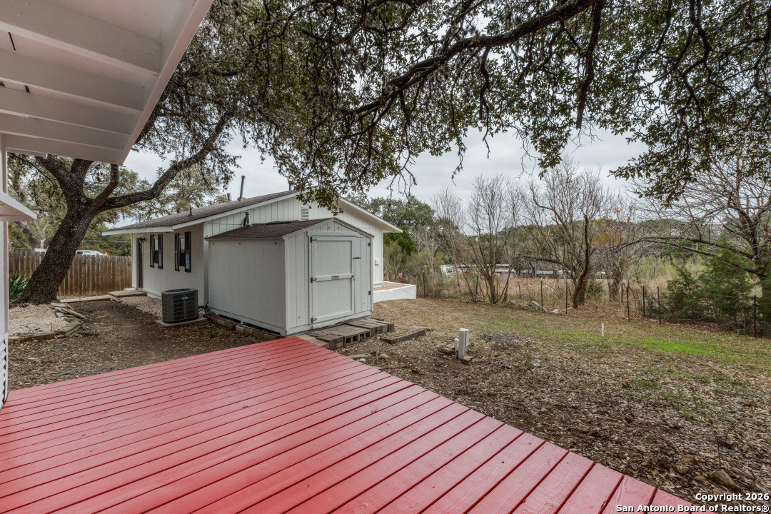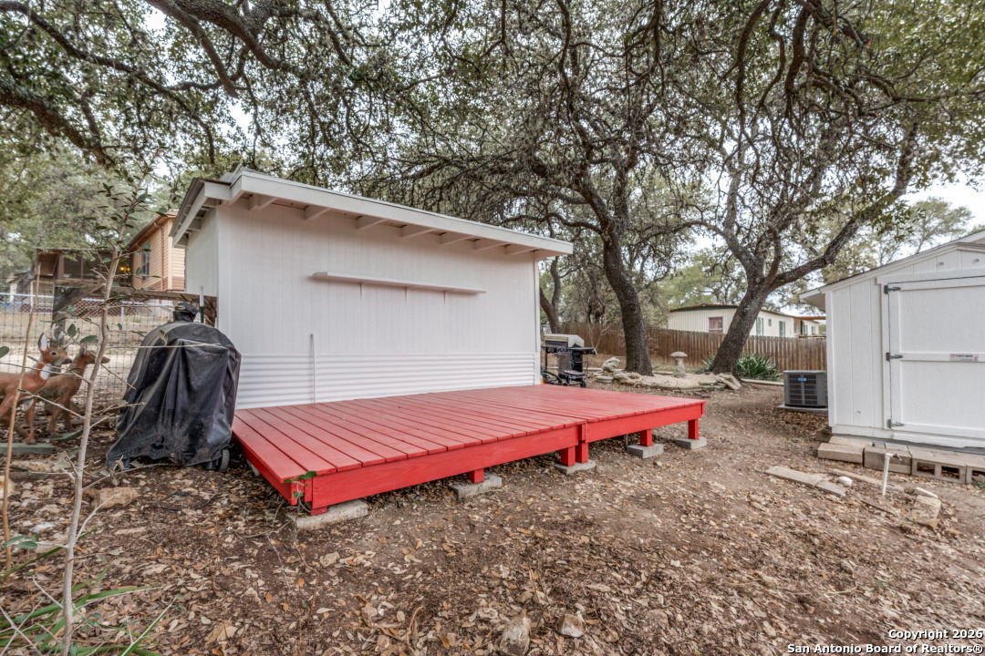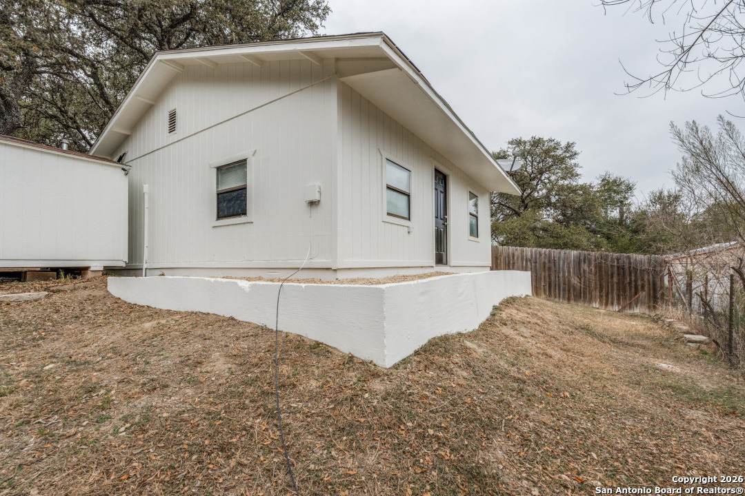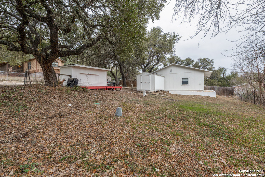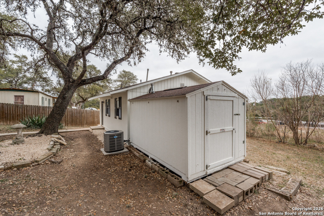 Park your boat, your Canyon Lake cottage awaits! This adorable 1 bedroom 1 bathroom cottage, which sits on a slab foundation, is ready for a new owner. The bright white kitchen features white shaker style cabinets, gas appliances, and granite countertops. Enjoy meals in the quaint nook or walk into the living room with laminate floors and plenty of space. The inside utility room is just outside of the primary bathroom which showcases a large modern walk in shower, heated toilet with bidet and an adorable window for natural light. And your toys dont have to be stored else where as this property features not 1 but 2 storage buildings. Close to Canyon lake, boat ramps, parks, restaurants and shopping, you're close enough to everything and but far enough for a private getaway. The owner has previously used the property as an AirBnB.
