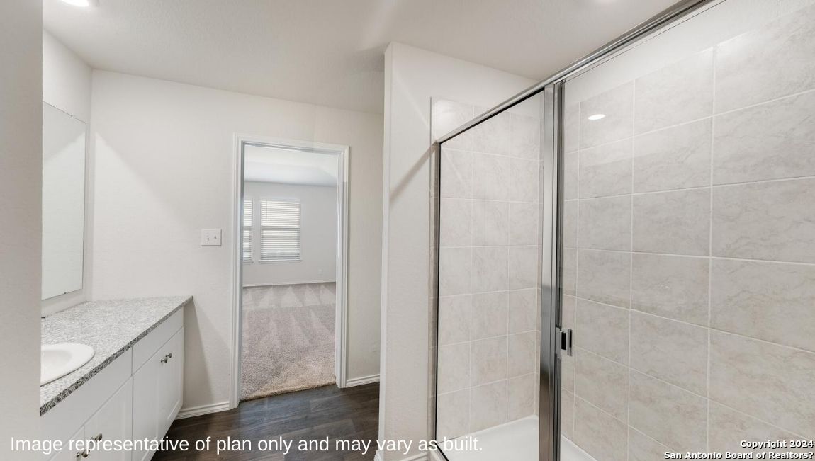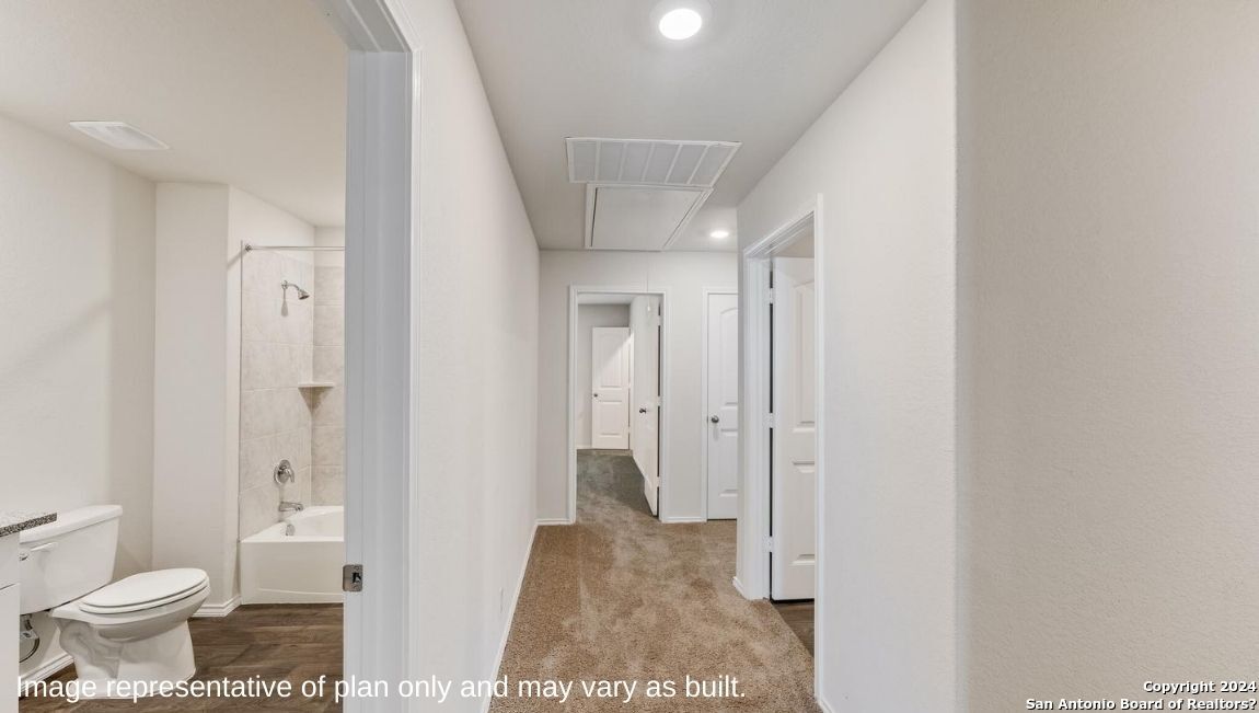Step into The Grace floor plan in Langdon in San Antonio, TX. This home showcases 2 classic front exteriors, full yard landscaping and irrigation and a 2-car garage. Inside this 4 bedroom, 2.5 bathroom home, you will find 1952 square feet of living space designed to meet your needs. The arched front patio opens to a grand foyer which then leads to a spacious living room. The living room blends seamlessly into the kitchen and dining area in an open concept floorplan. Your kitchen is built for the ultimate home chef and offers quartz counter tops, stainless steel appliances, and a kitchen island overlooking the living room. Don't forget a deep, single basin kitchen sink for convenience and ease. The staircase leads to the upstairs main bedroom suite, all secondary bedrooms, and your utility room. The Grace floor plan is ideal if you want to keep your entertaining space and private space separate. The upstairs main bedroom has an attached bathroom that includes a tiled walk-in shower, separate water closet and plenty of storage space with built-in shelving and a grand walk-in closet. Additional features of this home include sheet vinyl flooring in the entry, living room, and all wet areas, quartz countertops in all bathrooms and our HOME IS CONNECTED base package. Using one central hub that talks to all the devices in your home, you can control the lights, thermostat and locks, all from your cellular device.