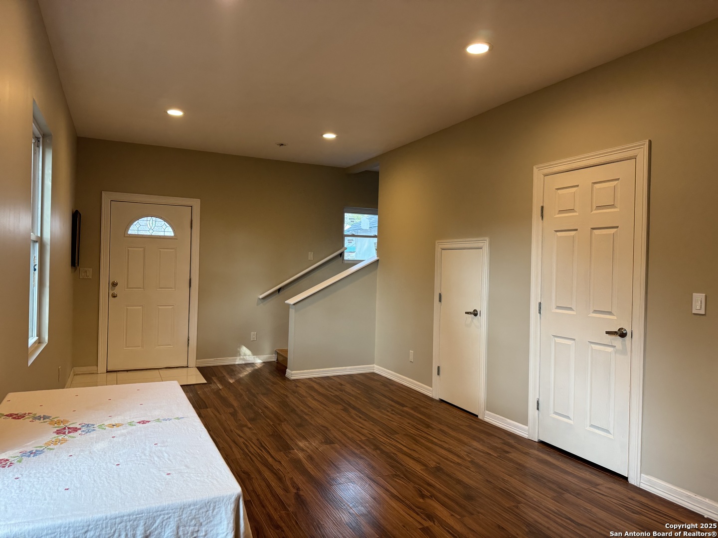 Beautifully Updated Home - Priced at Only $100,000 This recently updated home offers exceptional value with a modern open floor plan and the reliability of a slab foundation. With a potential monthly payment likely lower than typical rent, it presents an excellent opportunity for both first-time buyers and investors. The main floor features an inviting living area that flows seamlessly into the updated kitchen with a comfortable dining space, as well as a convenient half bath. Upstairs, the air-conditioned primary bedroom is separated by double doors from a large adjoining sitting room that can easily serve as a nursery, office, guest space, or even a spacious walk-in closet. Additional highlights include low-maintenance concrete off-street parking and a location just minutes from downtown San Antonio. Thoughtfully refreshed and ideally situated, this home combines comfort, convenience, and affordability.