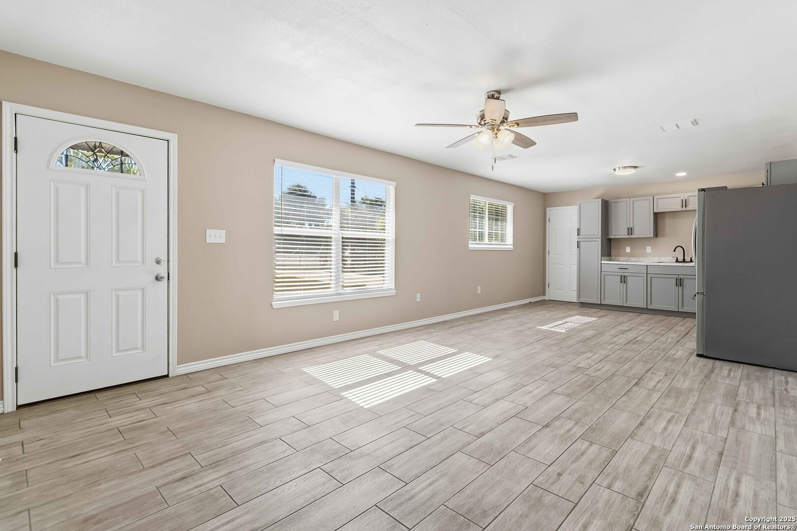 This stunning, fully remodeled home offers the perfect blend of modern design and everyday functionality. Inside, you'll find a bright, open layout enhanced by luxury vinyl plank flooring, fresh paint, and thoughtfully selected designer touches throughout. The kitchen has been completely reimagined with sleek cabinetry, modern hardware, contemporary lighting, and new countertops. Both bathrooms have been beautifully updated with stylish tile work, new vanities, and elegant fixtures. Every room features upgraded ceiling fans, energy-efficient lighting, and refined finishes that create a cohesive, modern aesthetic. The home is fully fenced front and back-including a gated driveway-offering privacy and peace of mind. A spacious covered carport accommodates two vehicles, and the expansive, fully covered back patio provides a private outdoor retreat perfect for entertaining or unwinding. Centrally located near shopping, dining, schools, churches, and major highways, this property combines designer style with excellent accessibility-an ideal rental opportunity in the heart of San Antonio.