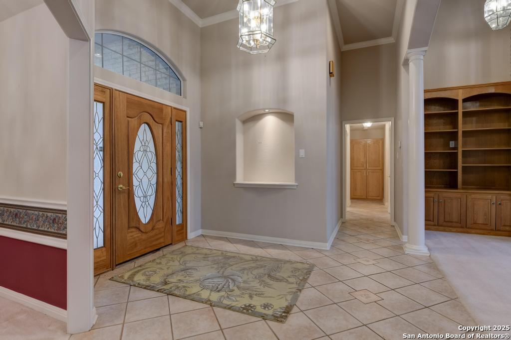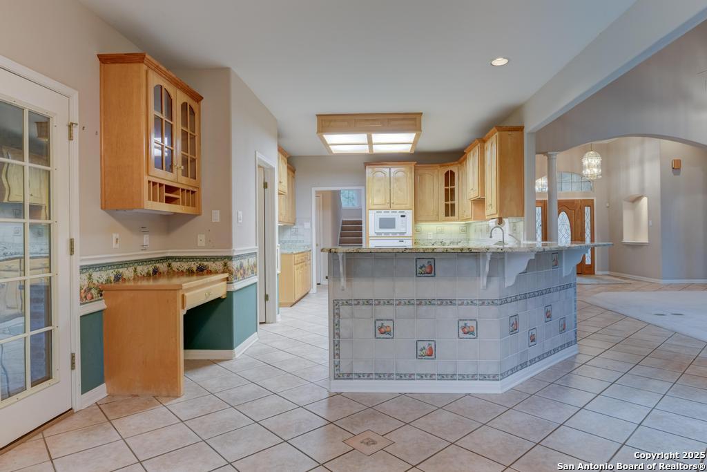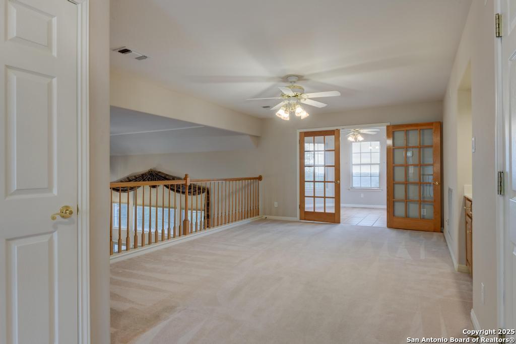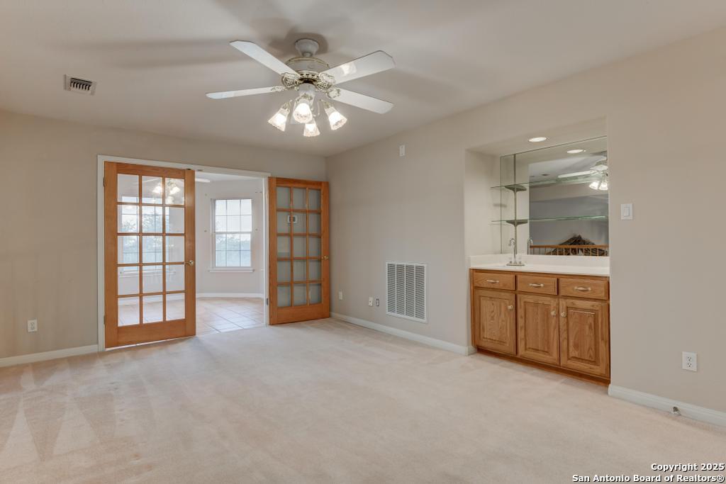 Stunning executive home with all the bells and whistles has been loved and well maintained. This beauty sits on more than a half an acre of Texas Heaven! Immaculate curb appeal to welcome you home in style with manicured yard and precision landscaping. Grand entry area opens to graceful architecture, dual pillars, soaring ceilings, and a beautiful view through the large windows that provide abundant natural light. Entertainer's Delight! The main Living area features an impressive fireplace with brick from floor to ceiling. The convenient built-in wood shelves demonstrate true craftsman's quality. Formal Dining area includes gorgeous chandelier sure to captivate your guests. Extraordinary Kitchen has double ovens, incredible storage and counter space area, and a huge walk-in pantry, with a lift that allows you to easily get your groceries from the garage to the pantry! The informal dining area has bay windows to enjoy causal meals with a view! All bedrooms downstairs. Primary Suite has a private outside exit to its own exclusive deck. Upstairs features a massive game room overlooking the main living area, with a wet bar and sitting area to enjoy starry night skies or amazing March Madness and Super Bowl parties! Two car garage plus ample uncovered parking. Breathtaking backyard with a large wood deck for hours of outside fun! Solar panels are functional! Luxurious county living, yet close to all the major city conveniences off 281 and 1604, like shopping, restaurants, entertainment and more! Neighborhood amenities include 9 hole golf course, tennis, pool and clubhouse. Superb Comal ISD with neighborhood elementary school and Pieper Ranch MS and PIEPER HS! Tons of storage under stairs. This is a must to see!