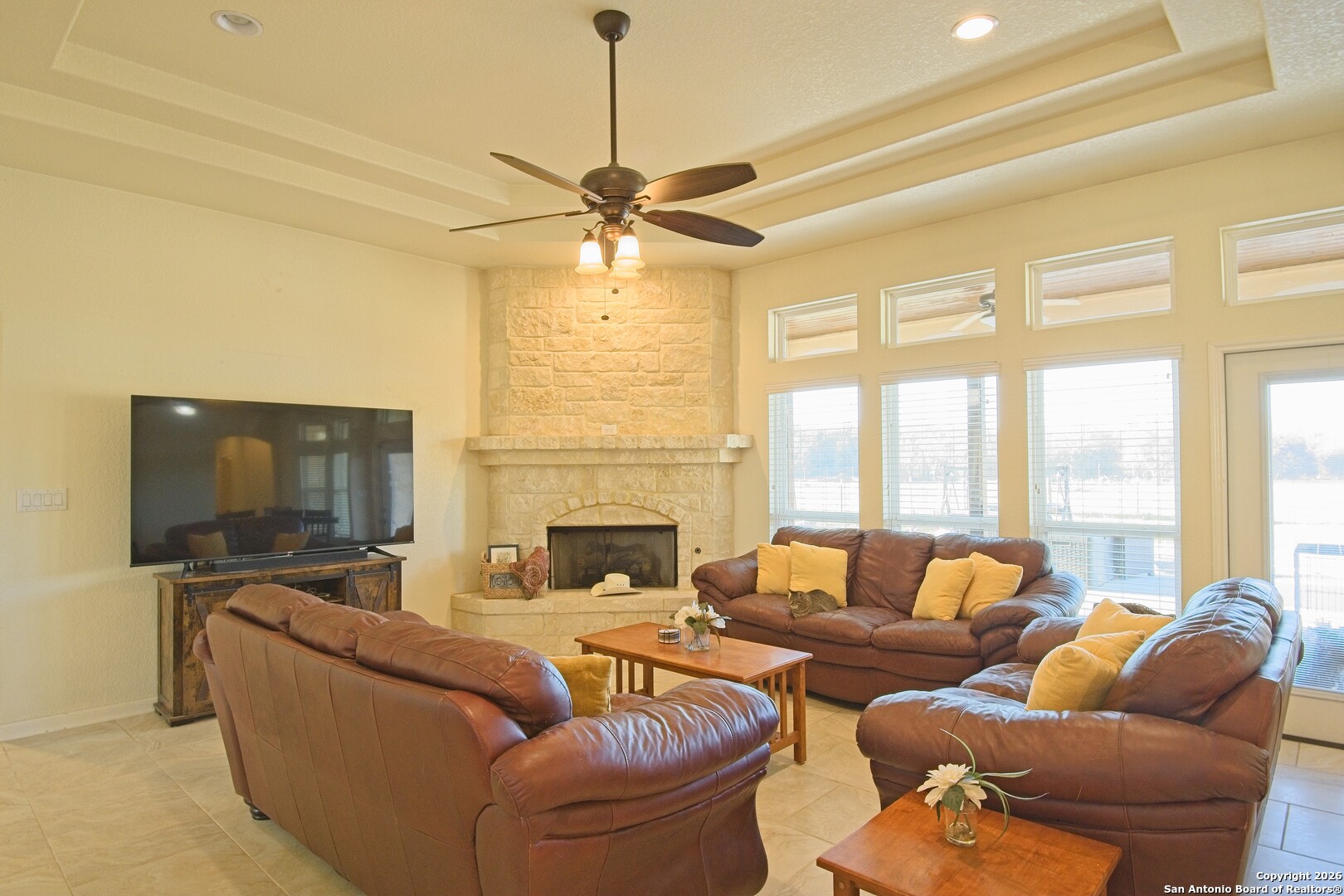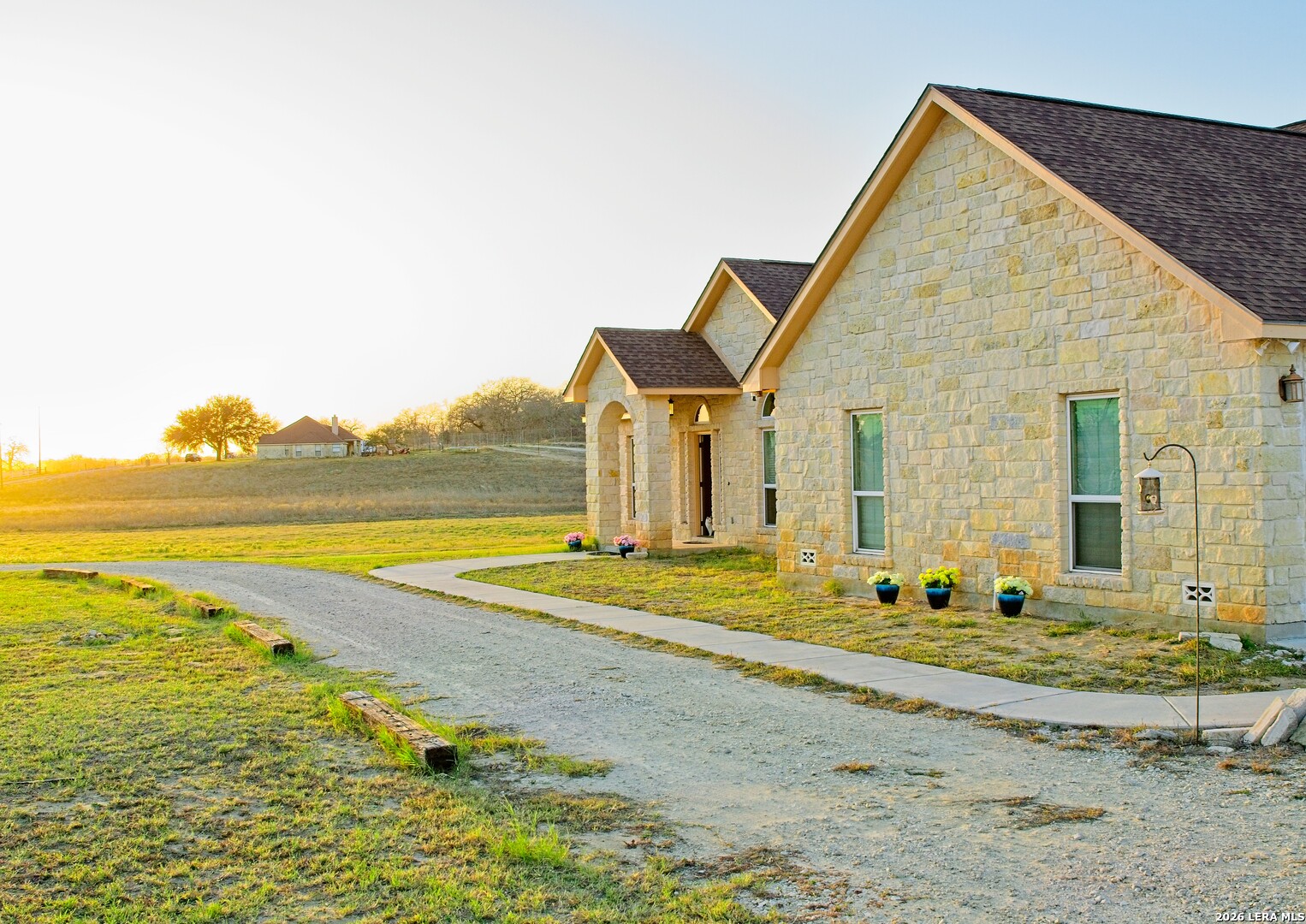 Looking for a country lifestyle change in beautiful La Vernia TX where comfort, style and space is an everyday experience to remind you why you chose this 5 Acre Beauty! This single story home was custom built with four sides masonry, 10ft ceilings, all tile flooring. The Living Room has a beautiful Stone fireplace with a mantel, wall of windows offers an array of natural lighting bring the outside in. The open floorpan easily connects you to your gourmet kitchen with built in Gas Cooktop, Built-in Oven and Microwave, Granite Countertops with plenty of Cabinets, and Counter Bar for additional seating. Kitchen Island is on wheels allowing you flexibility when entertaining. Formal Dining just off the kitchen and can also be used an an office if you prefer. Enjoy your private Owner's Suite sanctuary complete with your en-suite walk-in closet, dual vanities, walk-in shower and a soaking tub to make a "spa day" a regular occurrence. Direct access to the oversized covered Patio. Split floorpan with the secondary bedrooms and bath on the opposite side of the home. Step on up to your custom deck that hugs your above ground pool. 3 Car Garage and a Barn that can offer plenty of additional parking along with a circular driveway. The barn is approximately 13x24 and has an upstairs office/bonus room. Home has a water well and a septic system. This home can be your peaceful escape, a home to entertain, or a forever home with room to grow or be creative and build ... landscaping design, outdoor kitchen, sports court, greenhouse.