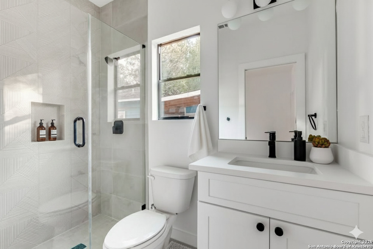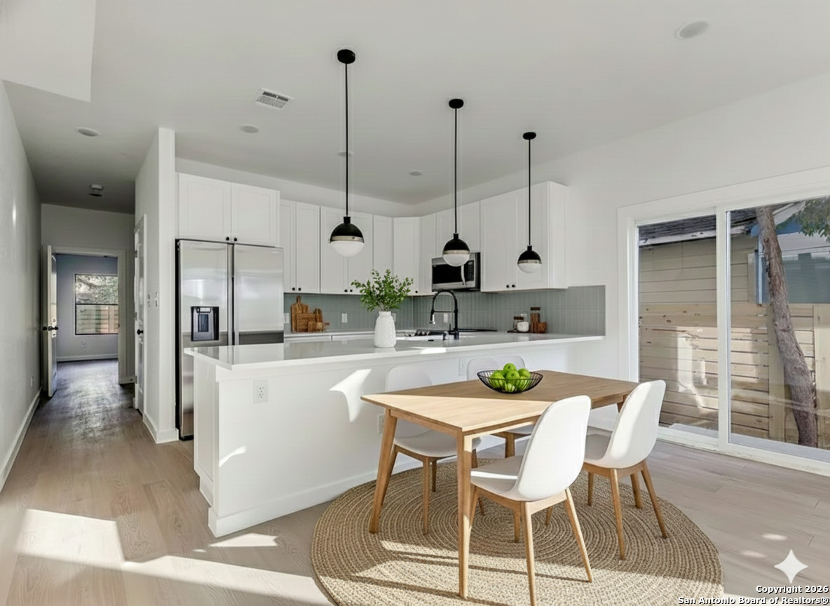 Live in style in this modern 3-bedroom, 2-bathroom home located in the heart of Denver Heights. Built in 2023, this thoughtfully designed two-story residence features an open-concept main level with clean lines, durable finishes, and natural light throughout-ideal for everyday living and entertaining. The kitchen comes fully equipped with stainless steel appliances, and washer/dryer connections are included for added convenience. All bedrooms are privately situated upstairs, including a comfortable primary suite with a full bath. Enjoy the charm of a fenced-in yard and the energy of an established neighborhood just minutes from the Alamodome, Downtown San Antonio, Southtown, and major highways. Street parking only. Only individual units (101 or 102) are available for sale.