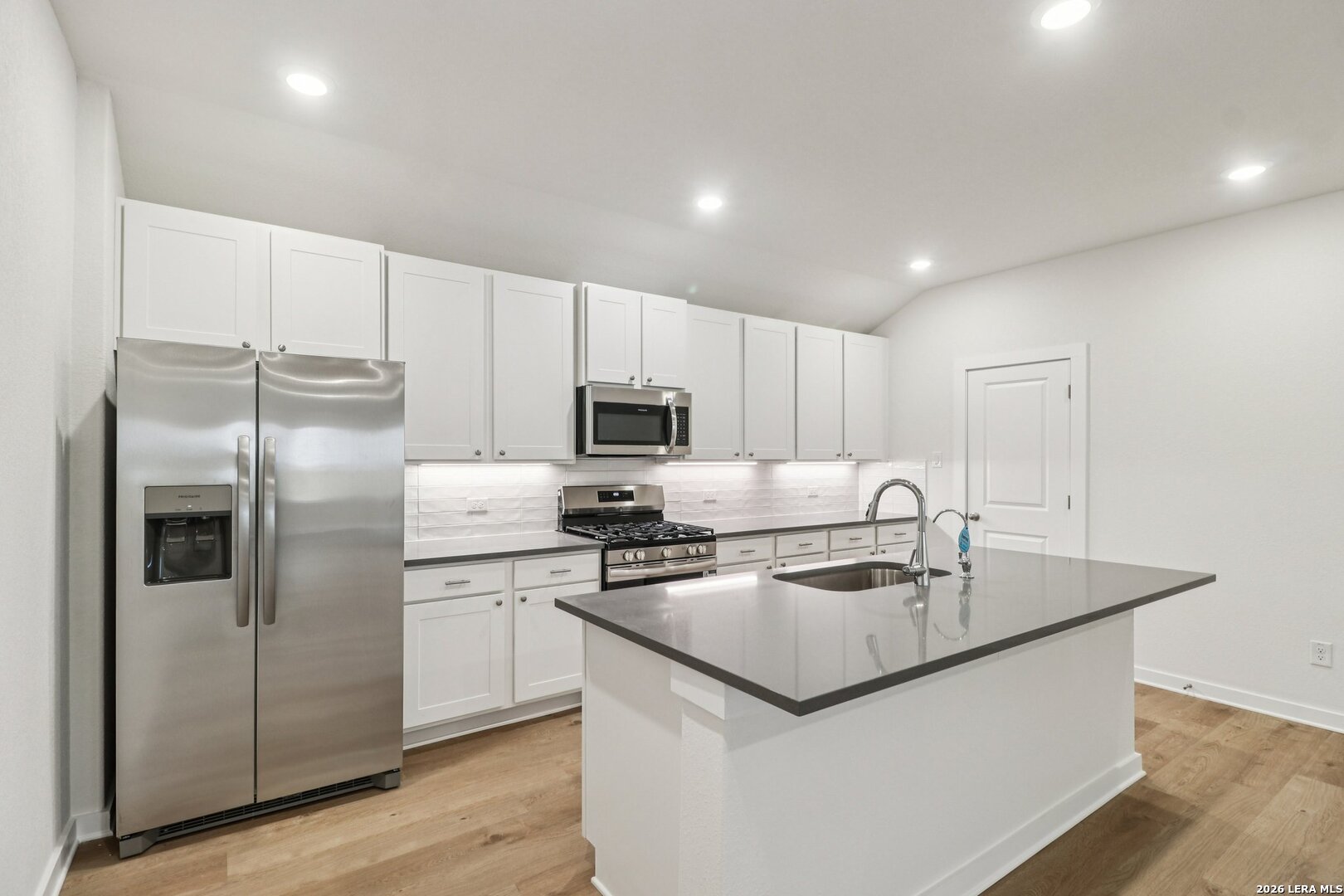 The Harris B, Homesite 50' floorplan is a beautifully designed single-story home offering 2,040 square feet of open, functional living space. With four bedrooms and two full bathrooms, this layout maximizes flow and flexibility for a variety of lifestyles. The heart of the home is a spacious kitchen with a central island and casual dining area that opens into the oversized living room-perfect for gathering or unwinding. The private primary suite includes dual walk-in closets and a spa-inspired bath with a tiled walk-in shower, dual vanities, and premium finishes. A covered patio extends the living space outdoors, while the dedicated laundry room and two-car garage add everyday convenience. Designer finishes like quartz countertops, sleek tile flooring, shaker cabinets, and Moen chrome fixtures come standard. Energy-efficient features such as a tankless water heater, radiant barrier roof decking, and a SEER 2 Lennox AC system ensure both comfort and cost savings year-round.