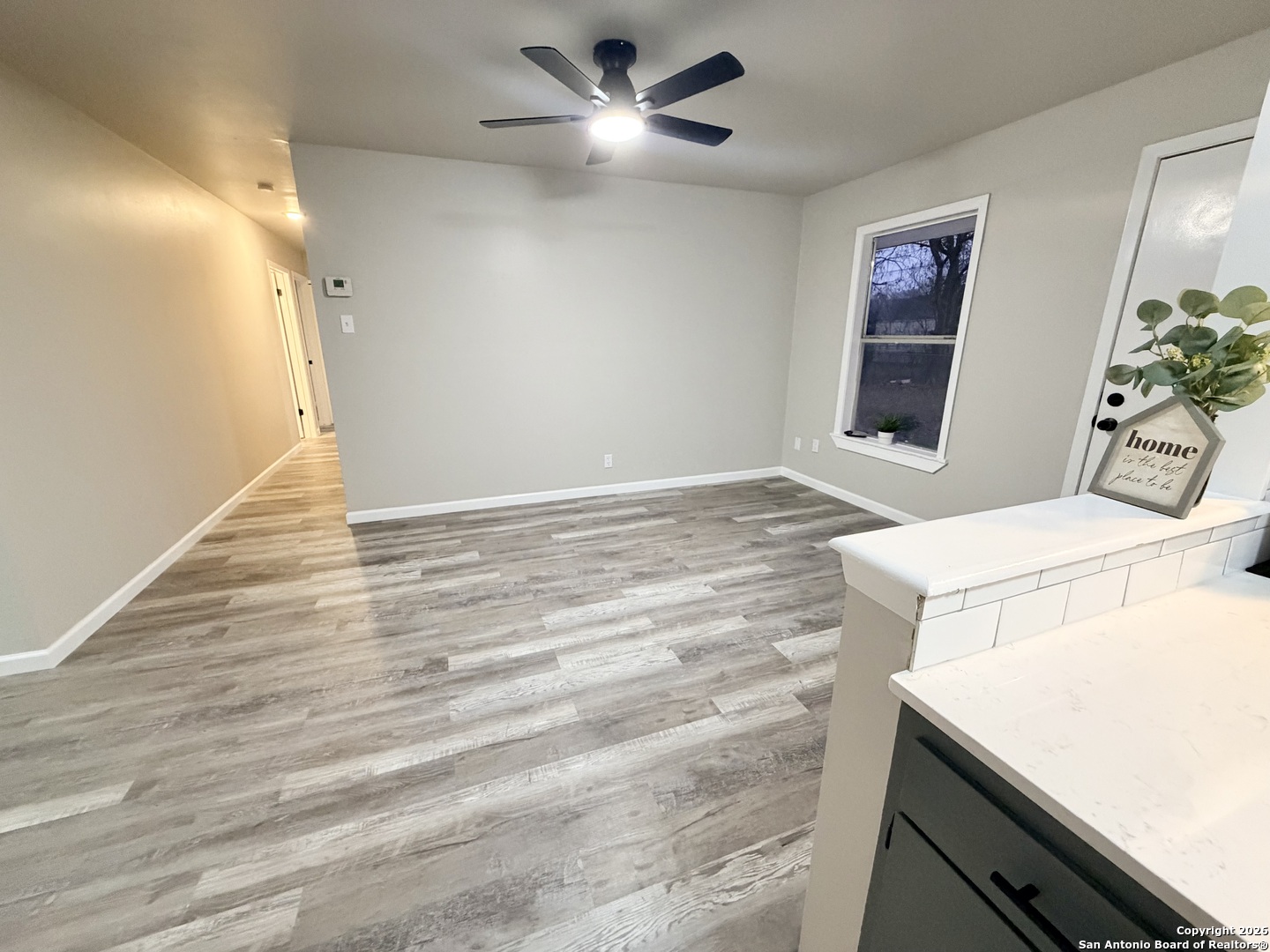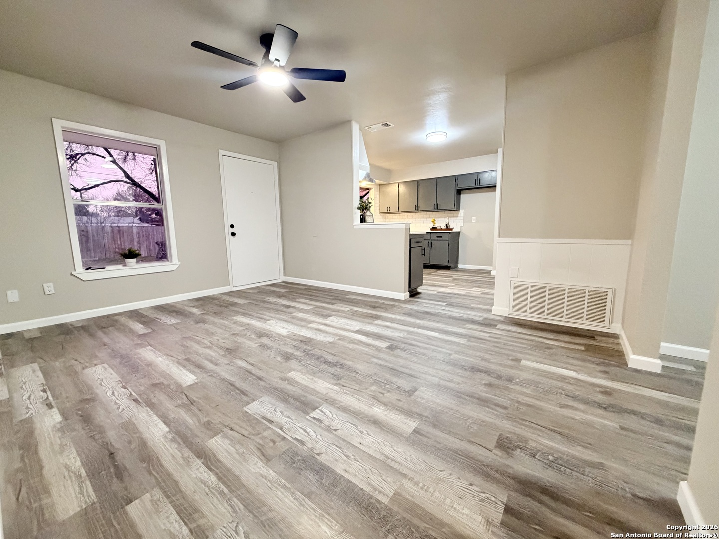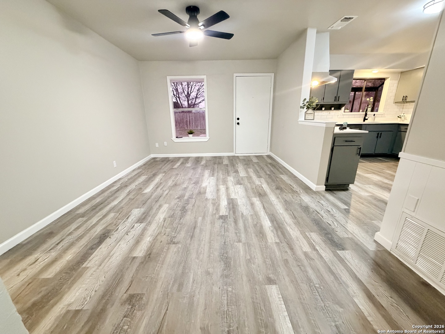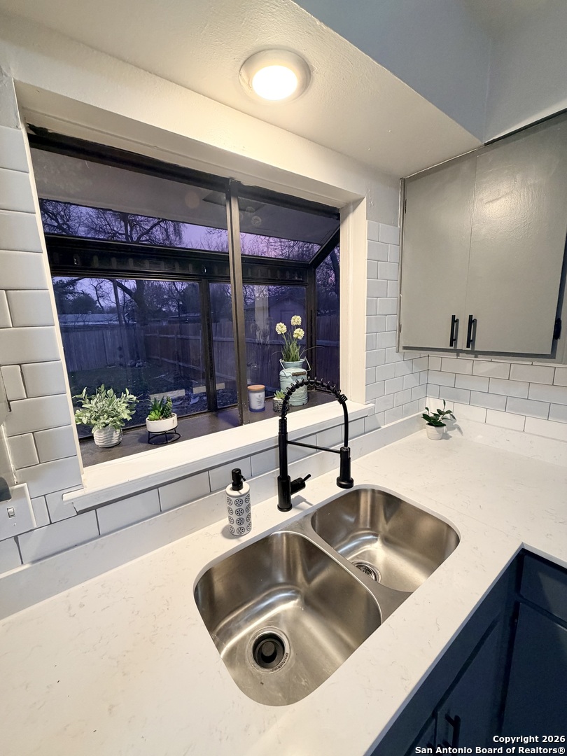 Completely refreshed & move in ready, this beautifully updated single story home offers 3 bedrooms, 2 full bathrooms & a one car garage. Thoughtful upgrades include fresh interior & exterior paint, newly painted kitchen cabinets, stunning quartz countertops, subway tile backsplash & modern hardware. Both bathrooms have been stylishly updated with new vanities, mirrors & toilets. All interior & exterior light fixtures are brand new, complemented by new ceiling fans in every bedroom & the main living area. Luxury vinyl plank flooring flows throughout the home, creating a bright, cohesive & low maintenance living space. Ideally located in NE San Antonio near I 35 & Loop 410, just minutes from Windcrest & Kirby, with convenient access to shopping, dining, parks & major commuter routes. This home shows beautifully & is ready for immediate enjoyment schedule your showing today!