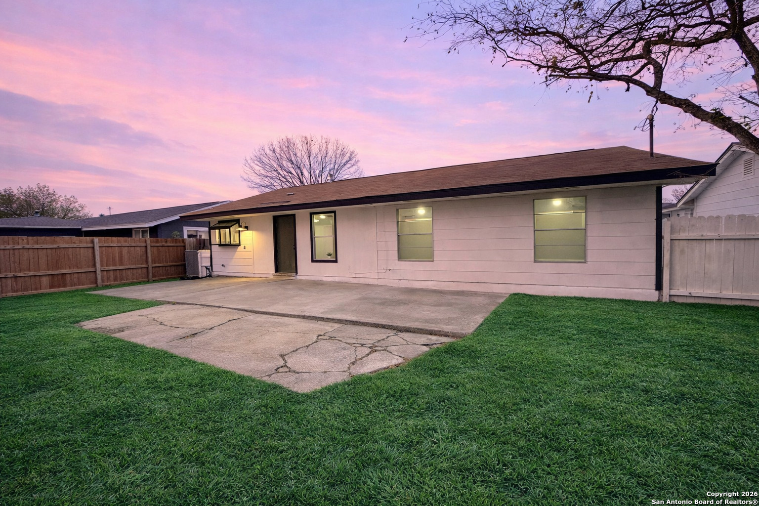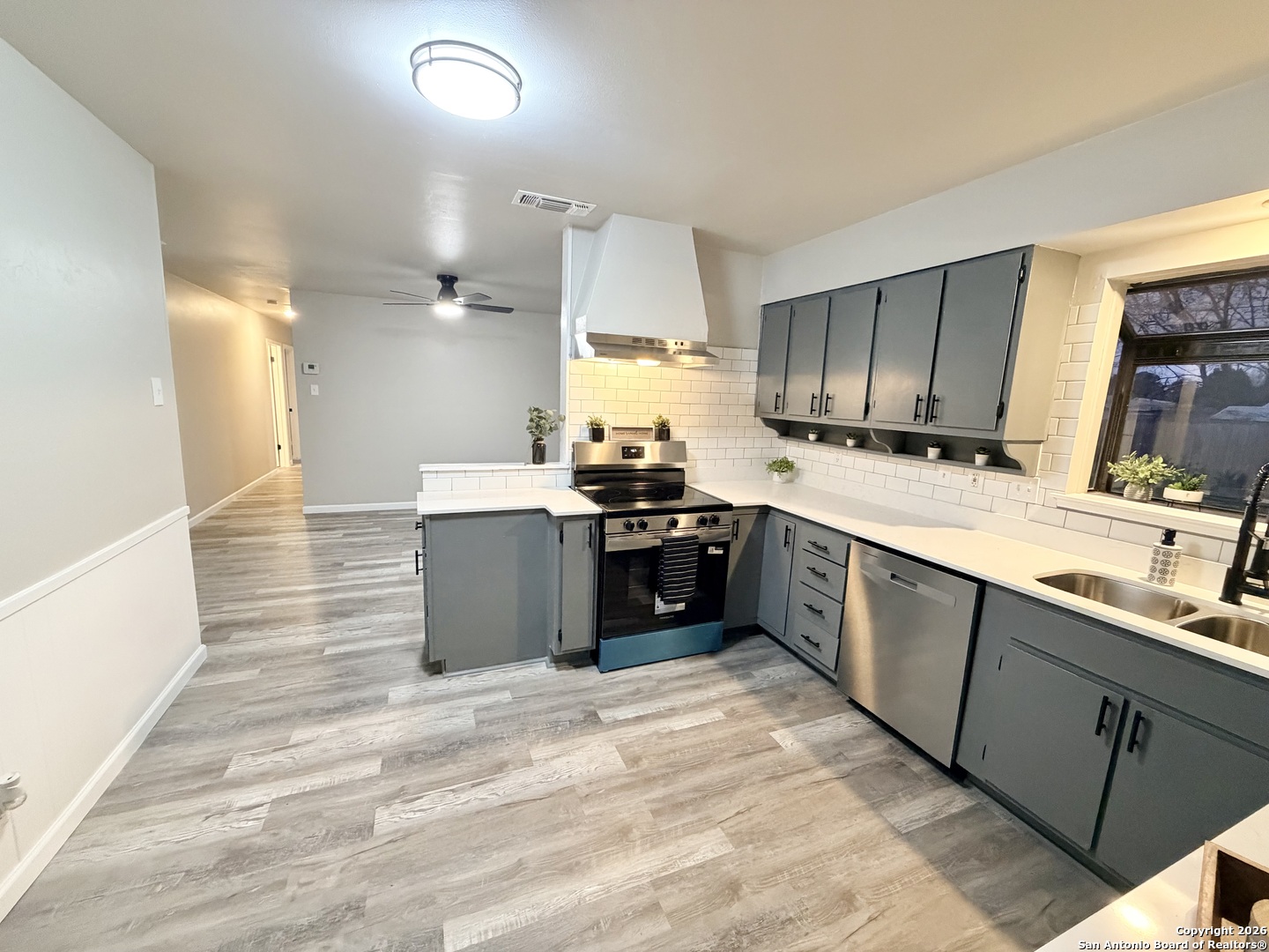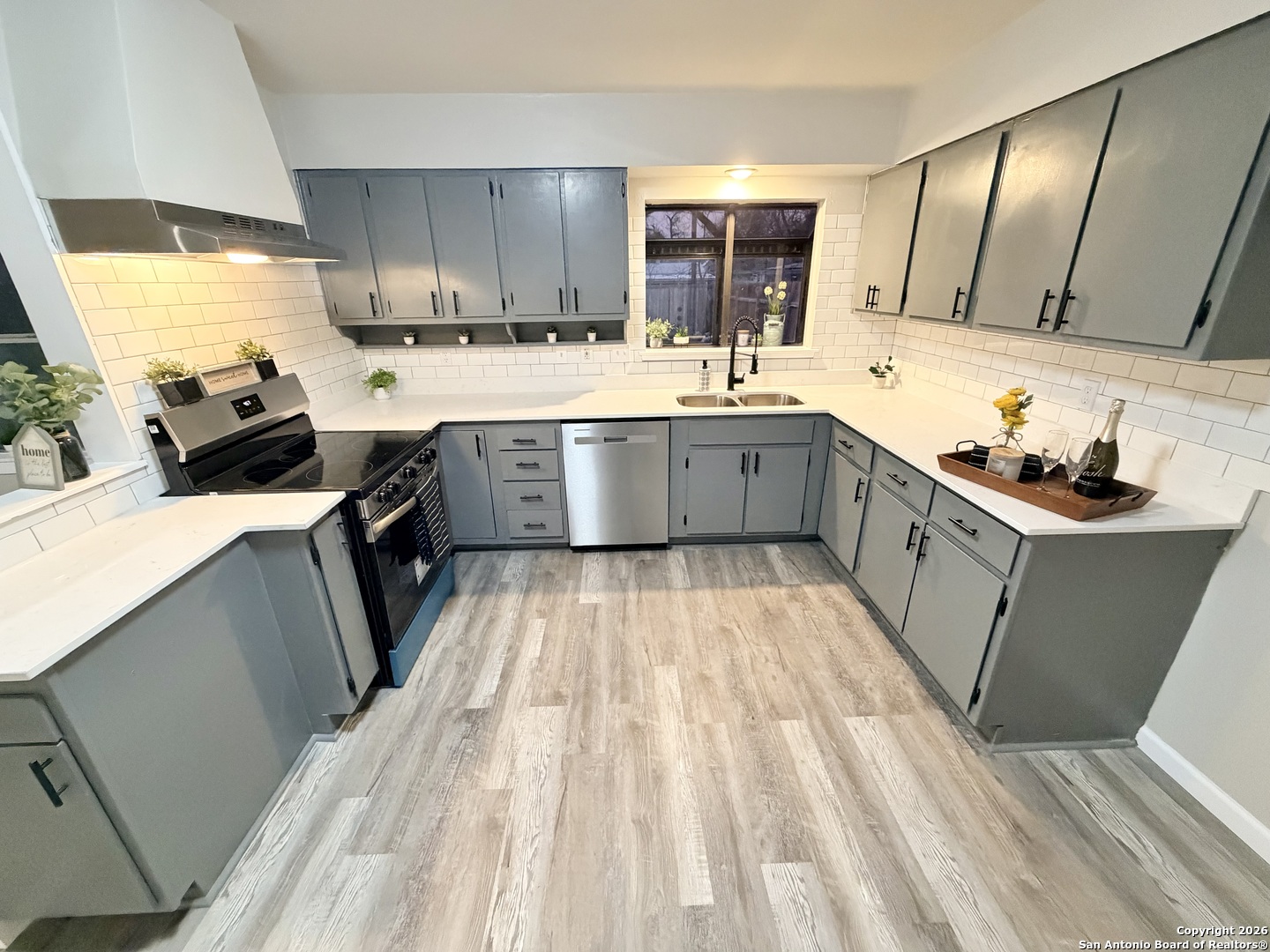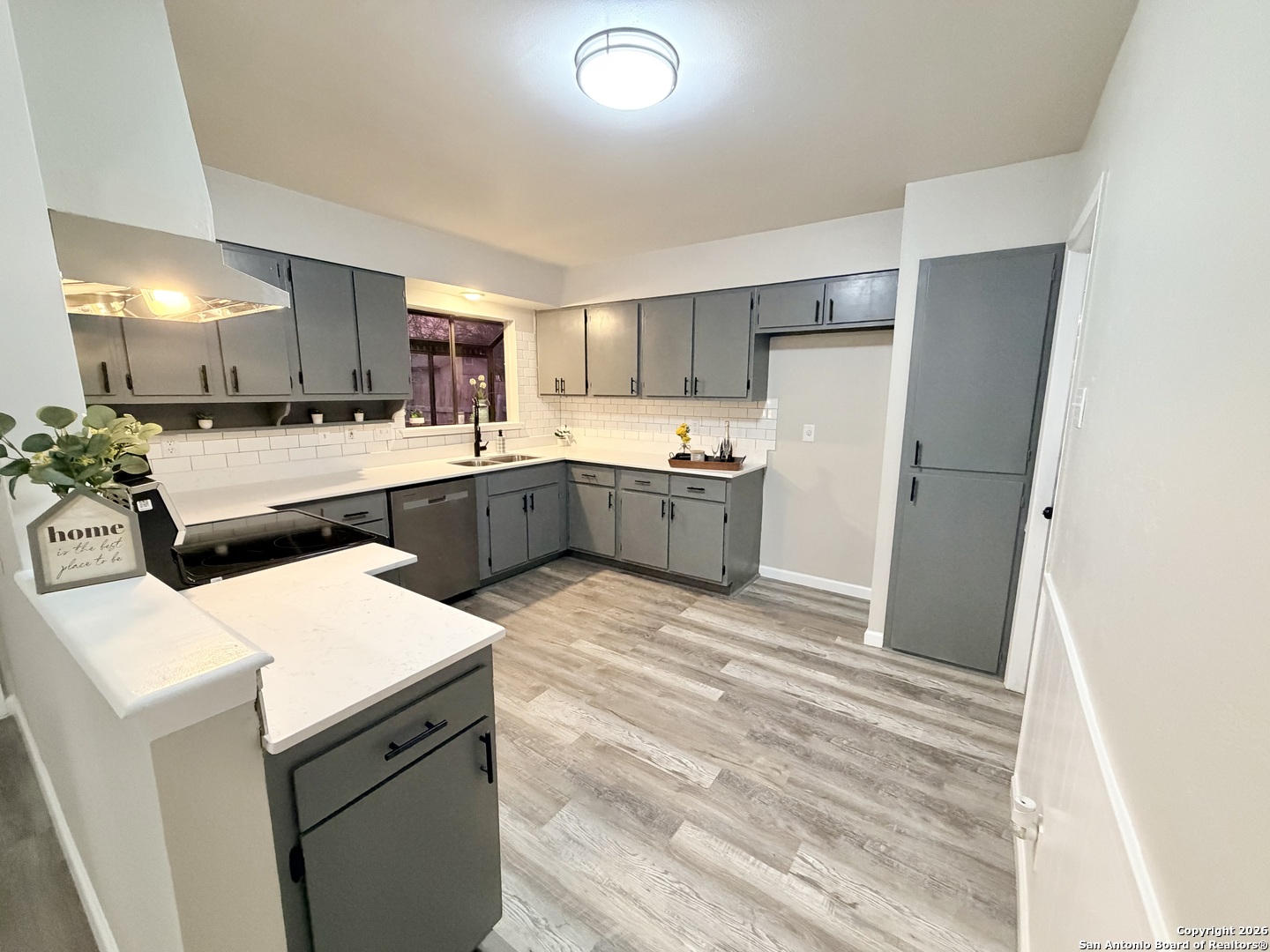 Completely refreshed & move in ready, this beautifully updated single story home offers 3 bedrooms, 2 full bathrooms & a one car garage. Thoughtful upgrades include fresh interior & exterior paint, newly painted kitchen cabinets, stunning quartz countertops, subway tile backsplash & modern hardware. Both bathrooms have been stylishly updated with new vanities, mirrors & toilets. All interior & exterior light fixtures are brand new, complemented by new ceiling fans in every bedroom & the main living area. Luxury vinyl plank flooring flows throughout the home, creating a bright, cohesive & low maintenance living space. Ideally located in NE San Antonio near I 35 & Loop 410, just minutes from Windcrest & Kirby, with convenient access to shopping, dining, parks & major commuter routes. This home shows beautifully & is ready for immediate enjoyment schedule your showing today!