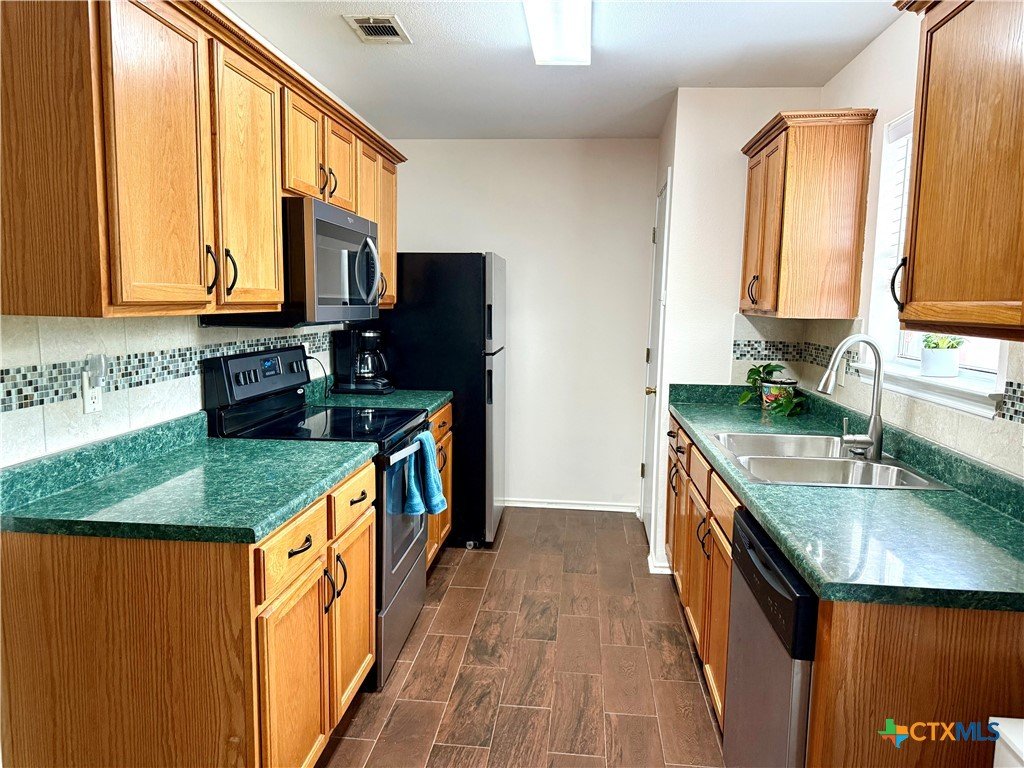 Lovely brick traditional home in a prime Temple location, offering 3 bedrooms and 2 full baths with a functional, easy-flow layout designed for comfortable everyday living. Ideally situated near schools, popular restaurants, shopping, Wildflower Country Club, and Spare Time Family Entertainment Center, with Westridge Park just blocks away. Enjoy a quick drive to Lake Belton and a convenient commute to Fort Hood. Inside, low-maintenance wood-look flooring and tile run throughout the main living areas, combining durability with style. The spacious living room opens seamlessly to the dining area, creating an inviting space perfect for entertaining or relaxing at home. The kitchen is well-appointed with stainless steel appliances, brand-new built-in microwave, pantry, and abundant cabinetry for storage. The private primary suite features a walk-in closet and en-suite bath with a shower/tub combo. Two additional guest bedrooms and a full bathroom provide flexibility for family, guests, or a home office. Step outside to a covered patio overlooking a large, private backyard—ideal for outdoor dining, entertaining, or simply enjoying the Texas evenings. New HVAC system and smoke detectors offer peace of mind. This well-located, move-in ready home offers comfort, convenience, and value in one of Temple’s most desirable areas. **More pics coming soon