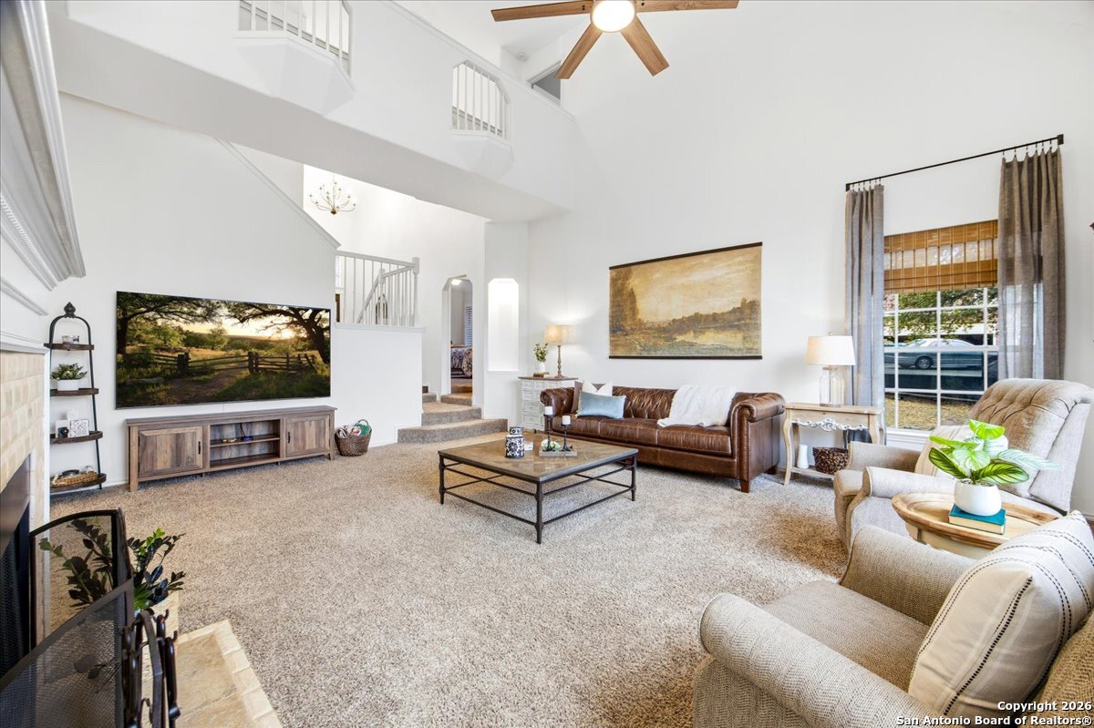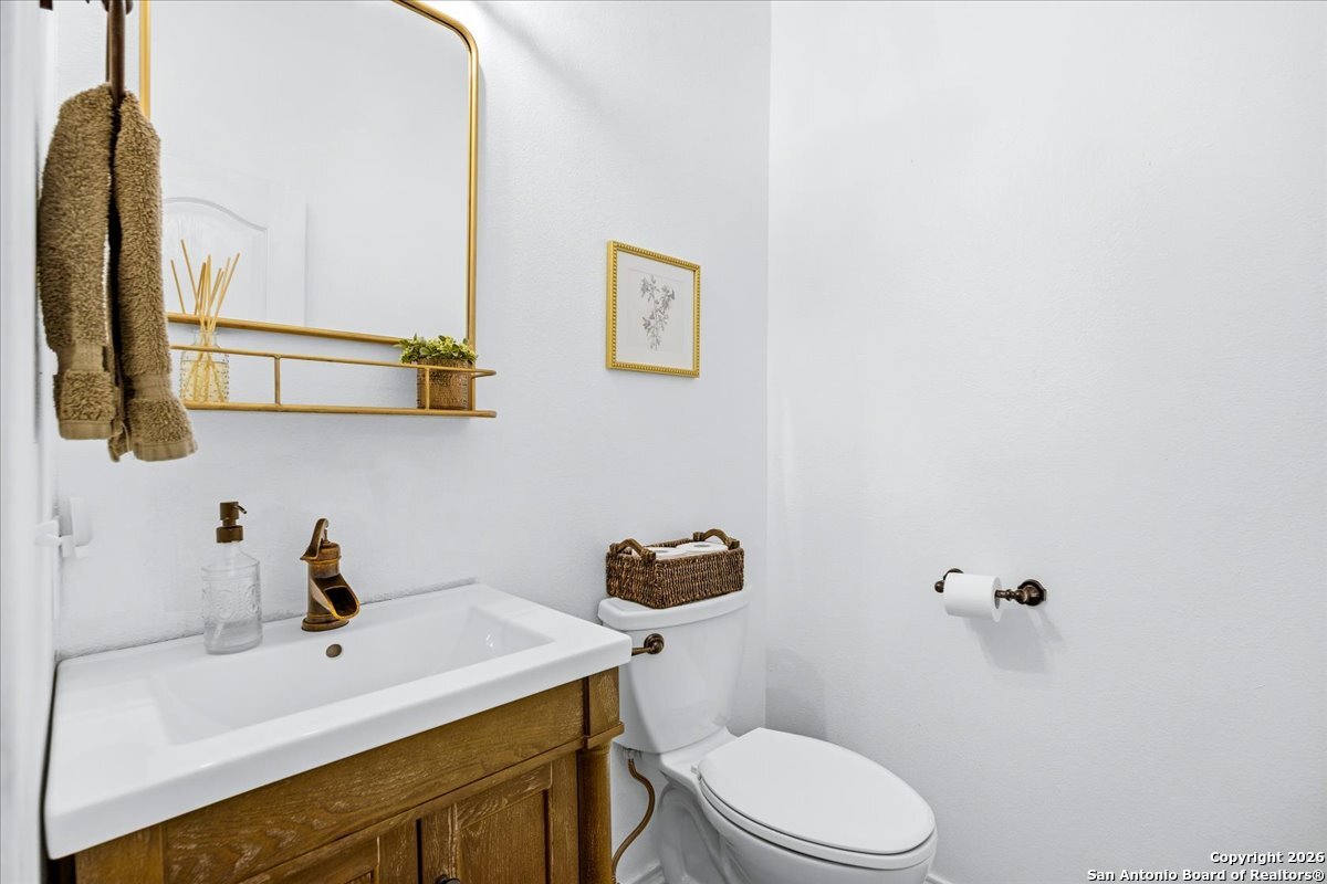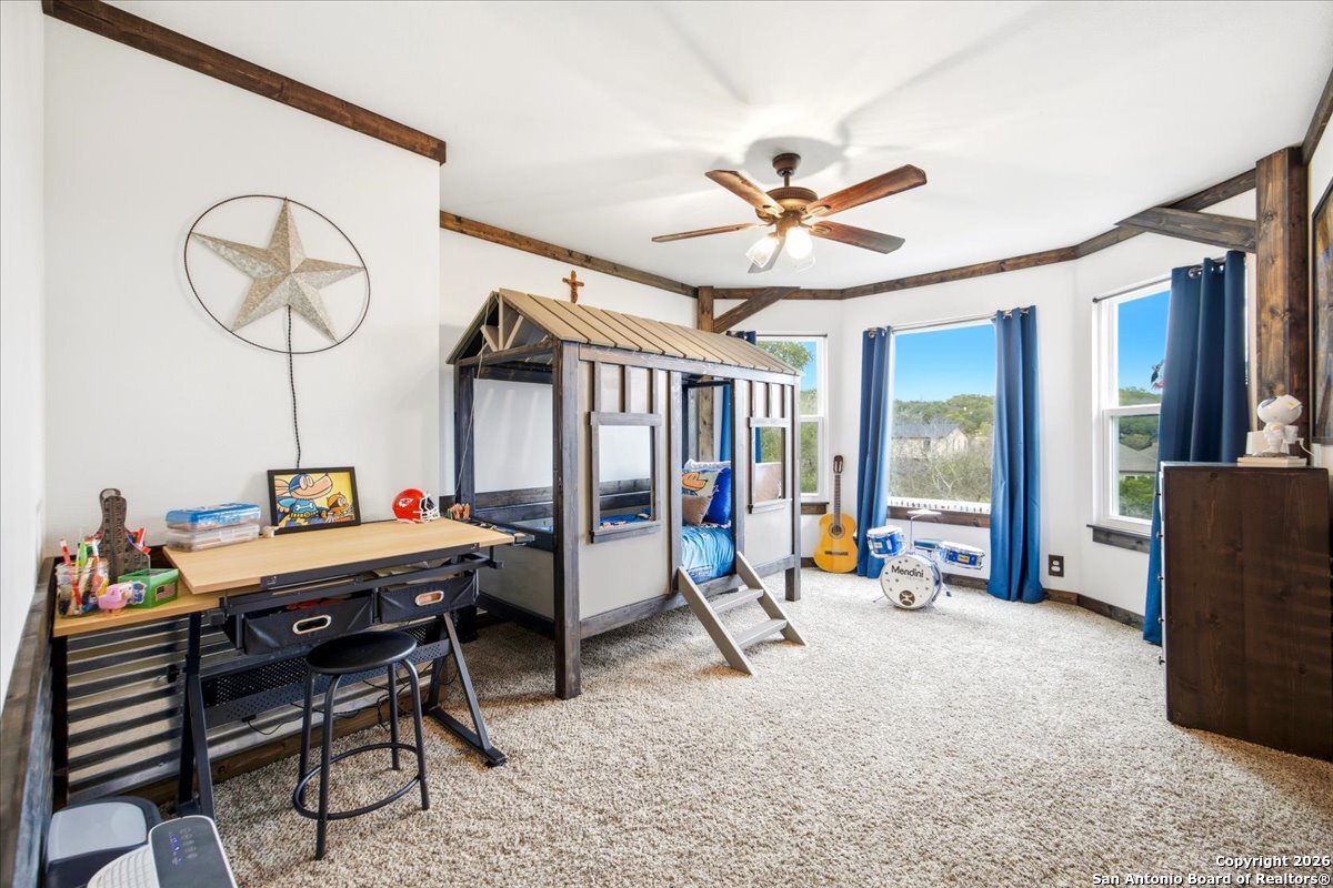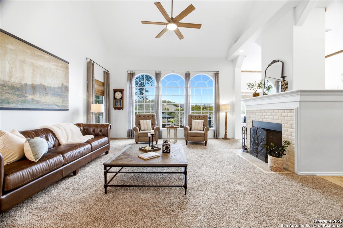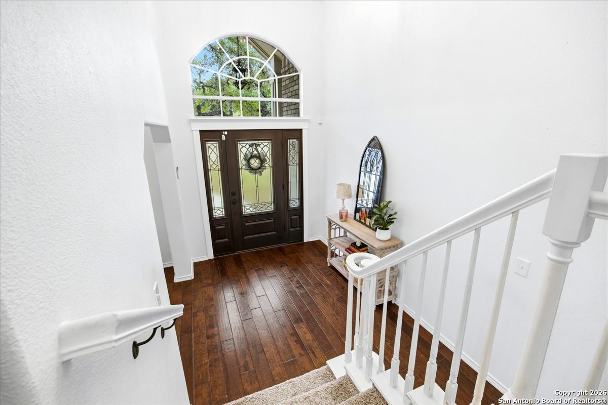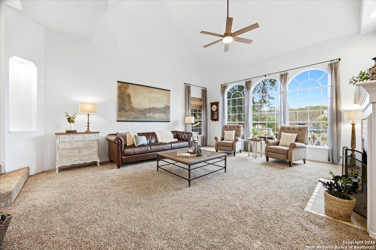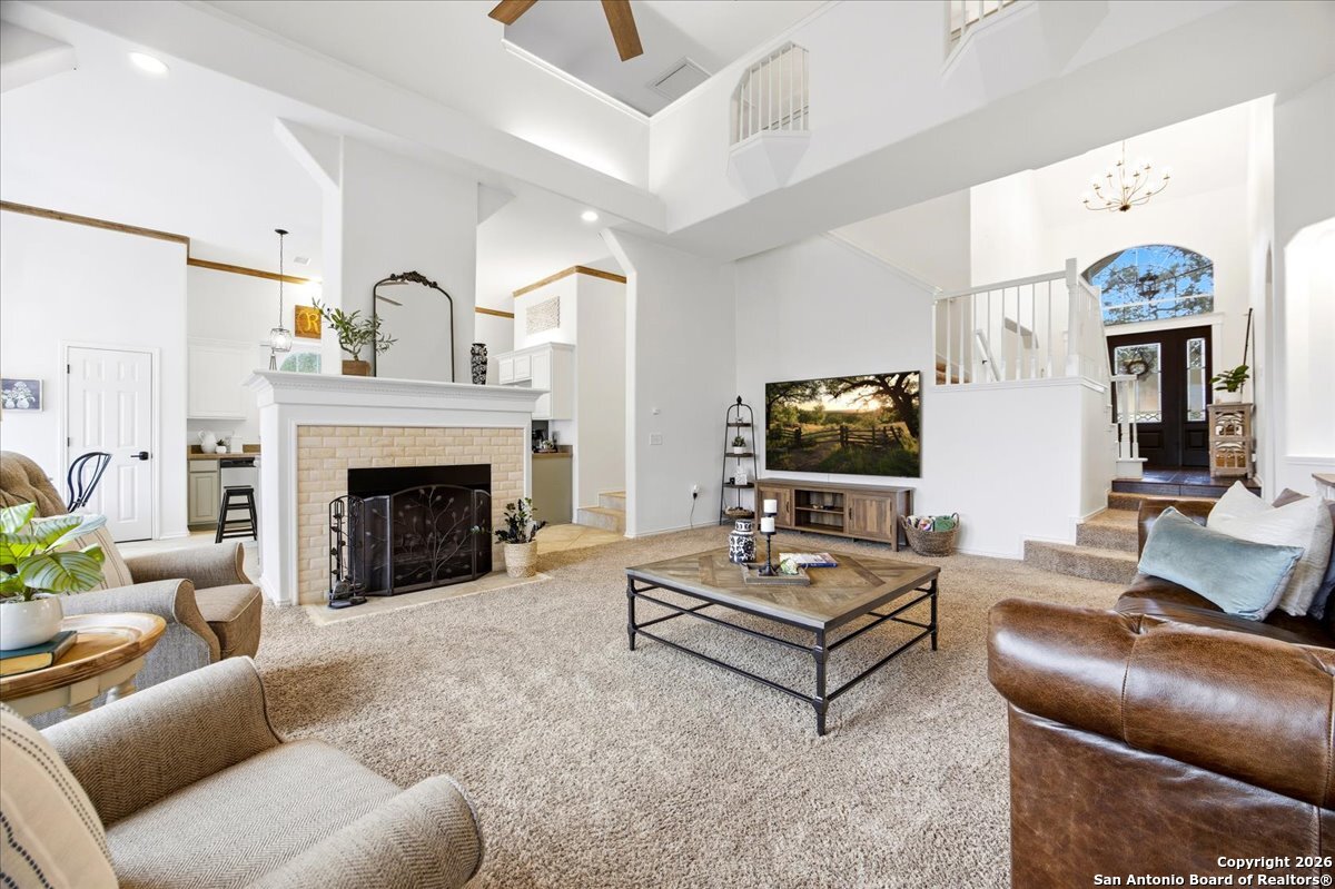 Set on a private 0.58-acre lot in prestigious Timberwood Park, this beautifully updated 4 bedroom residence offers resort-style living with a sparkling pool and expansive outdoor spaces. The open floor plan features two dining areas, a light-filled family room with vaulted ceilings and a fireplace, and walls of windows overlooking the backyard oasis. The primary suite is conveniently located on the main level. The well-appointed kitchen showcases stainless steel appliances, painted cabinetry, upgraded lighting, and granite countertops, flowing effortlessly into the main living areas. Upstairs, a spacious game room and secondary bedrooms provide flexible living and entertaining options. Recent improvements include a freshly repainted interior, updated laundry room, newly stained garage door, and a roof replaced in 2019. Outdoor living is elevated with a recently rebuilt deck overlooking the pool, mature oak trees, and a fully fenced, private backyard-ideal for entertaining or quiet relaxation. Enjoy exceptional neighborhood amenities including a 9-hole golf course, clubhouse, swimming pool, pickleball courts, catch-and-release lake, playground, and vibrant community events. Located in acclaimed Comal ISD and zoned to Pieper Middle and High School, this home delivers privacy, lifestyle, and timeless appeal.