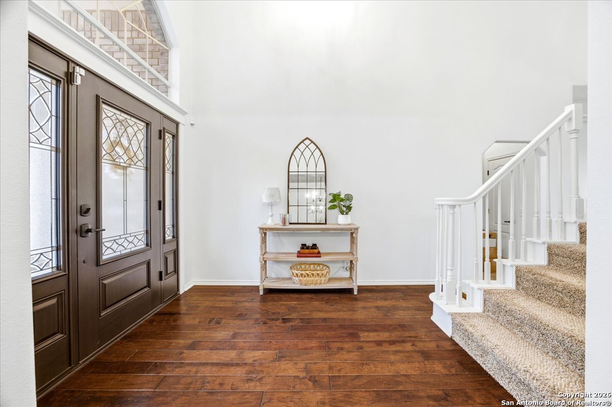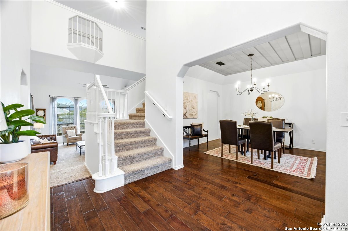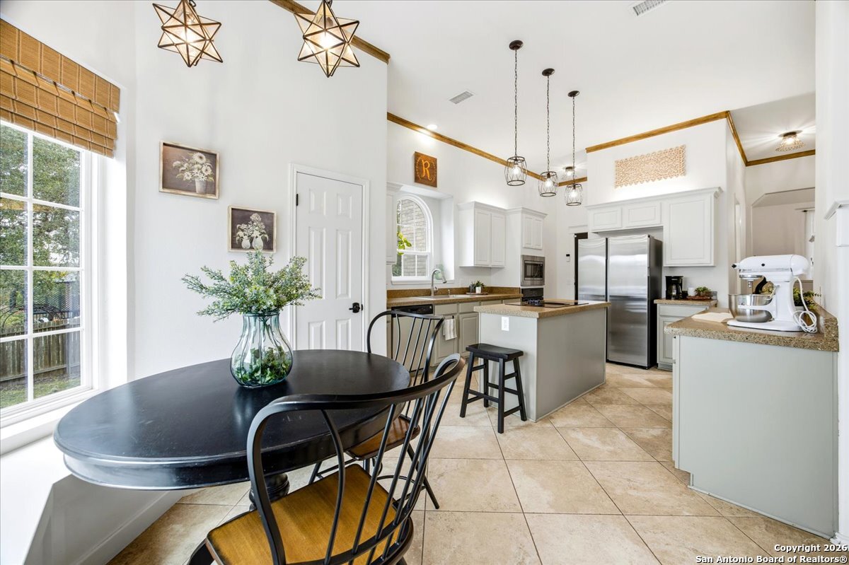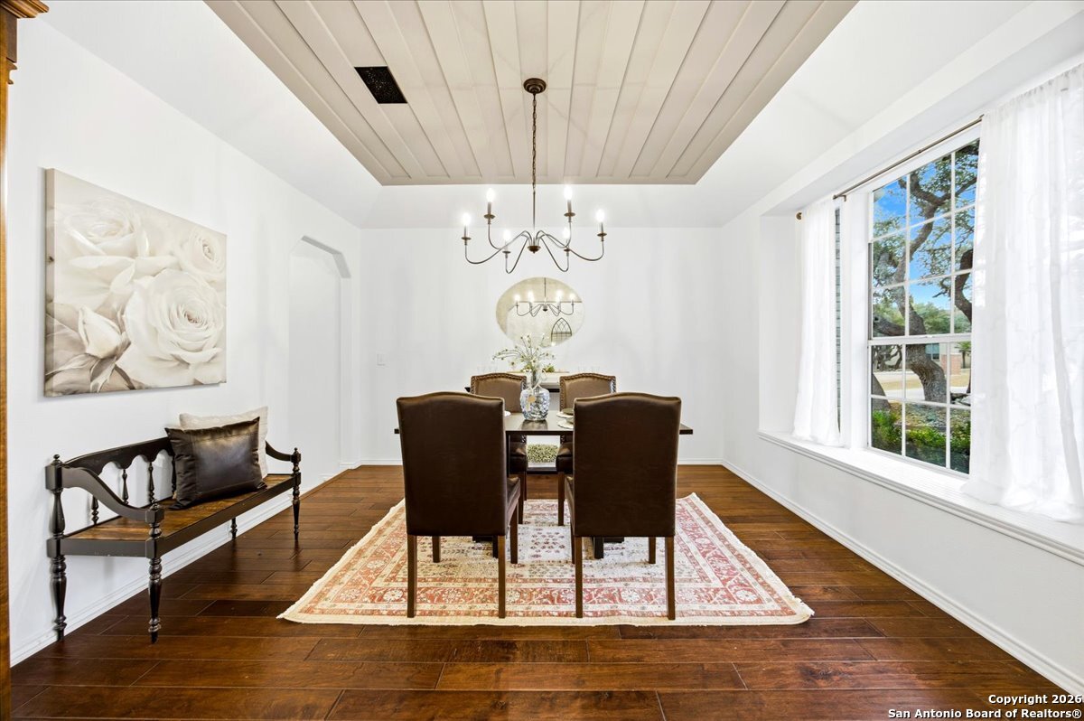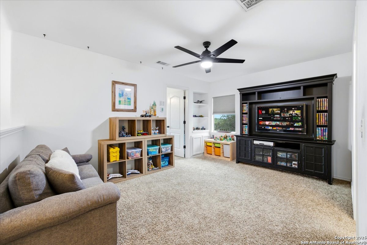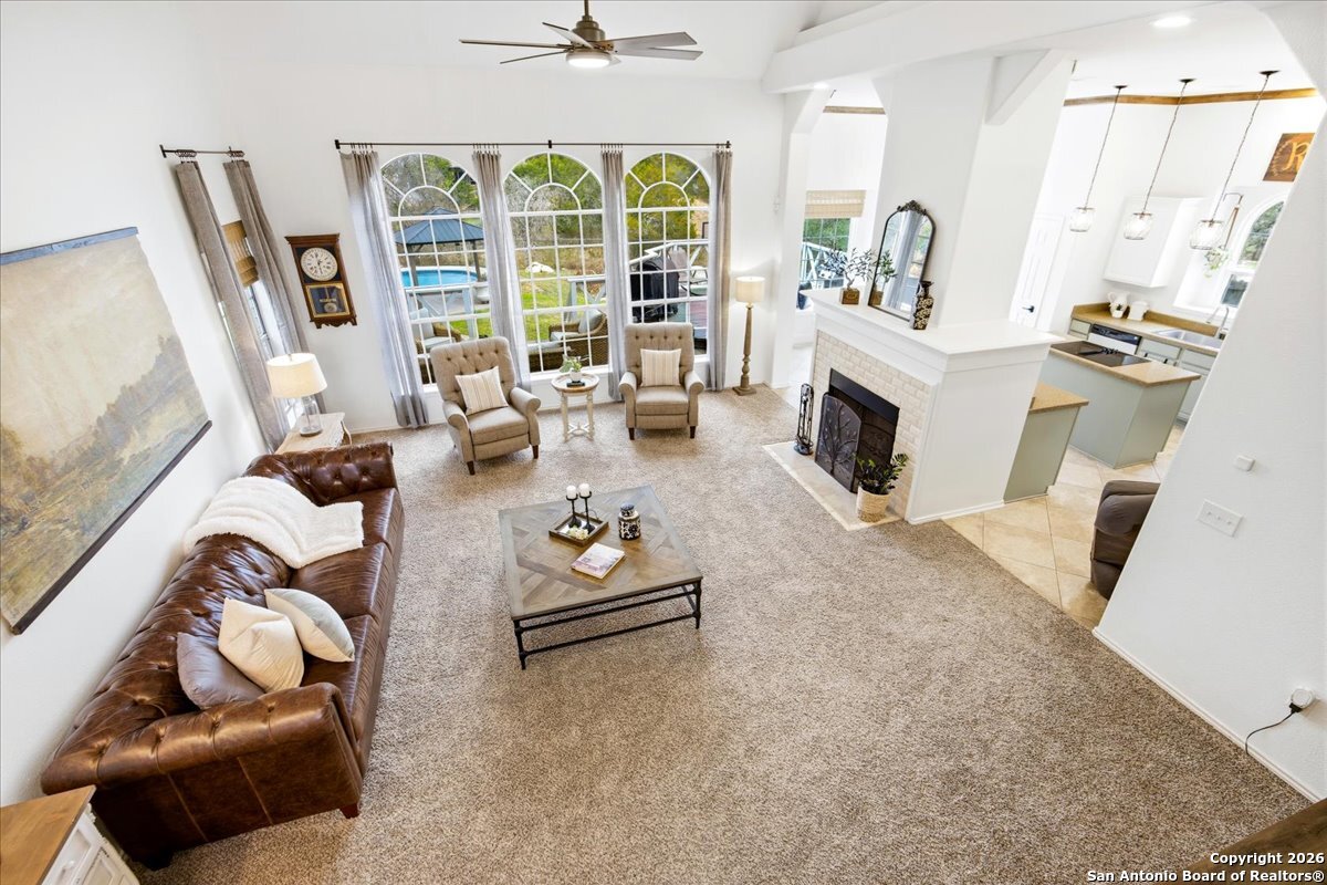 Set on a private 0.58-acre lot in prestigious Timberwood Park, this beautifully updated 4 bedroom residence offers resort-style living with a sparkling pool and expansive outdoor spaces. The open floor plan features two dining areas, a light-filled family room with vaulted ceilings and a fireplace, and walls of windows overlooking the backyard oasis. The primary suite is conveniently located on the main level. The well-appointed kitchen showcases stainless steel appliances, painted cabinetry, upgraded lighting, and granite countertops, flowing effortlessly into the main living areas. Upstairs, a spacious game room and secondary bedrooms provide flexible living and entertaining options. Recent improvements include a freshly repainted interior, updated laundry room, newly stained garage door, and a roof replaced in 2019. Outdoor living is elevated with a recently rebuilt deck overlooking the pool, mature oak trees, and a fully fenced, private backyard-ideal for entertaining or quiet relaxation. Enjoy exceptional neighborhood amenities including a 9-hole golf course, clubhouse, swimming pool, pickleball courts, catch-and-release lake, playground, and vibrant community events. Located in acclaimed Comal ISD and zoned to Pieper Middle and High School, this home delivers privacy, lifestyle, and timeless appeal.