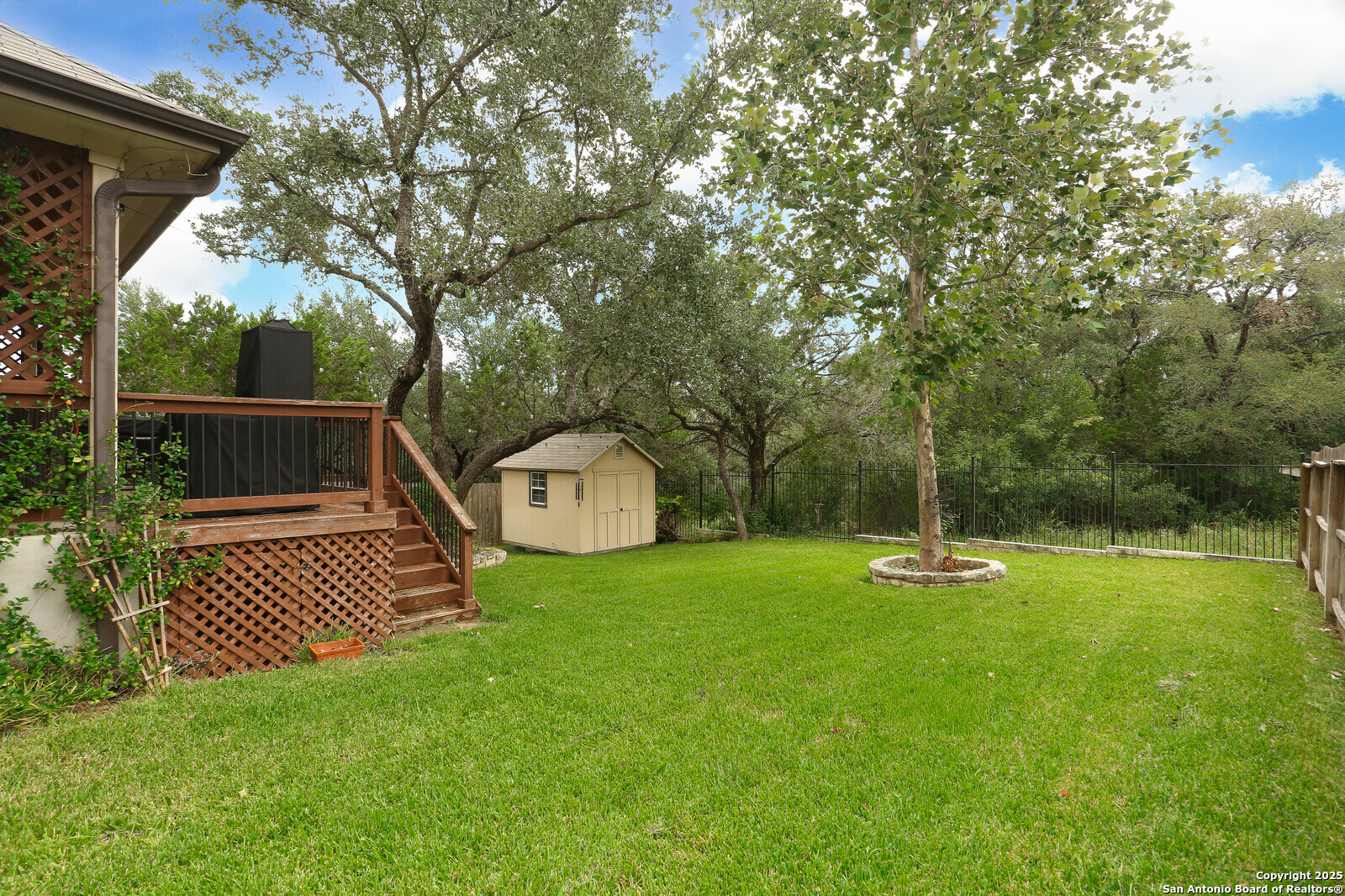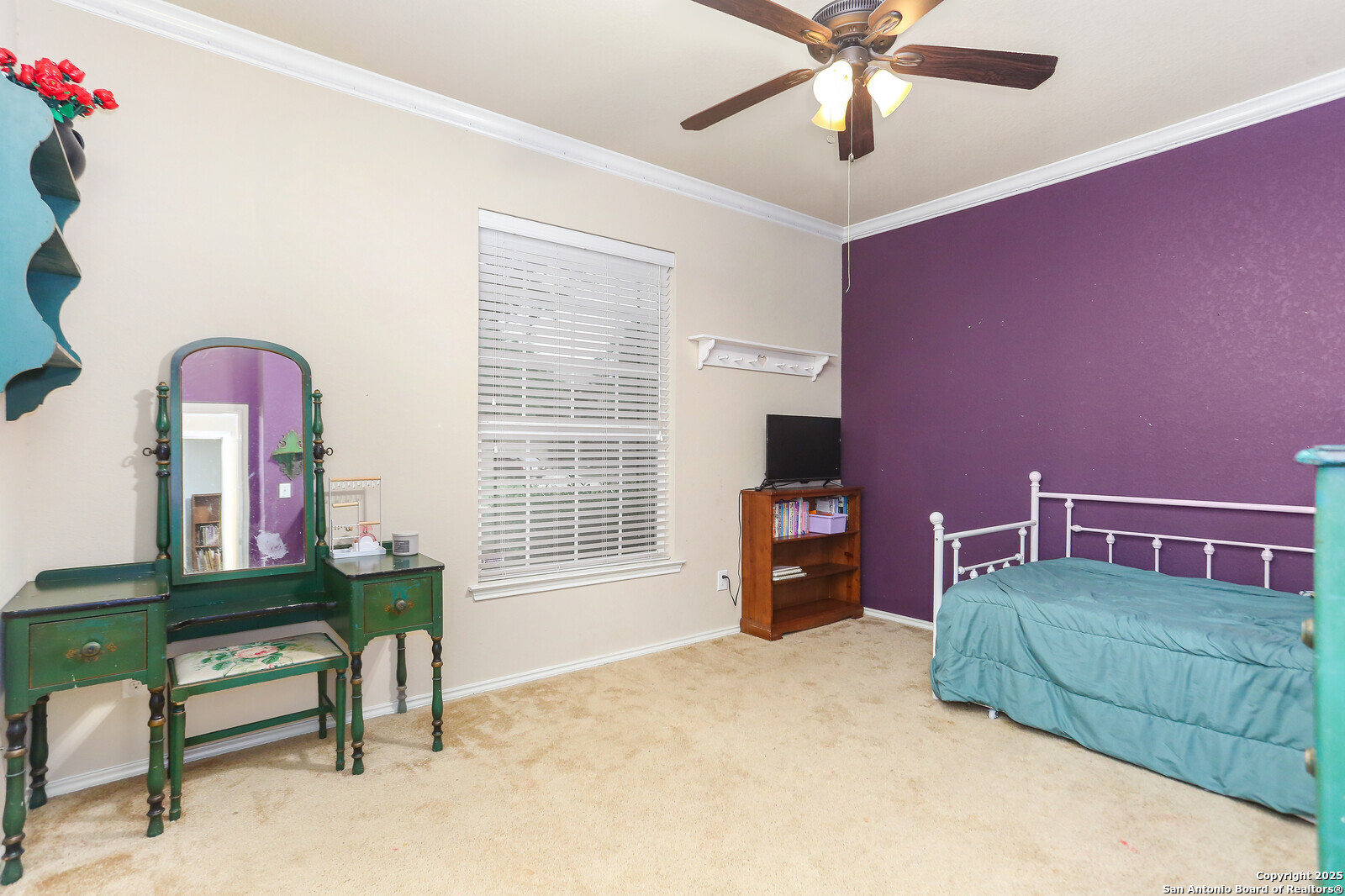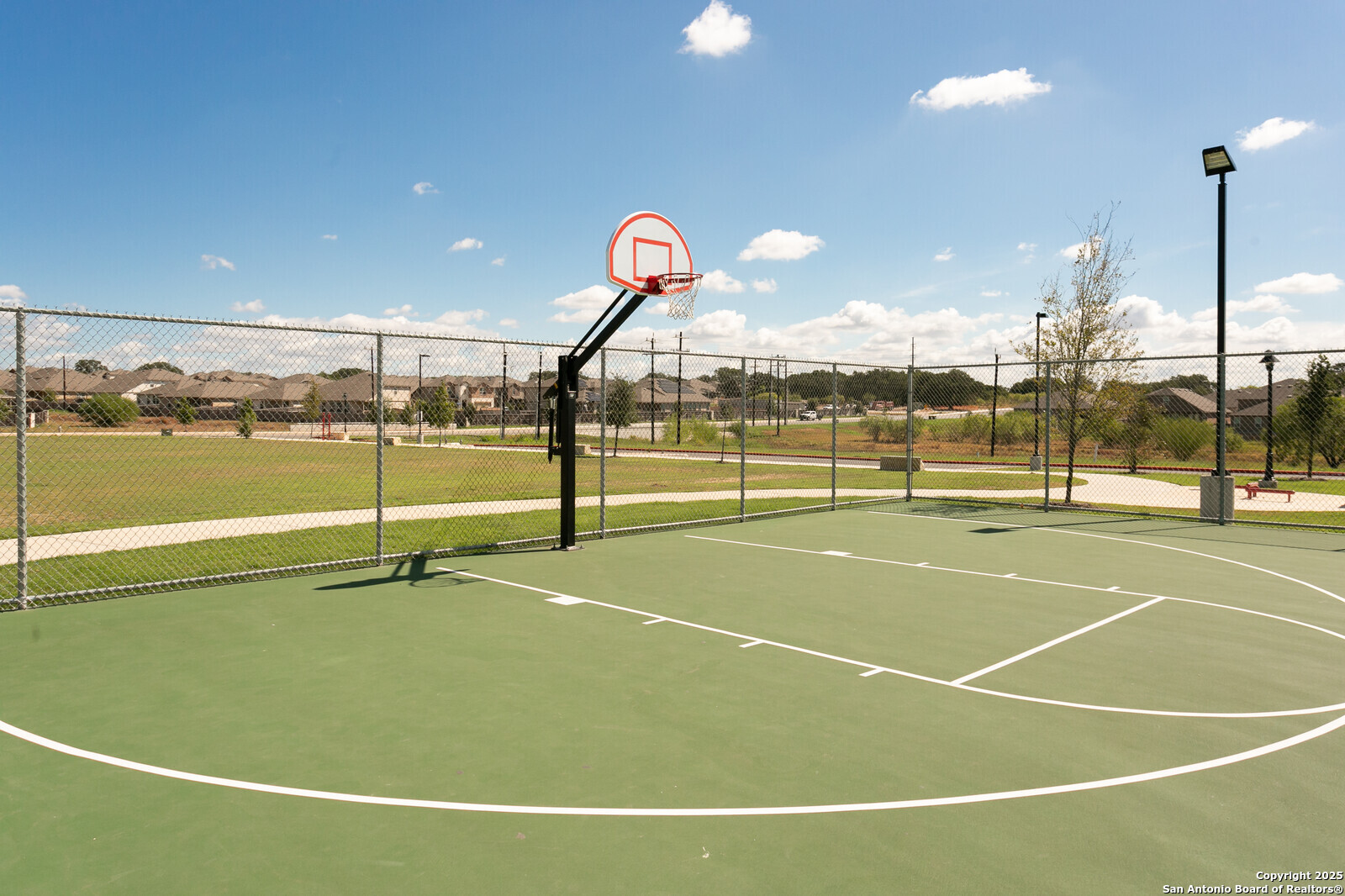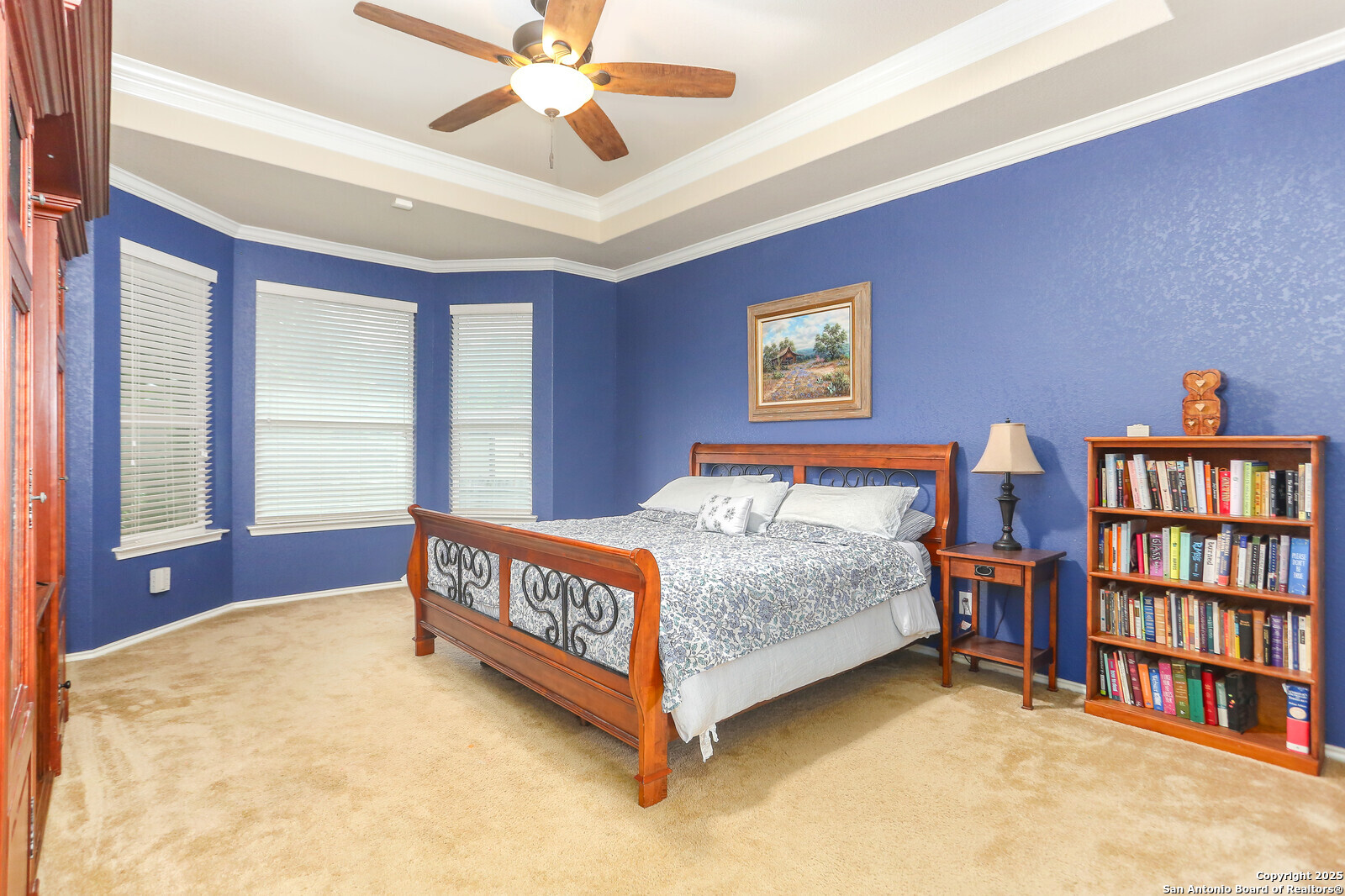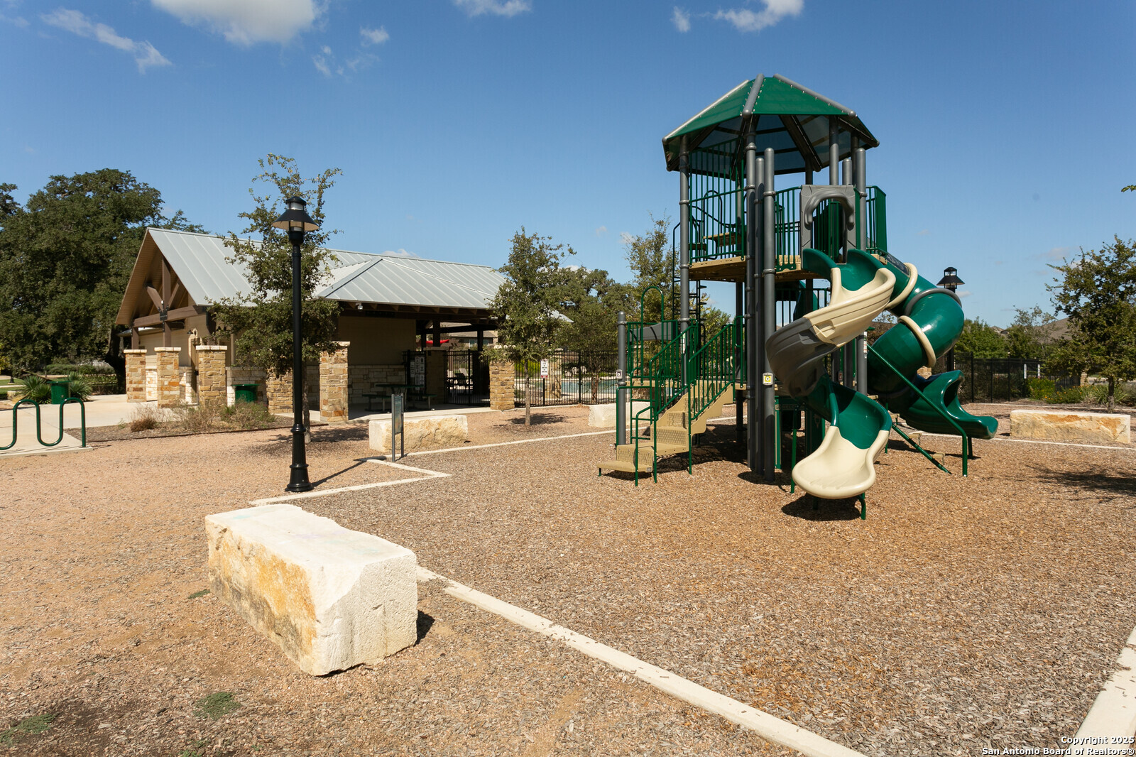 Welcome to this beautifully maintained single-story home offering the perfect blend of functionality, comfort, and style. Featuring 3 spacious bedrooms plus a versatile flex room, this home easily adapts to your needs-whether you're looking for a 4th bedroom, home office, playroom, or creative space. Upon entry, you'll find two well-sized bedrooms and a full bathroom, along with convenient storage including a coat closet and a front-facing laundry room. The open-concept kitchen and living area are ideal for hosting and everyday family life. The kitchen is a true highlight, boasting granite countertops, a gas cooktop, large island with bar seating, and a walk-in pantry. A formal dining room and separate breakfast nook offer flexibility in how you use your living space-entertain guests or convert the formal dining into a study or lounge. Large windows flood the living room with natural light, enhancing the airy and welcoming feel. Retreat to the private primary suite tucked at the rear of the home, complete with elegant tray ceilings and a charming bay window. The spa-like primary bath includes an oversized walk-in shower, dual vanities, a linen closet, and an expansive walk-in closet designed to accommodate your full wardrobe and more. Step outside to your personal oasis: an extended patio perfect for summer gatherings, a lush green lawn, a storage shed, and no rear neighbors thanks to the serene greenbelt lot-offering added privacy and a tranquil view. The neighborhood offers an incredible lifestyle with two swimming pools, basketball and tennis courts, two playgrounds, walking trails, and a large open green space for outdoor fun. The elementary school is located right within the neighborhood, making daily routines easier than ever. Plus, enjoy close proximity to Lackland AFB, SeaWorld, shopping, dining, and more! Don't miss your chance to own this versatile and well-appointed home in a community that truly has it all. Schedule your showing today!