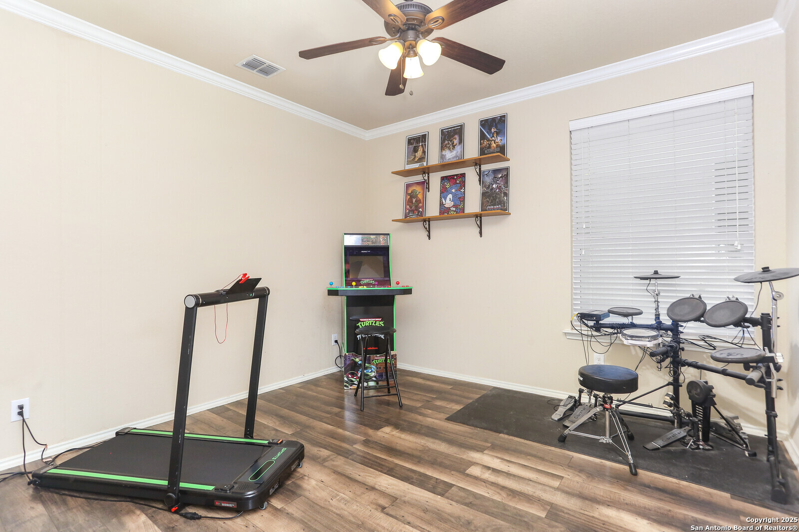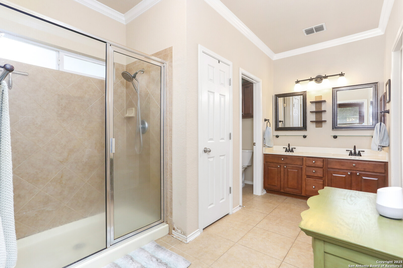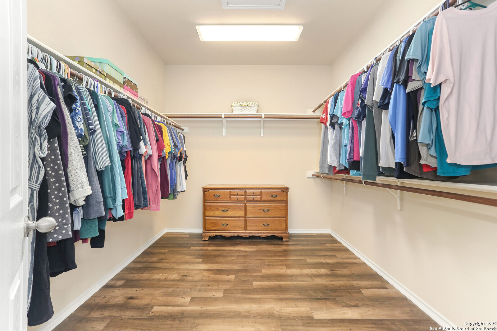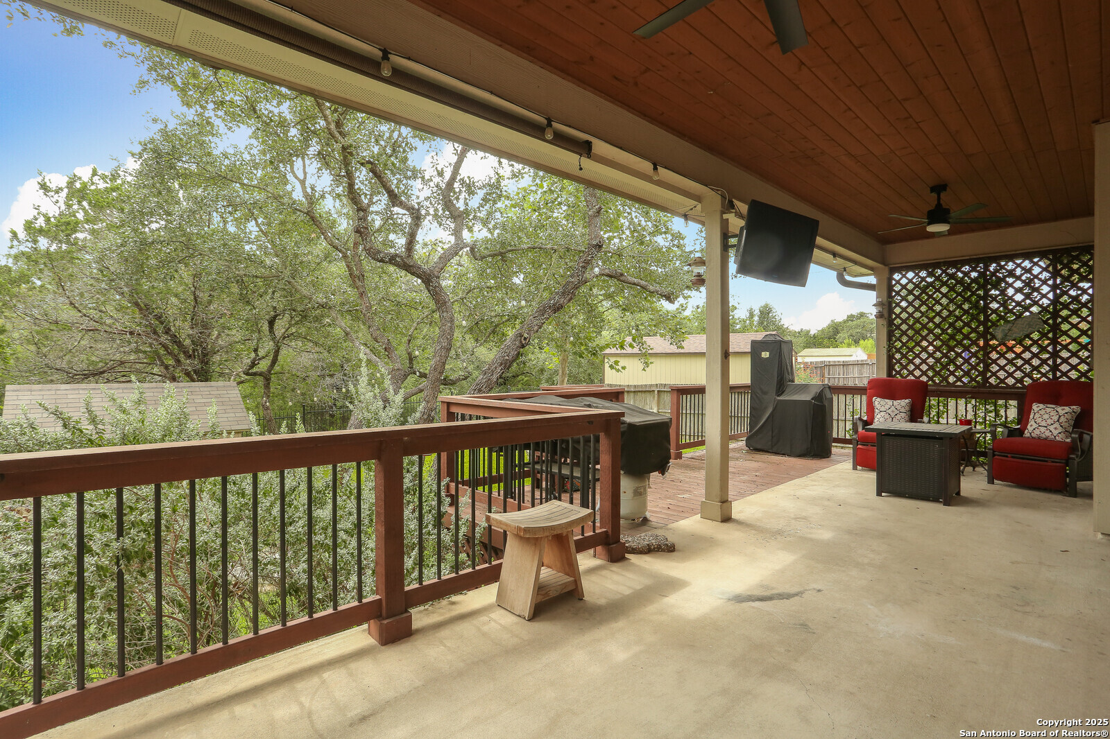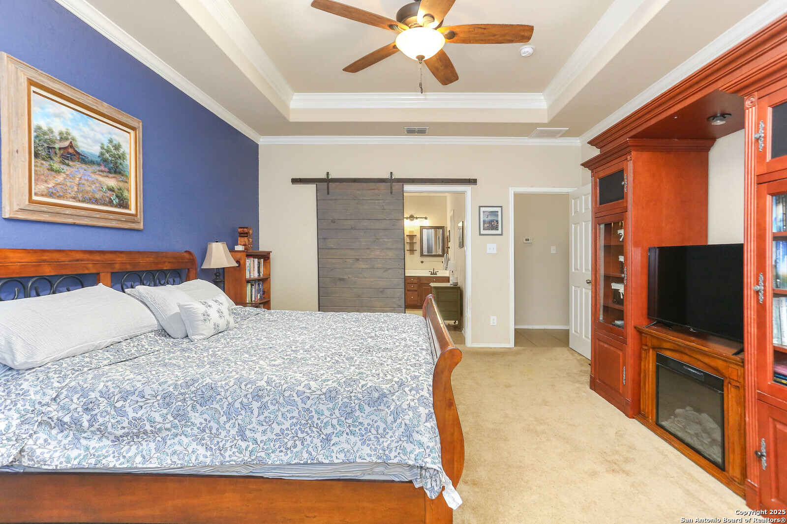 Welcome to this beautifully maintained single-story home offering the perfect blend of functionality, comfort, and style. Featuring 3 spacious bedrooms plus a versatile flex room, this home easily adapts to your needs-whether you're looking for a 4th bedroom, home office, playroom, or creative space. Upon entry, you'll find two well-sized bedrooms and a full bathroom, along with convenient storage including a coat closet and a front-facing laundry room. The open-concept kitchen and living area are ideal for hosting and everyday family life. The kitchen is a true highlight, boasting granite countertops, a gas cooktop, large island with bar seating, and a walk-in pantry. A formal dining room and separate breakfast nook offer flexibility in how you use your living space-entertain guests or convert the formal dining into a study or lounge. Large windows flood the living room with natural light, enhancing the airy and welcoming feel. Retreat to the private primary suite tucked at the rear of the home, complete with elegant tray ceilings and a charming bay window. The spa-like primary bath includes an oversized walk-in shower, dual vanities, a linen closet, and an expansive walk-in closet designed to accommodate your full wardrobe and more. Step outside to your personal oasis: an extended patio perfect for summer gatherings, a lush green lawn, a storage shed, and no rear neighbors thanks to the serene greenbelt lot-offering added privacy and a tranquil view. The neighborhood offers an incredible lifestyle with two swimming pools, basketball and tennis courts, two playgrounds, walking trails, and a large open green space for outdoor fun. The elementary school is located right within the neighborhood, making daily routines easier than ever. Plus, enjoy close proximity to Lackland AFB, SeaWorld, shopping, dining, and more! Don't miss your chance to own this versatile and well-appointed home in a community that truly has it all. Schedule your showing today!