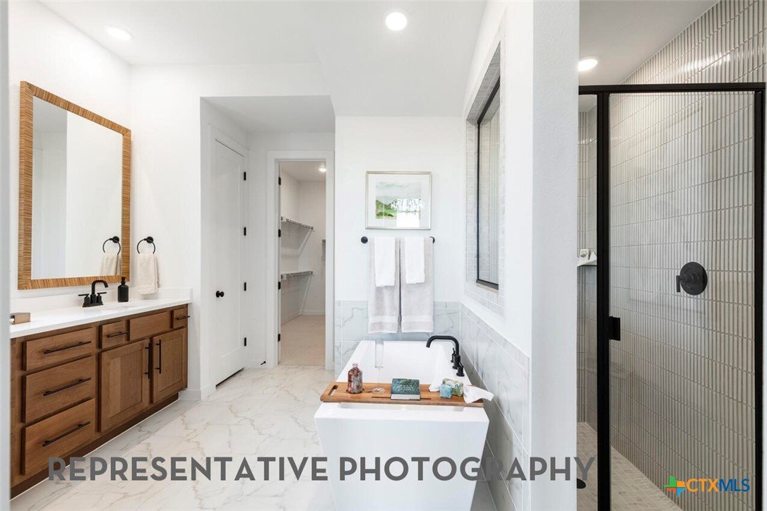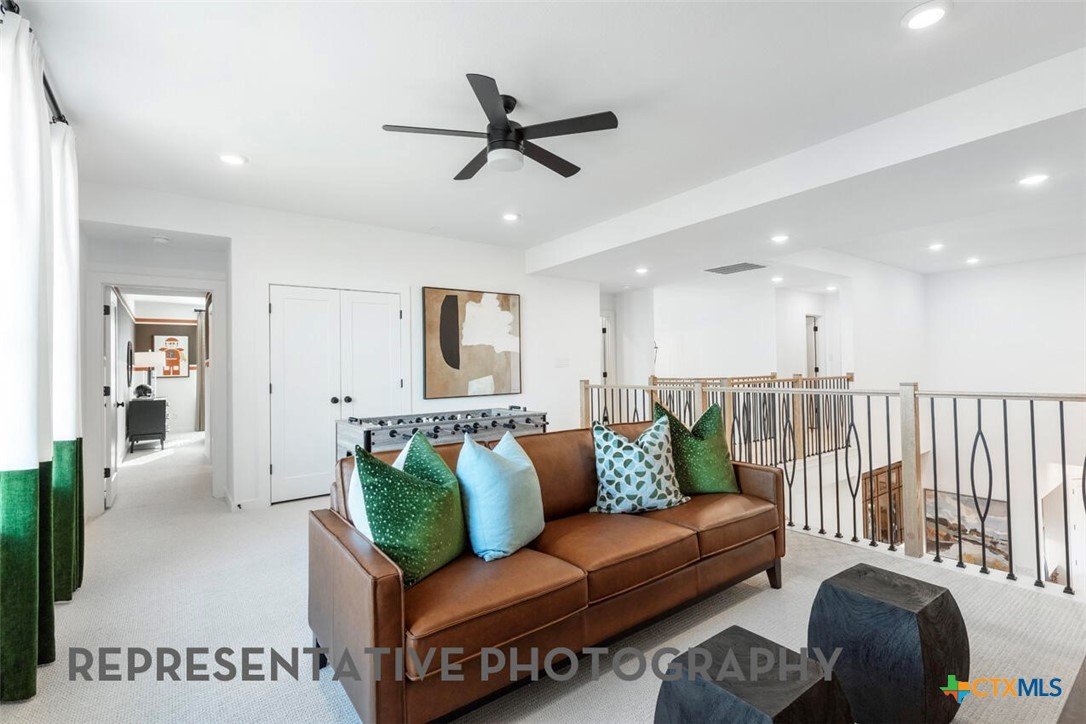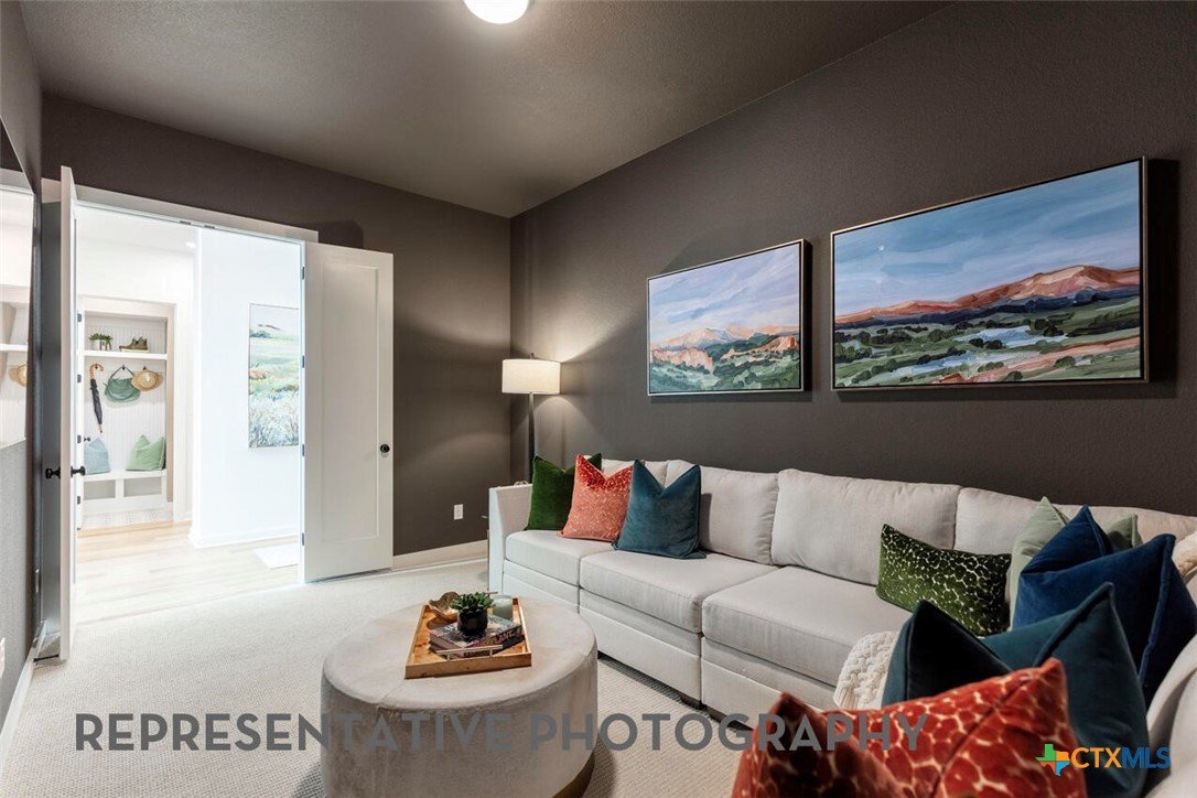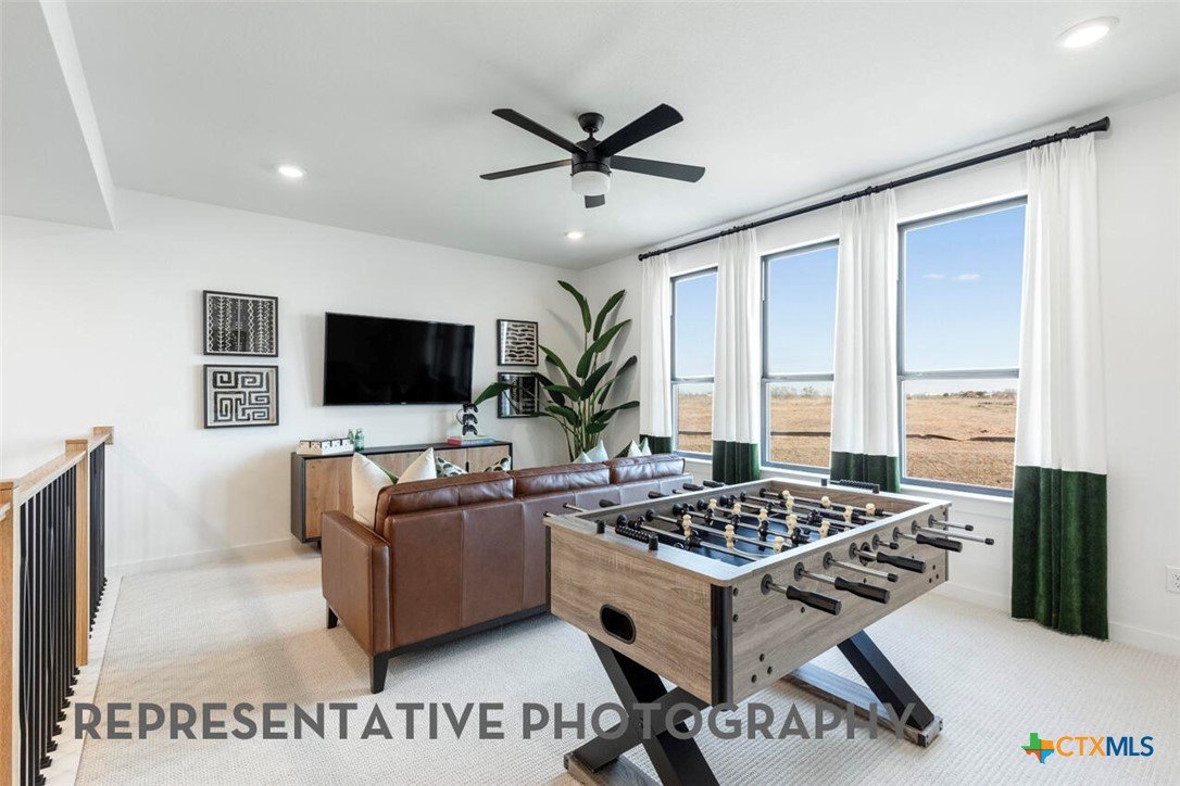 Projected Finished Date: June 26' The Foxleigh is an impressive two-story home that offers 3,492 square feet of beautifully designed living space. Entering through the foyer, you'll find a study and secondary bedroom with a private bath. The open-concept kitchen, complete with a central island, flows into the dining and living rooms, providing seamless access to a spacious patio for outdoor enjoyment. The main floor also features a luxurious primary suite with an expansive bath and an entertainment room for relaxation or gatherings. The three-car tandem garage offers ample storage and convenient home access. A stylish staircase leads to the upper level, where a game room and additional storage space are complemented by Bedrooms Three and Four, sharing a well-appointed bath. Optional upgrades: - Luxury primary suite extension - Primary bath: freestanding tub w/shower, - Utility cabinet option (fits opt. stacked washer/dryer) - Two full baths and powder on second floor - Powder and private bath on first floor