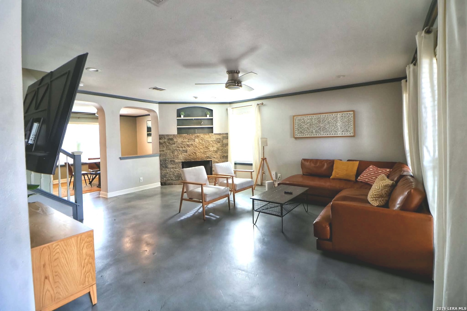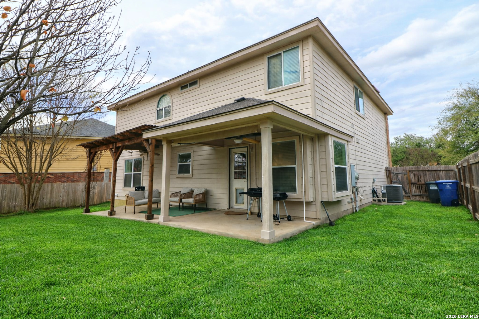 Welcome home to this meticulously maintained property located in the desirable Pheasant Ridge neighborhood. Upon entry, you are welcomed by a charming custom faux accent wall that adds character and style. The kitchen features quartz countertops, recessed lighting, and stainless steel appliances, including the refrigerator. Stained concrete flooring flows throughout the first floor and leads into a spacious family room with a stone fireplace and ample space for everyday living and entertaining. Upstairs, the loft space is currently being utilized as an additional bedroom and can easily be used as a large game room, home office, or second living area, offering flexibility to meet a variety of needs.The backyard includes a covered patio and a fire pit seating area, creating a comfortable outdoor space for relaxation or gatherings. Conveniently located near Randolph AFB, IH 35, Loop 1604, Comanche Park, shopping, dining, and within the NEISD school district. Schedule your private showing today.