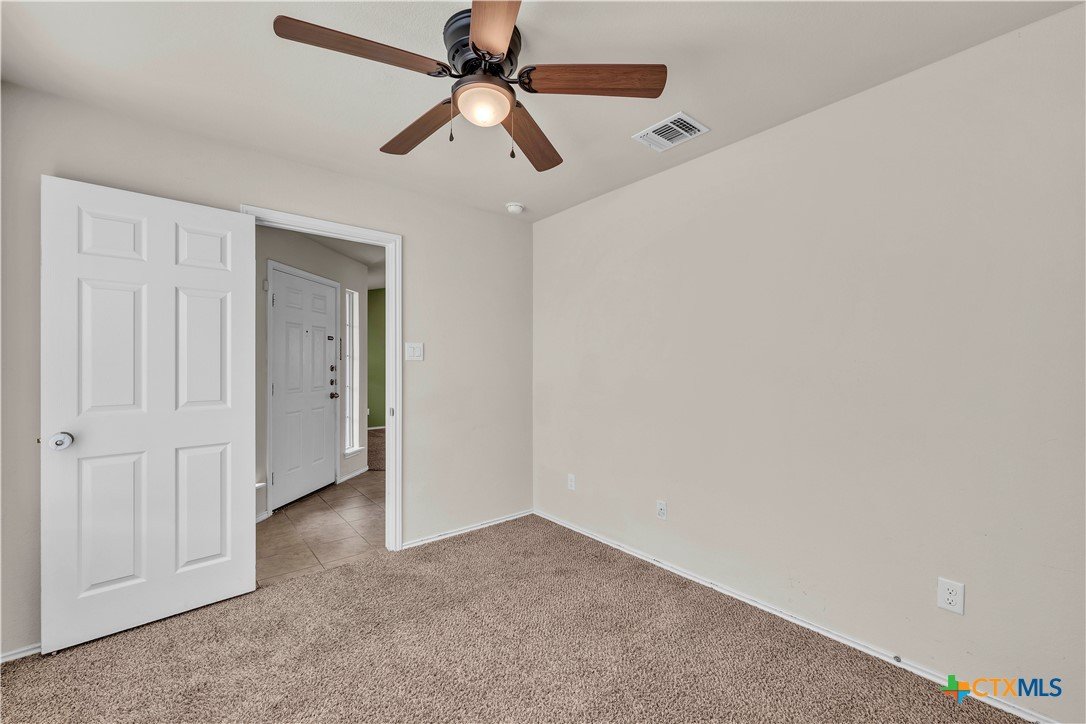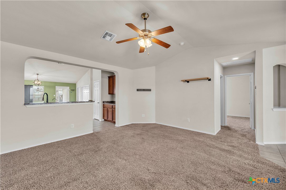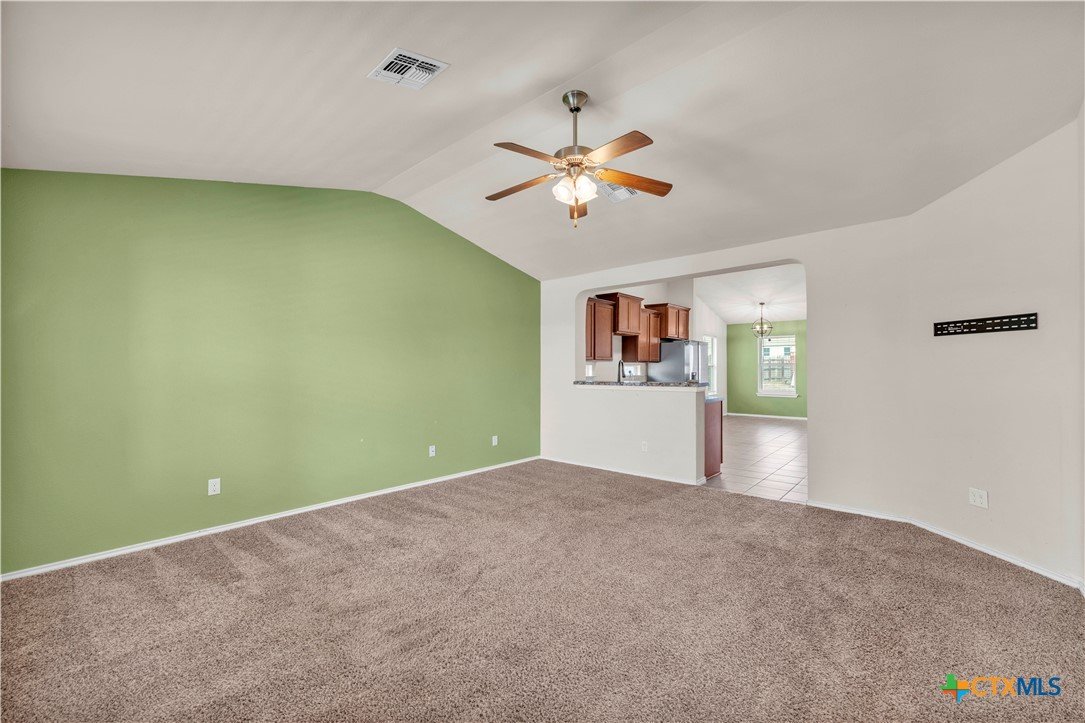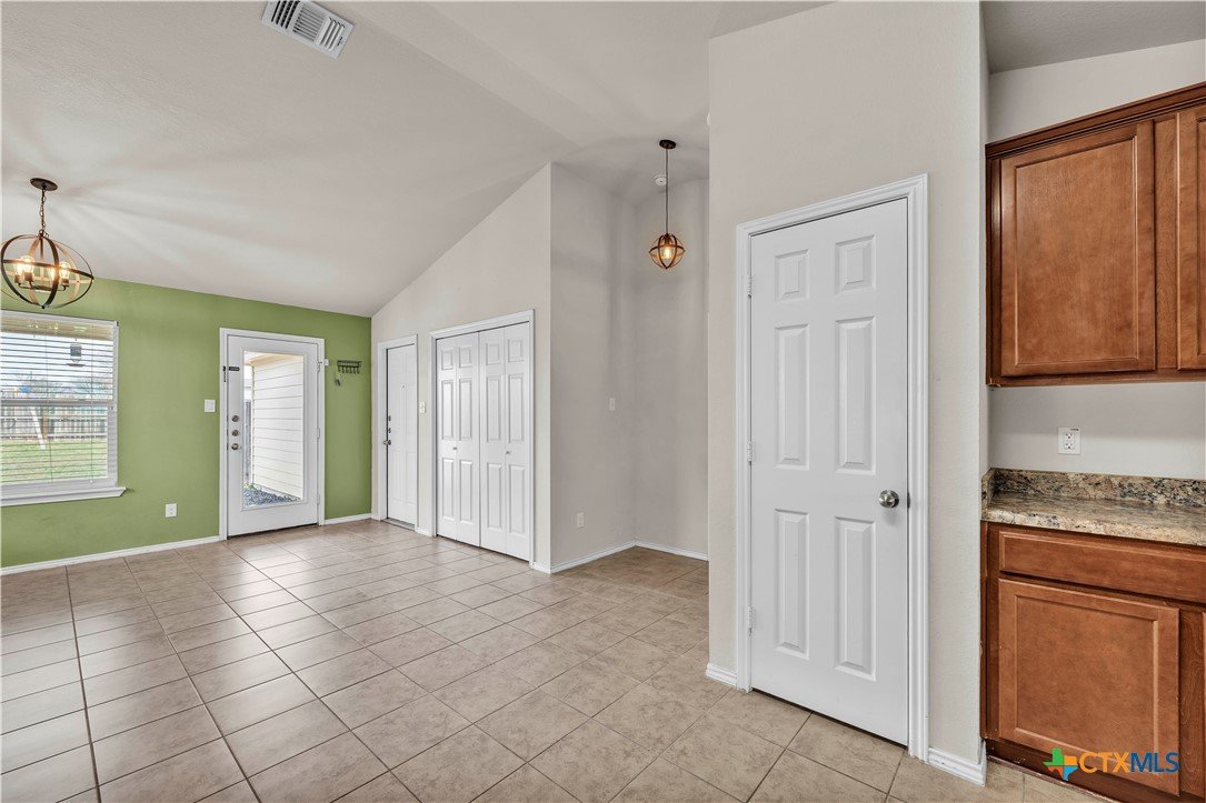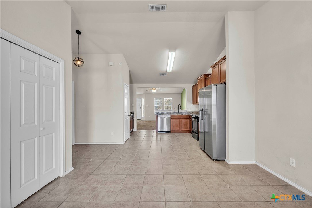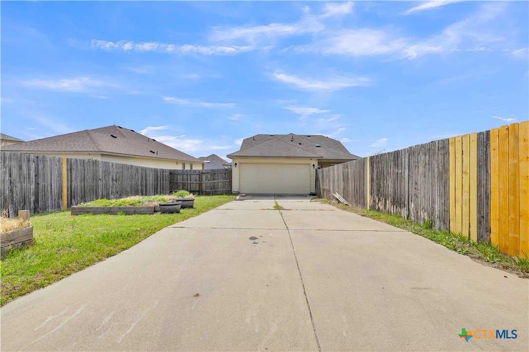 Welcome to this beautifully designed three-bedroom, two-bath, single-story home featuring an open layout and elevated ceilings that create a bright and spacious atmosphere throughout. The heart of the home is the open-concept living area that flows seamlessly into the kitchen and dining space, making it perfect for entertaining and everyday living. The kitchen includes a built-in desk area, ideal for managing household tasks, studying, or working from home. All bedrooms are generously sized, with the private primary suite thoughtfully separated from the secondary bedrooms. The spacious primary bathroom features double vanities, a separate shower and soaking tub, and a large walk-in closet conveniently accessed through the bathroom. Step outside to enjoy the covered back porch and fully fenced backyard with established garden beds, offering a great space for relaxing or hosting gatherings. The rear-entry garage includes a built-in workstation that conveys with the home. Water softener system also conveys. This home is located just one minute from Fort Hood, walking distance to the elementary school and only five minutes from AdventHealth Hospital. You'll also appreciate the close proximity to Central Texas College and Texas A&M University–Central Texas, as well as nearby shopping, dining, and everyday conveniences. This home is the perfect blend of comfort, functionality, and prime location.
