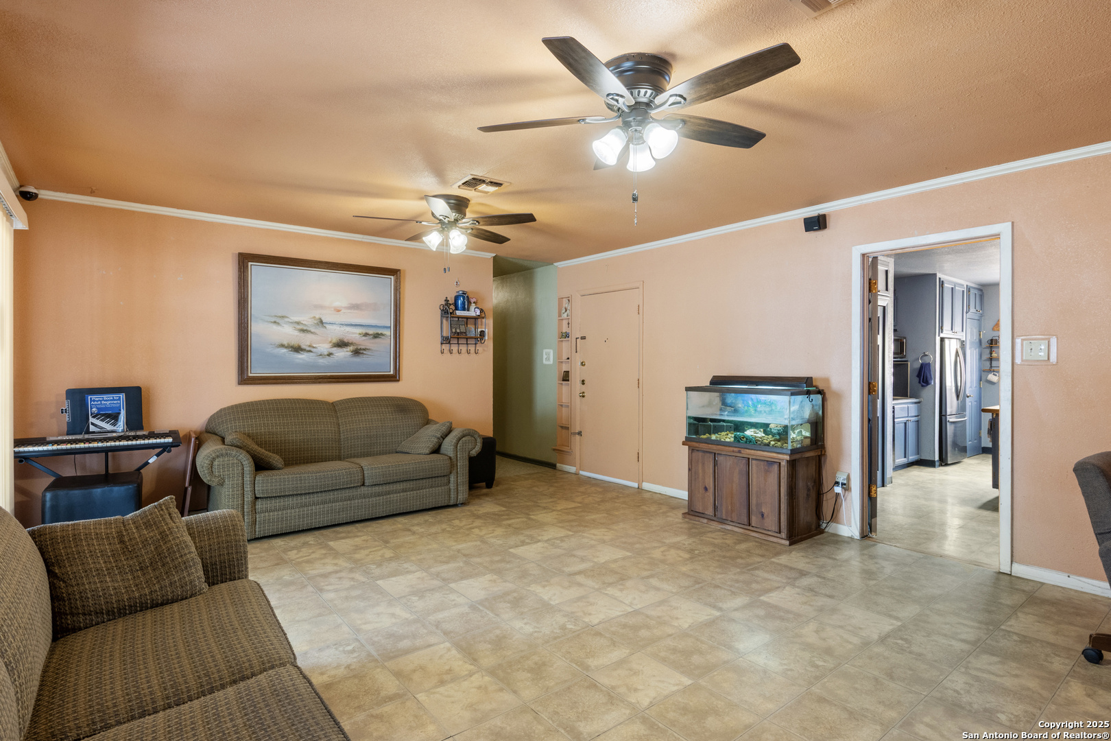 Welcome to this charming single-story residence in San Antonio, the perfect place to start your journey into homeownership! This charming single-story residence offers plenty of space with multiple living areas, a large eat-in kitchen with abundant cabinet storage, and comfortable bedrooms filled with natural light. Security windows and doors provide peace of mind, while the covered back patio and spacious fenced yard create the ideal setting for outdoor relaxation, gardening, or family gatherings. With its functional layout and inviting atmosphere, this home is a blank canvas ready for your personal touch. Conveniently located near schools, shopping, and major highways, it's a wonderful opportunity for first-time buyers to settle into a home of their own.