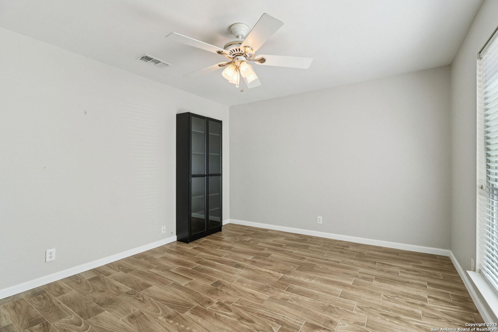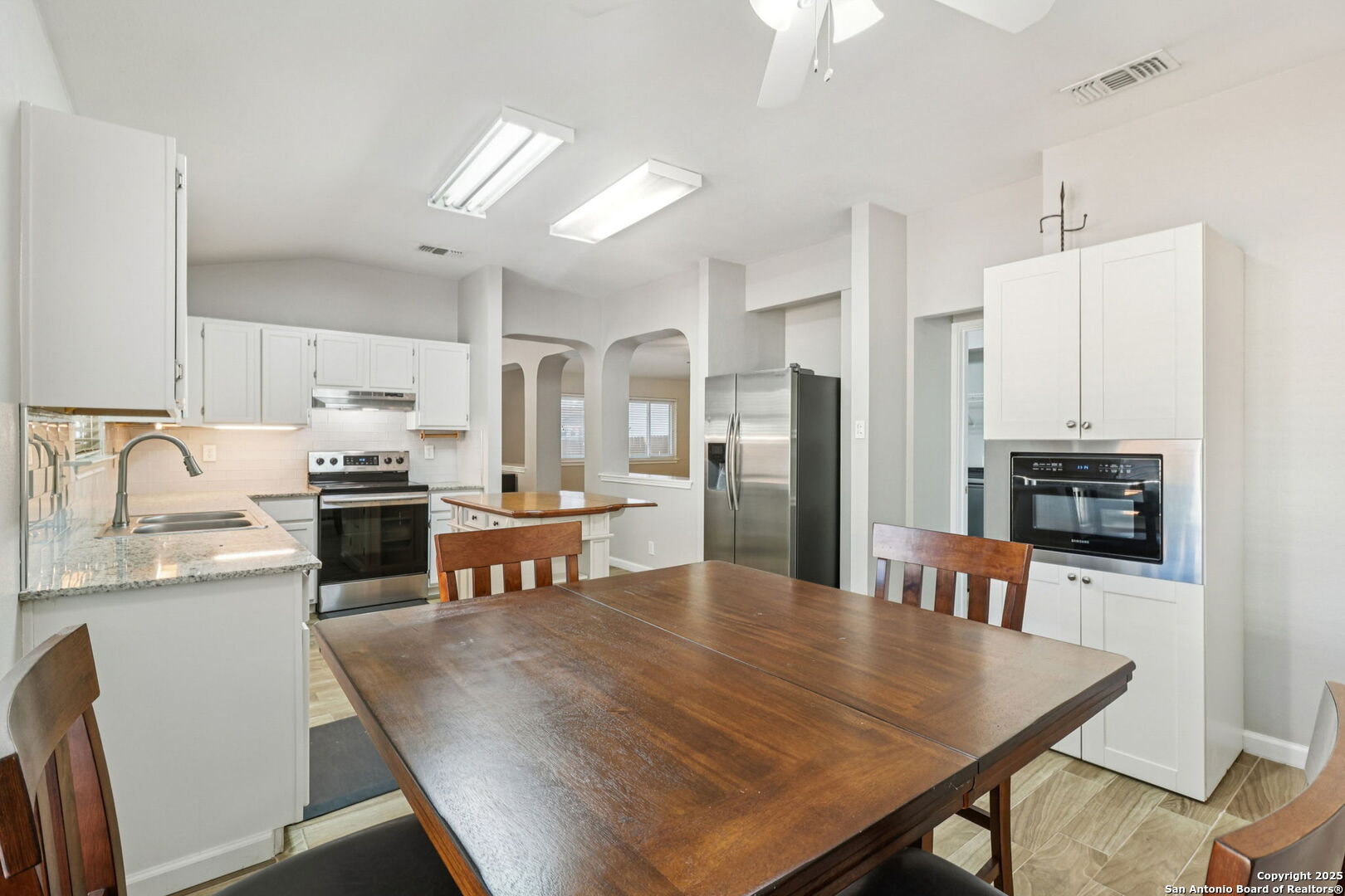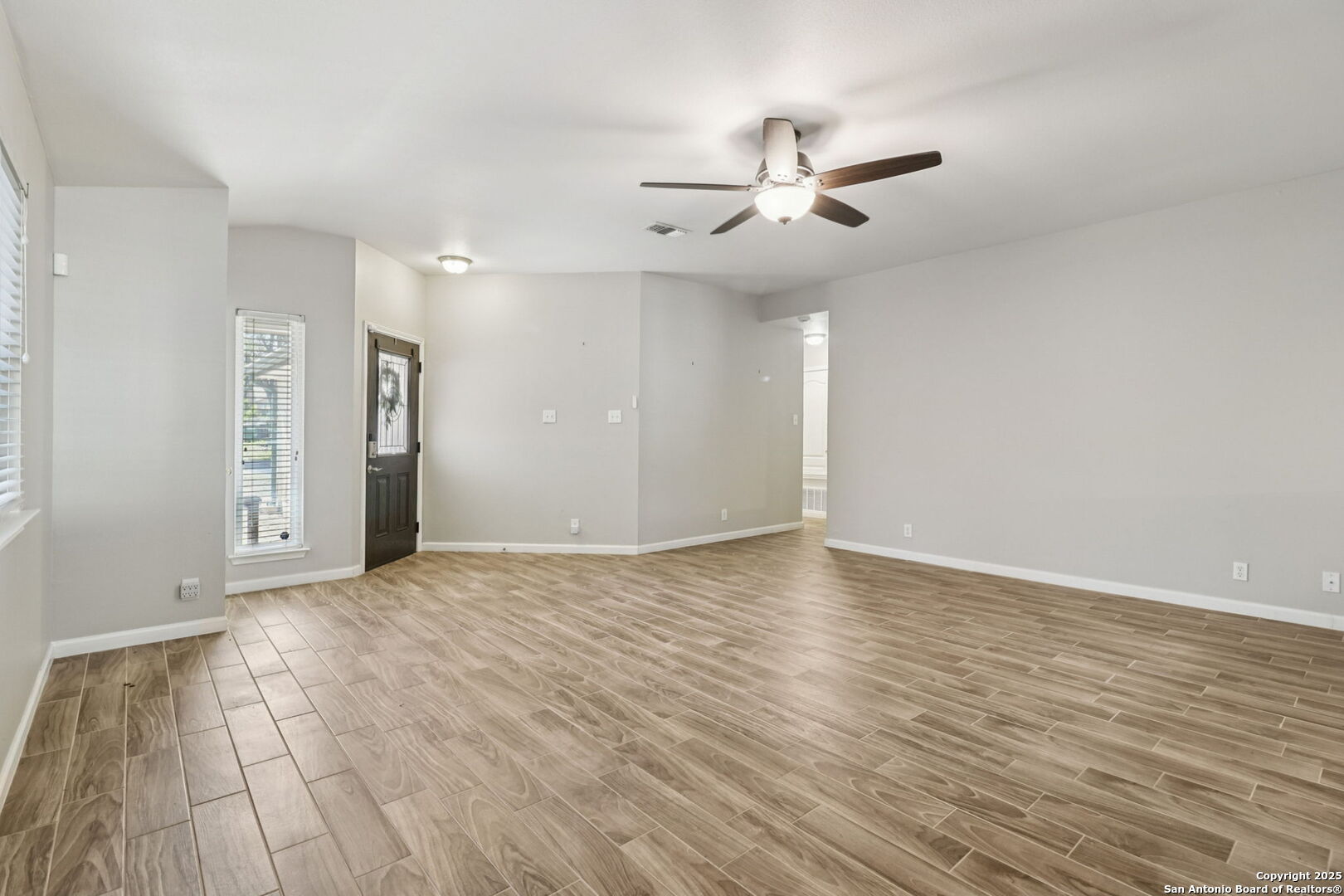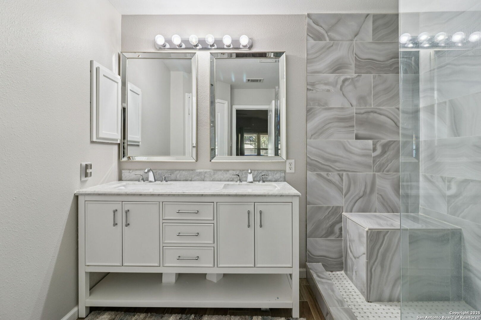 Move-in ready single-story home in the desirable Pheasant Ridge community! This 3-bedroom, 2-bath residence offers 1,948 sq ft of comfortable living space on a well-sized 0.15-acre lot. Built in 1999 and recently updated, the property features a spacious open floor plan with fresh flooring throughout, neutral paint tones, and abundant natural light.The kitchen showcases updated finishes including sleek white cabinetry, granite countertops, subway tile backsplash, and stainless-steel appliances - plus a large island with additional storage and breakfast bar seating. Adjacent dining area overlooks the backyard and opens to the living room for easy entertaining.The private primary suite includes a fully renovated bath with a dual-sink vanity, marble countertop, and an oversized walk-in shower with bench seating and modern tile surround. Secondary bedrooms offer generous closet space and share a well-maintained full bath.Enjoy outdoor living under the covered patio with ceiling fan and space for grilling or relaxing. The fenced backyard provides mature trees and room to customize for gardening or play. Roof shingles were replaced in 2022, offering peace of mind for years to come.Additional highlights include a dedicated laundry room, attached 2-car garage, and energy-efficient double-pane windows. Excellent location within the North East ISD, near Stahl Elementary (~0.4 mi), Harris Middle (~0.7 mi), and Madison High (~0.2 mi). Convenient access to Loop 1604, I-35, and US-281, with shopping at stores including HEB, dining, and parks such as McAllister Park and Friesenhahn Park just minutes away.This home offers the best of single-level living, with thoughtful updates and proximity to everyday amenities. Schedule your private showing today!
