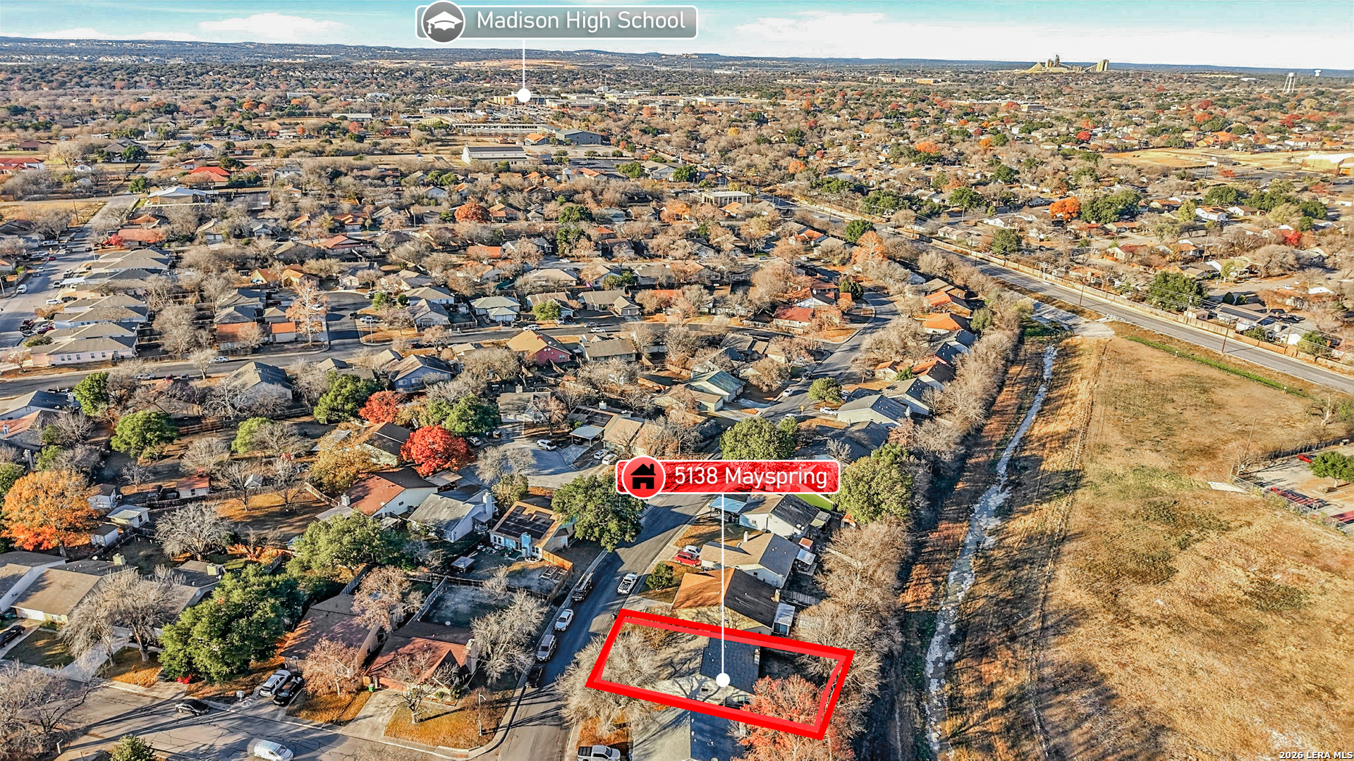 No HOA, no backyard neighbors, brand new windows throughout and tasteful upgrades make this home the opportunity you have been waiting for! Located inside the 1604 Loop, this thoughtfully updated 3 bedroom, 2 bath home offers comfort, convenience, and peace of mind in a location that is getting harder to find. Step inside to an inviting layout with durable laminate flooring, tile in wet areas, and abundant natural light throughout. The kitchen features new quartz countertops, generous cabinet space and a full appliance package including the washer and dryer, making the home truly move in ready. The primary suite stands out with dual walk in closets, upgraded vanities with cabinet storage, quartz countertops, and modern mirrors, creating a space that is both functional and relaxing. Enjoy everyday convenience with easy access to I-35, walking distance to HEB, coffee shops and local dining, PLUS close proximity to Hills Elementary, Harris Middle School and Madison High School. Whether you are starting out, scaling down or looking for a smart centrally located option, this well maintained home delivers comfort, privacy and convenience in one great package!